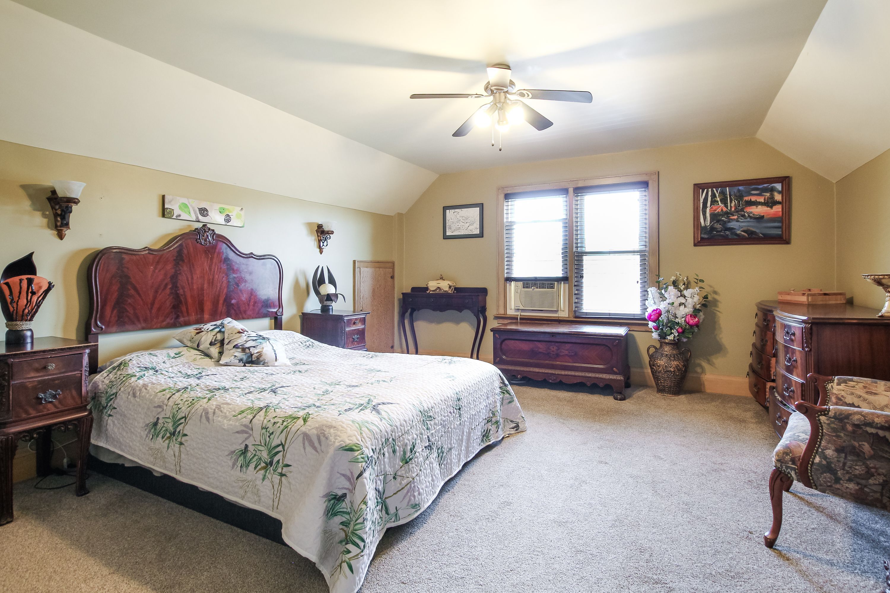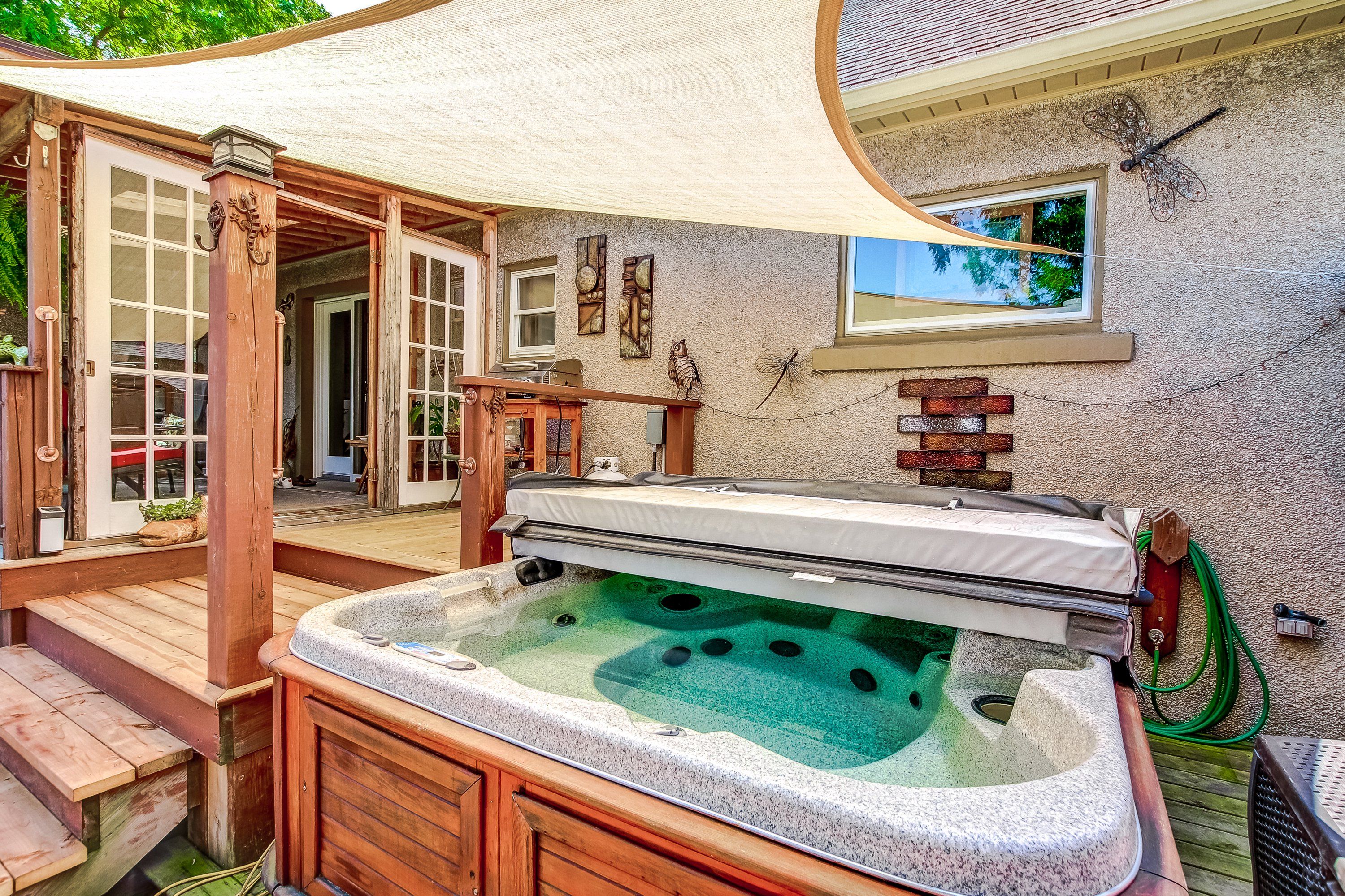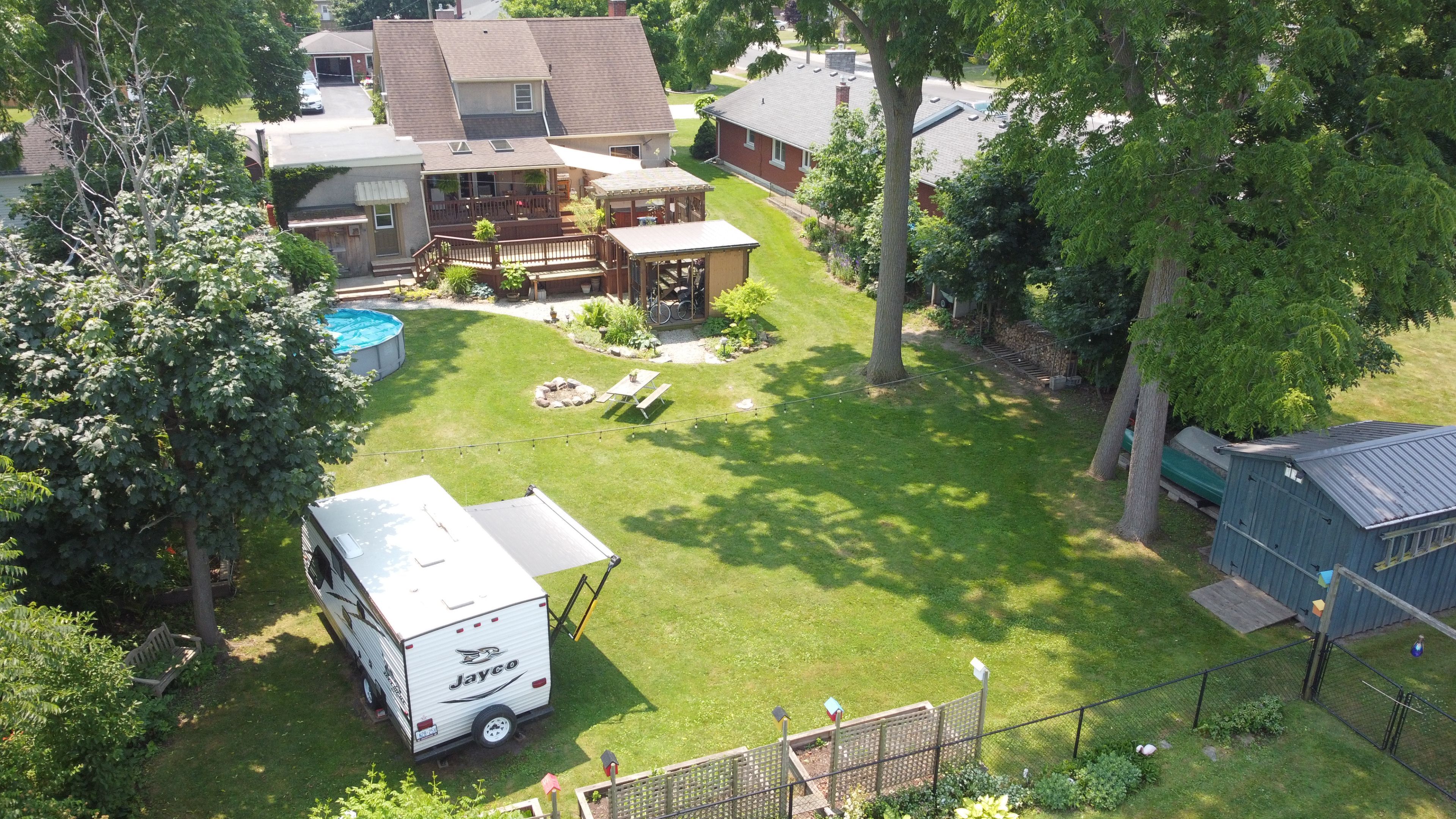 Discover the perfect blend of character, comfort, and outdoor space in this charming 3-bedroom, 2-bathroom home set on an impressive 80x187 foot lot. Ideal for those who need room to roam, this property offers excellent access to the rear yard perfect for trailers, storage, or a future shop. Step inside to a welcoming eat-in kitchen, complemented by formal dining and living rooms ideal for hosting family gatherings. The main floor also features a convenient primary bedroom, offering one-floor living flexibility. The high and dry basement includes a walk-up to the attached extra-tall garage, providing both functionality and potential for future development. Outside, multiple entertaining areas are perfect for summer get-togethers, including a private hot tub zone for year-round relaxation. Whether you're enjoying quiet evenings under the stars or entertaining a crowd, this backyard was made to be enjoyed. With a great layout, versatile spaces, and an unbeatable lot size, this property is a rare opportunity that combines classic charm with incredible potential. Recent updates include : central air (2024), upstairs bathroom update (2024), gas fireplace (2021), roof shingles (2013 with transferrable warranty), furnace (2014).