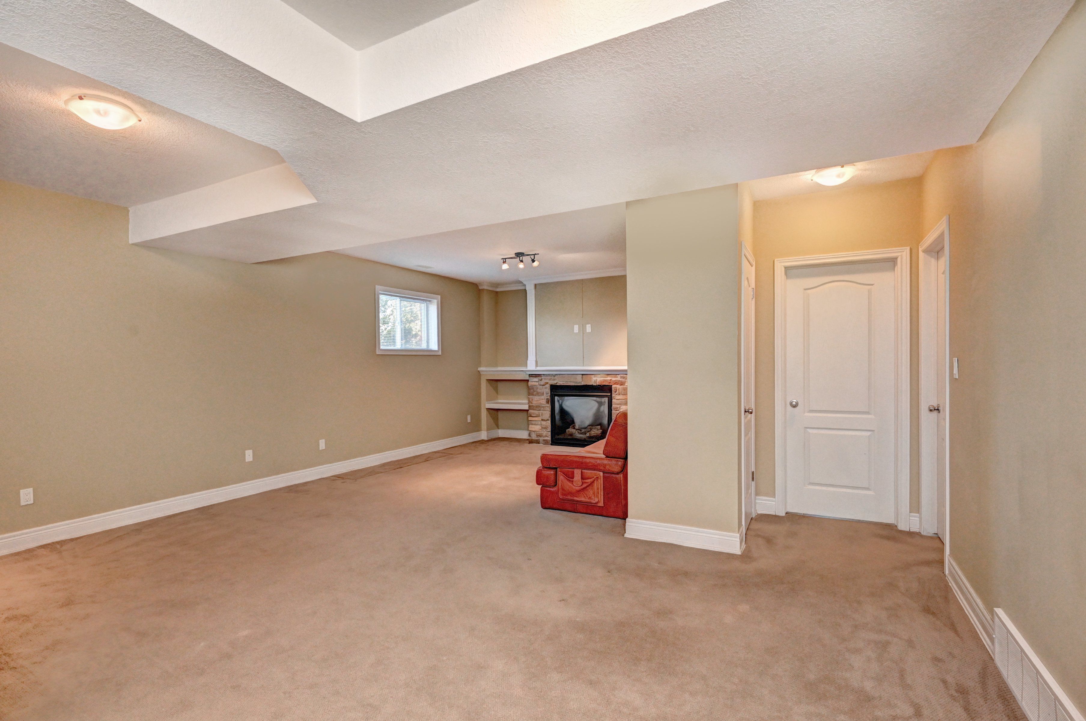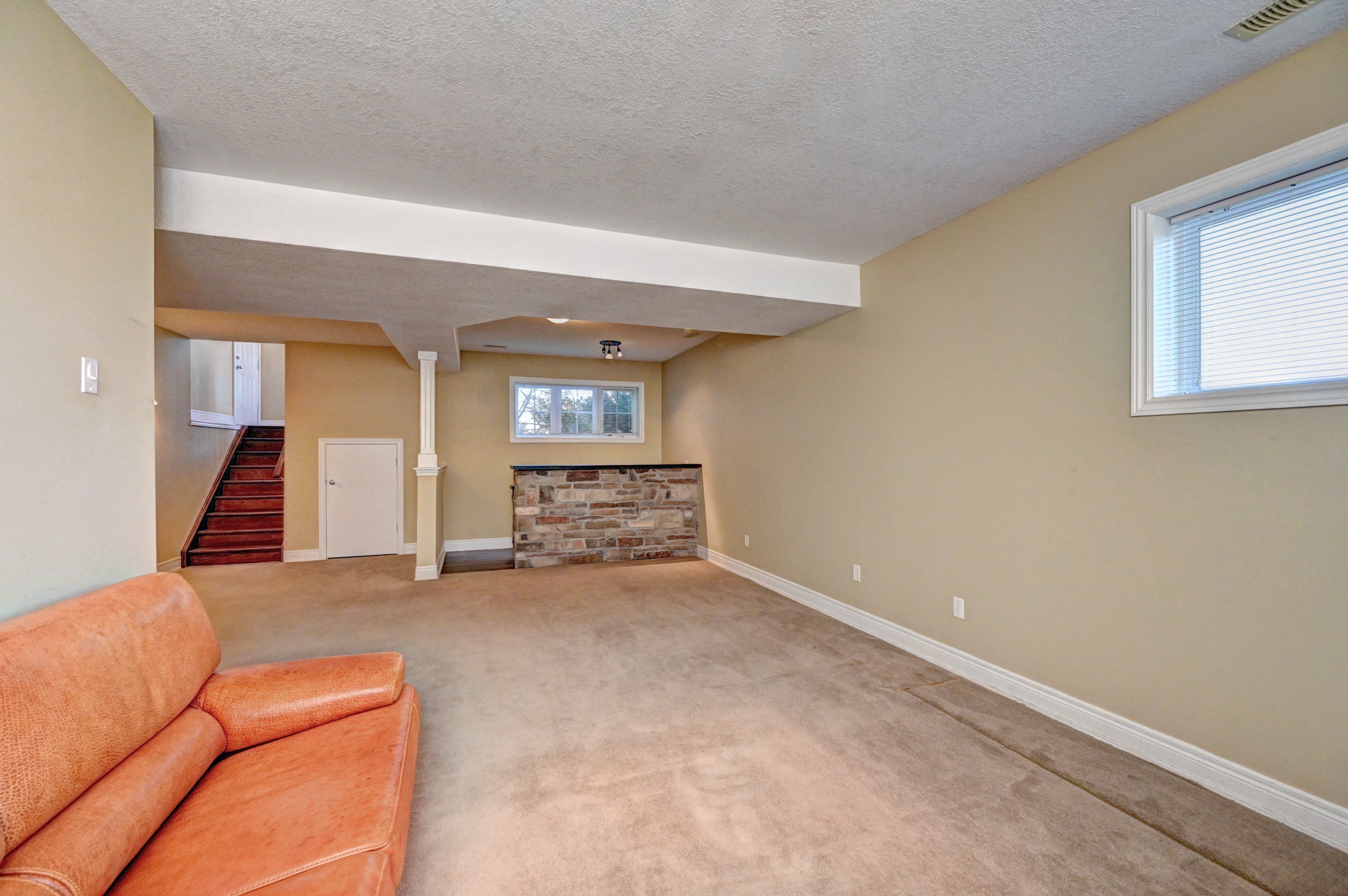 • Finished lower level with family area, gas fireplace, and built-in bar.