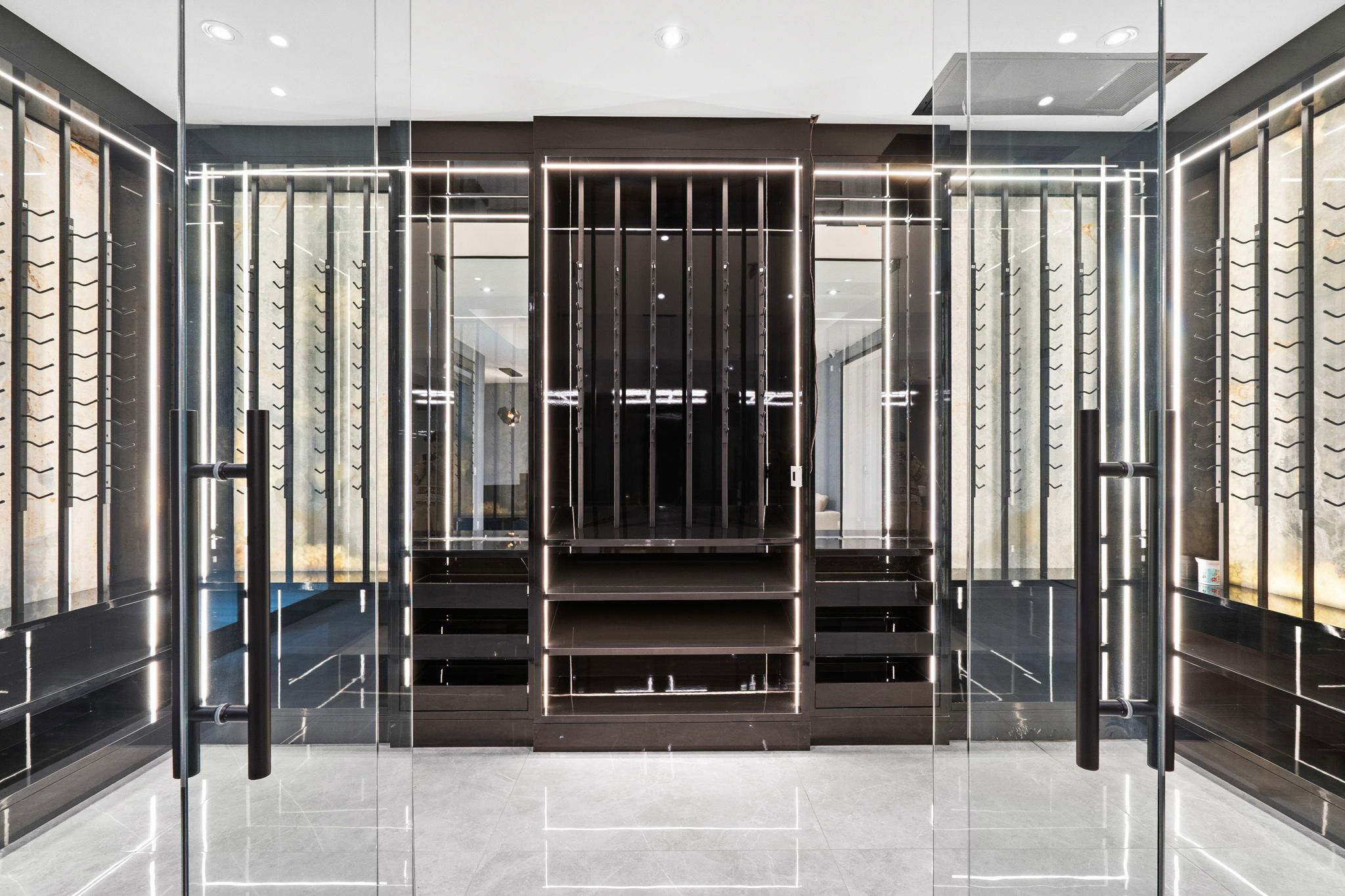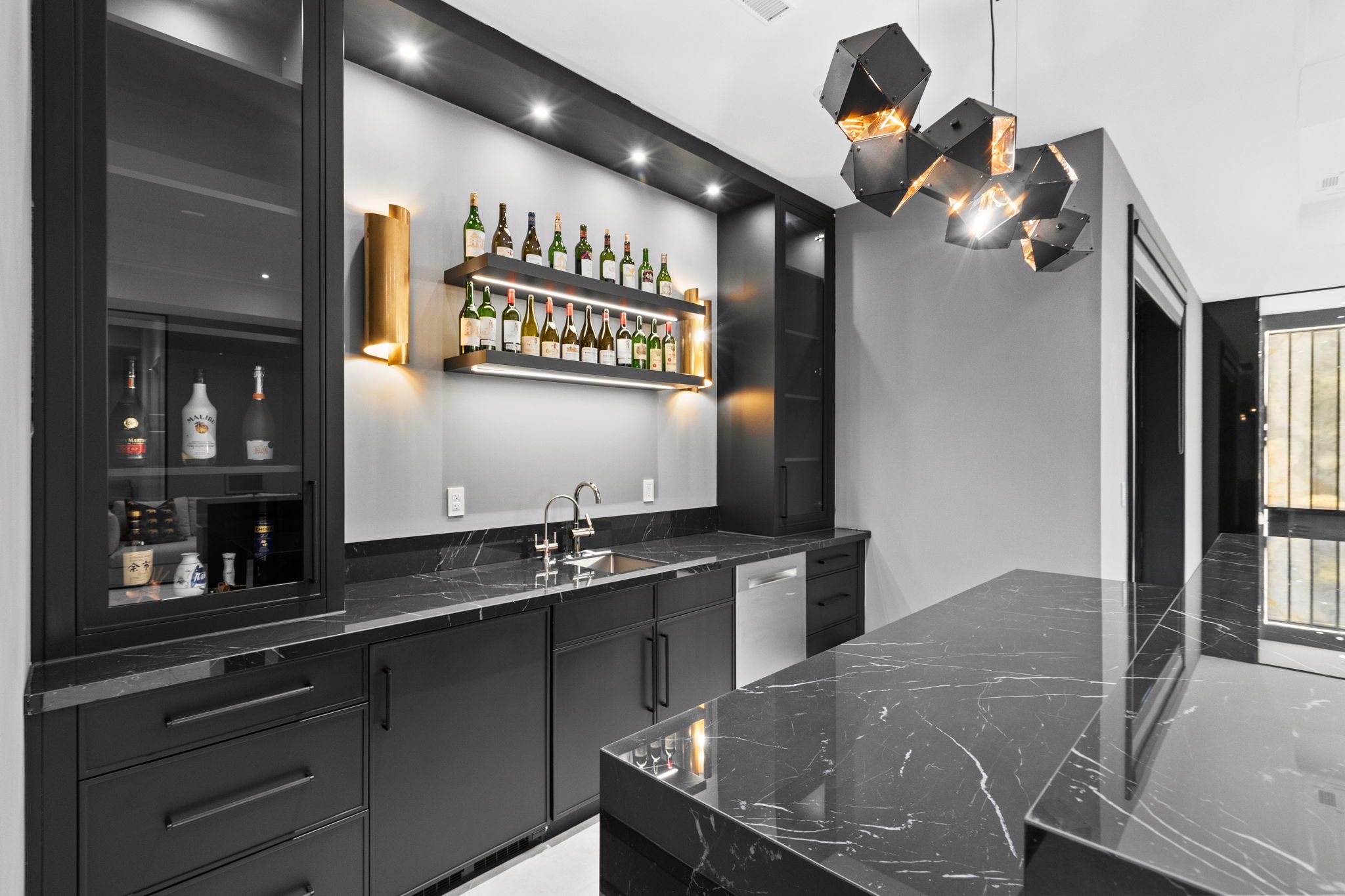 • Finished lower level includes a media room and elegant wine cellar.