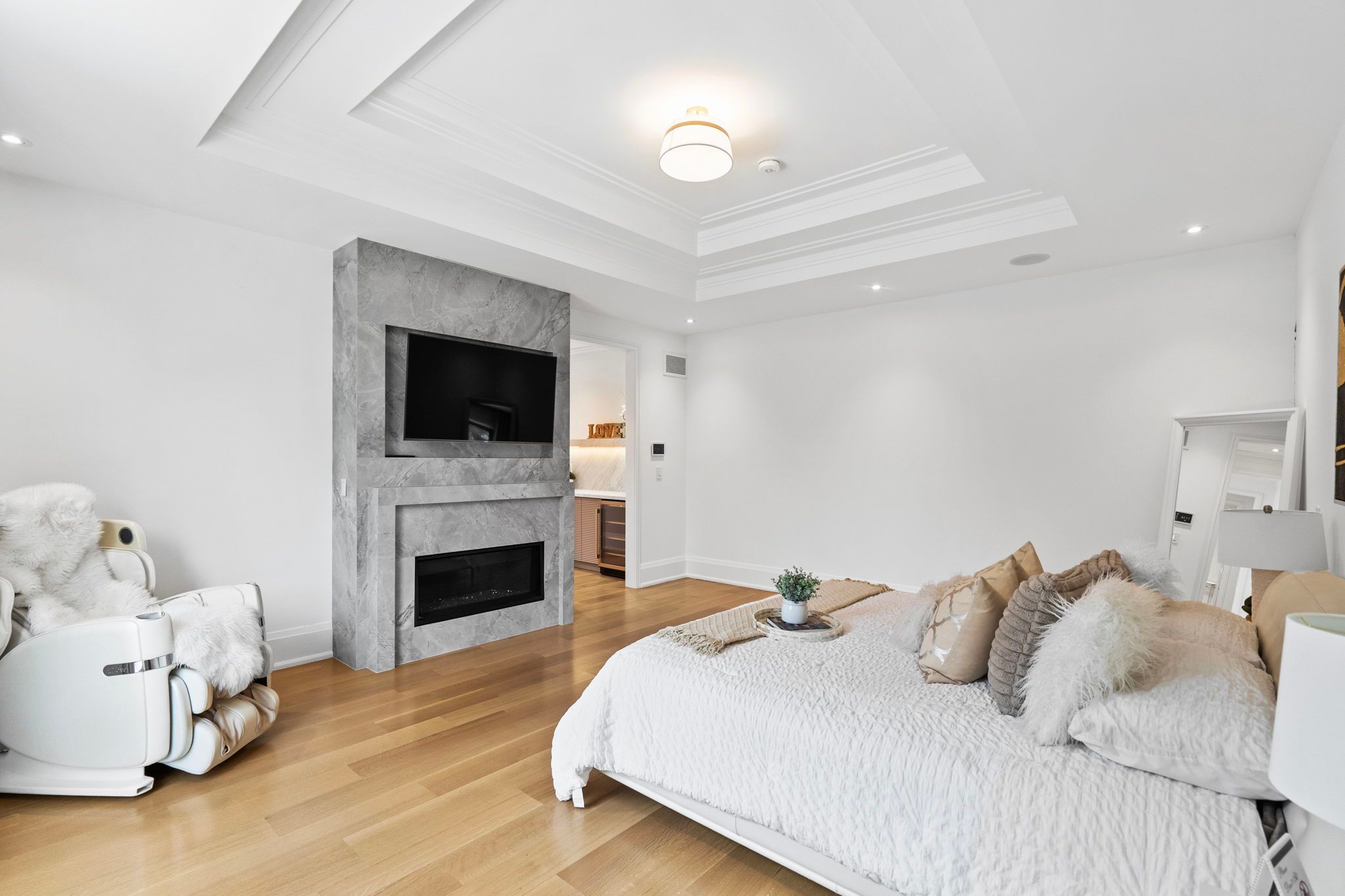 • Opulent primary bedroom with a luxurious ensuite and fireplace.