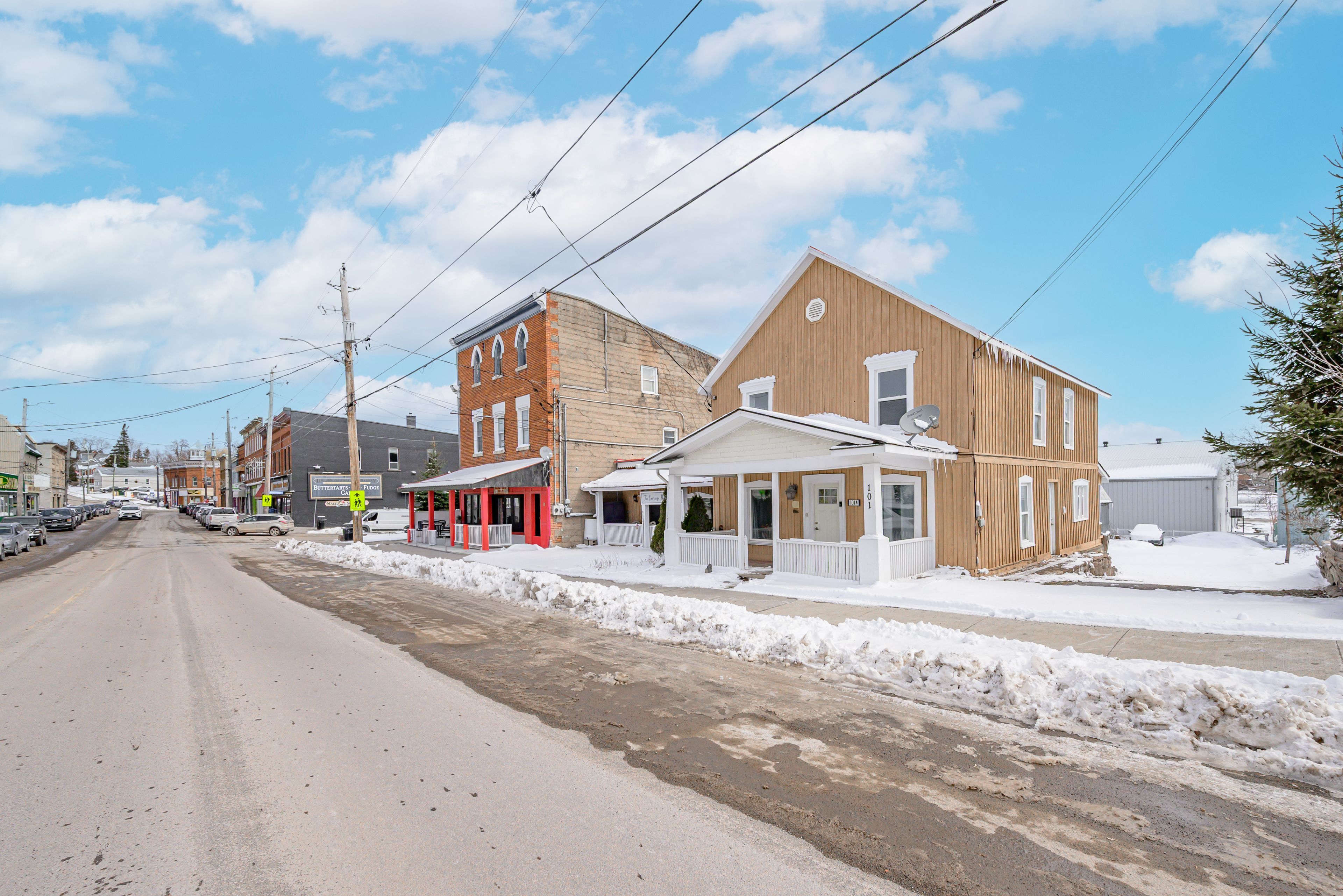 A 2 for 1 opportunity, sale includes 101a & 101b. Set right in the centre of madoc, this versatile property offers the perfect combination of comfortable family living and exciting income potential. Inside, the home welcomes you with a functional l-shaped kitchen and dining area, complete with main-floor laundry hookups and walkout access to the backyard. The dining space connects effortlessly to a warm and inviting living room through classic french doors, ideal for both everyday living and entertaining. A bright family room, filled with natural light from large windows, provides an additional space to unwind, while a convenient 2-piece bathroom completes the main level. Upstairs, the layout continues to impress with four well-sized bedrooms, including a spacious primary retreat featuring an oversized walk-in closet. A full 4-piece bathroom serves the upper level, offering comfort and convenience for growing families. Outdoors, enjoy a partially covered deck that overlooks a generous backyard with endless possibilities, whether it's gardening, play space, or simply relaxing. The expansive driveway ensures ample parking for multiple vehicles, guests, or business use. Don't miss the detached barn, currently set up as a workshop, once used as a garage. The loft space above is perfect for artistic pursuits and hobbies. For those looking to run a business or generate additional income, the attached commercial space is a standout feature. With its own separate entrance, covered front porch, open-concept interior, and 2-piece washroom, it's well-suited for a retail shop, office, or studio. Whether you're an investor, entrepreneur, or simply looking for a property that offers flexibility, this one delivers. Multiple income streams are possible-from the commercial unit, barn space, or the home itself. All of this, just steps from madoc's shops, services, and everyday amenities. A rare chance to own a property that truly does it all.