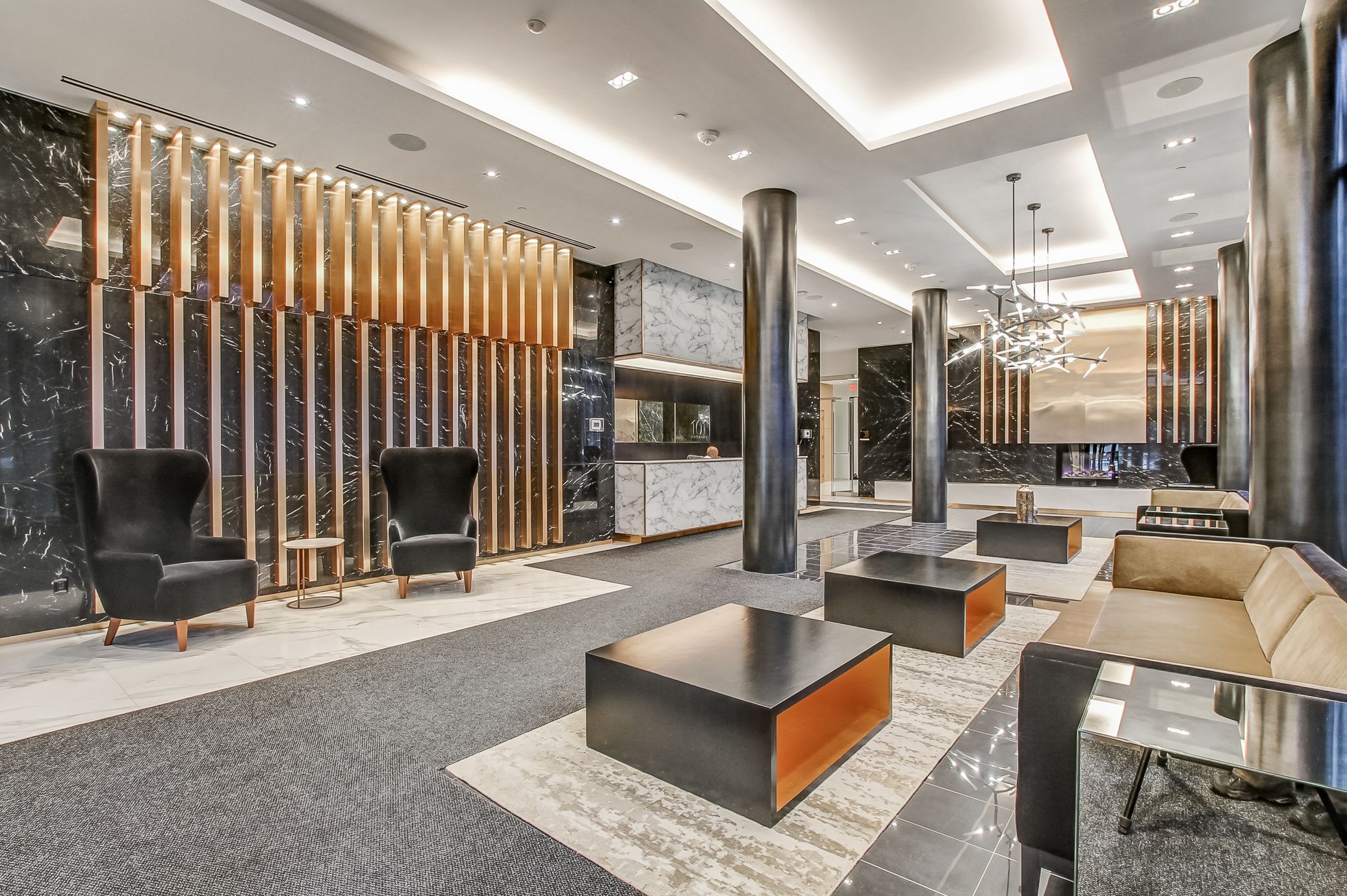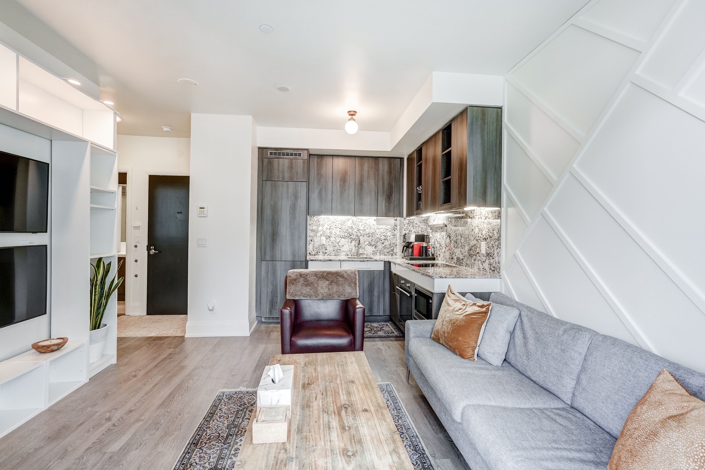 • Building amenities include 24-hour concierge, rooftop pool, and fitness facilities.