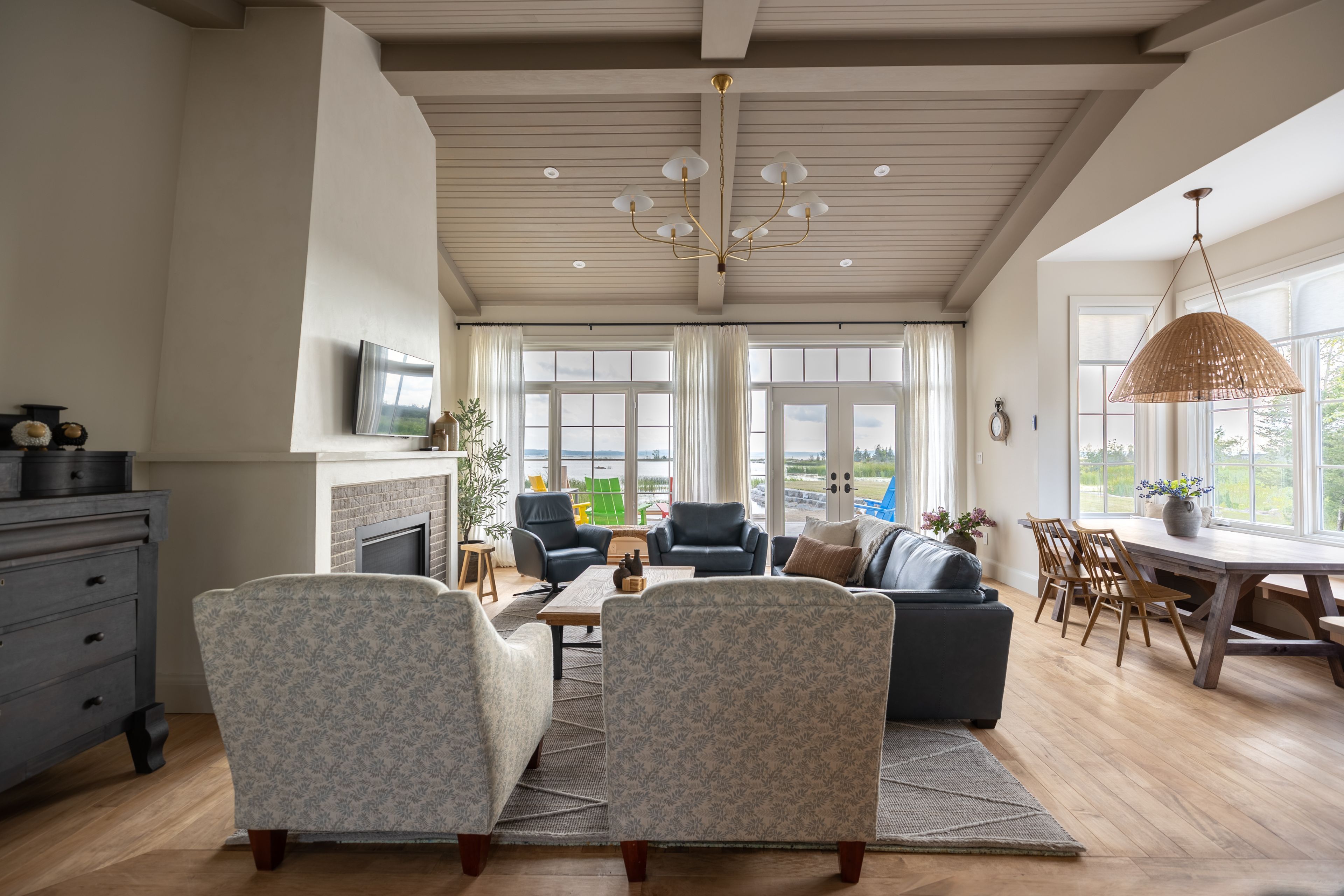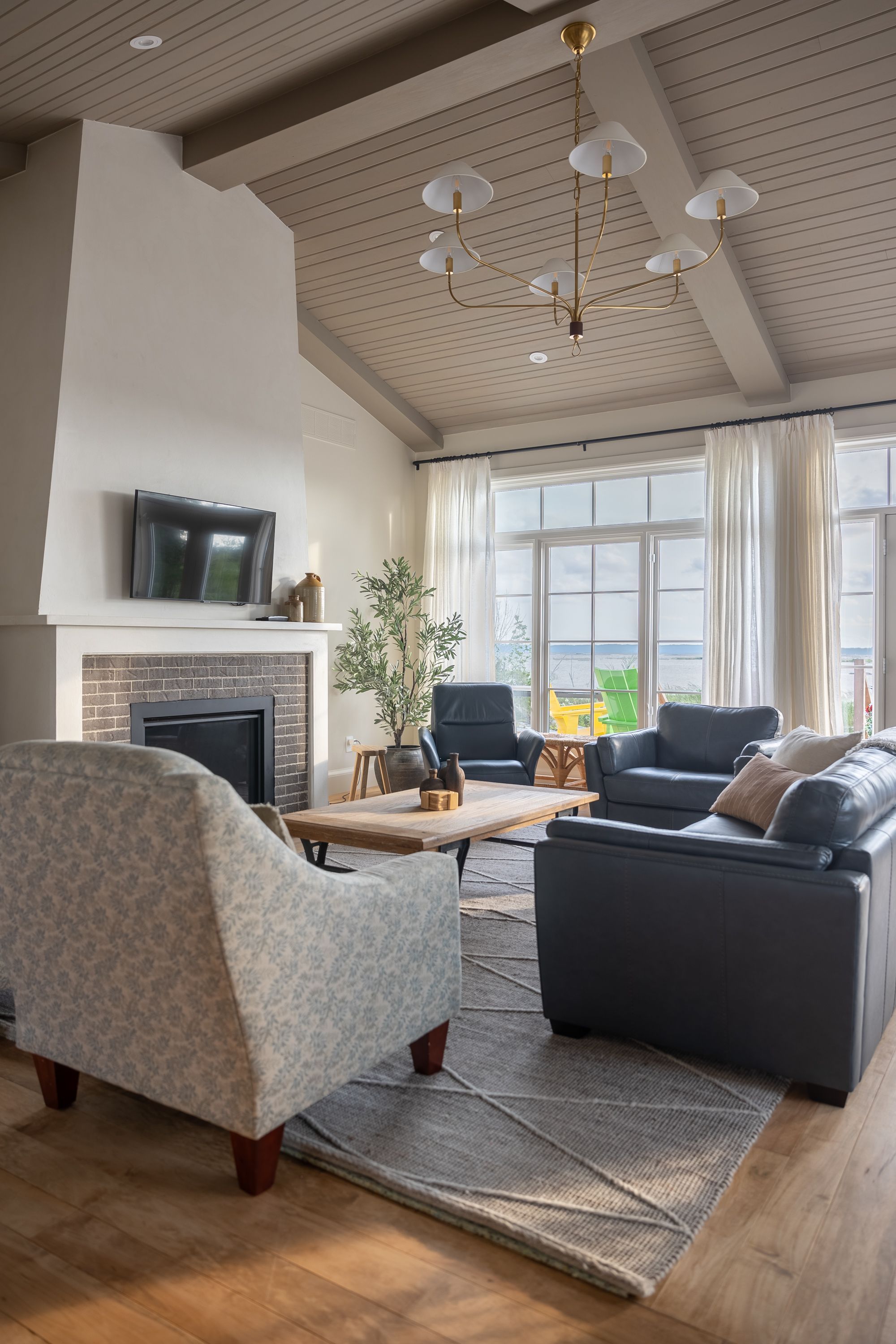• Open-concept design with vaulted ceilings and lake views in every room.