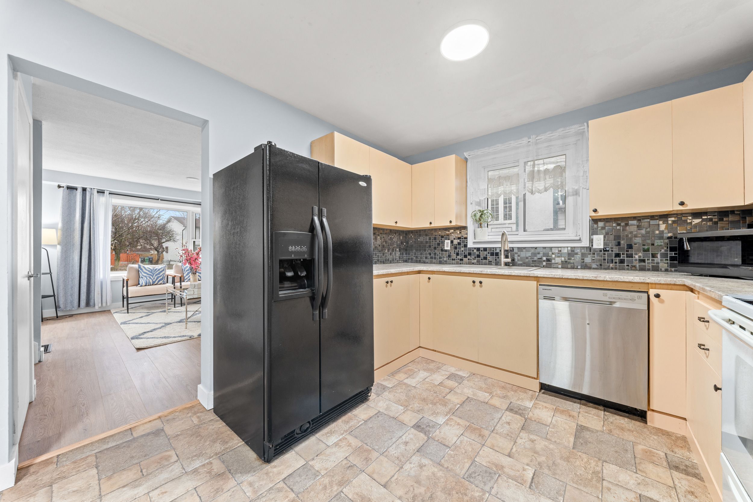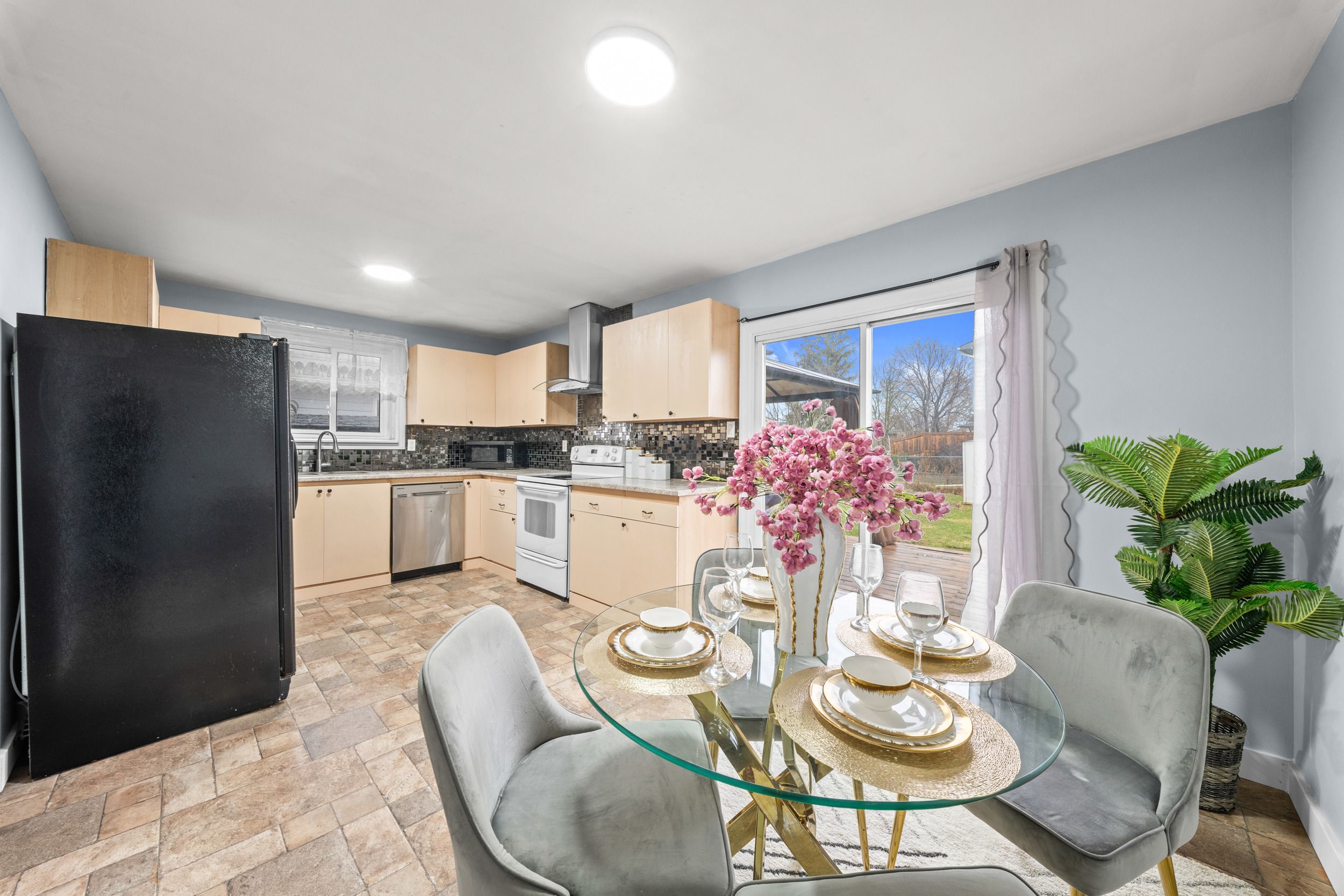 • Bright eat-in kitchen with walk-out to a private, fenced backyard.