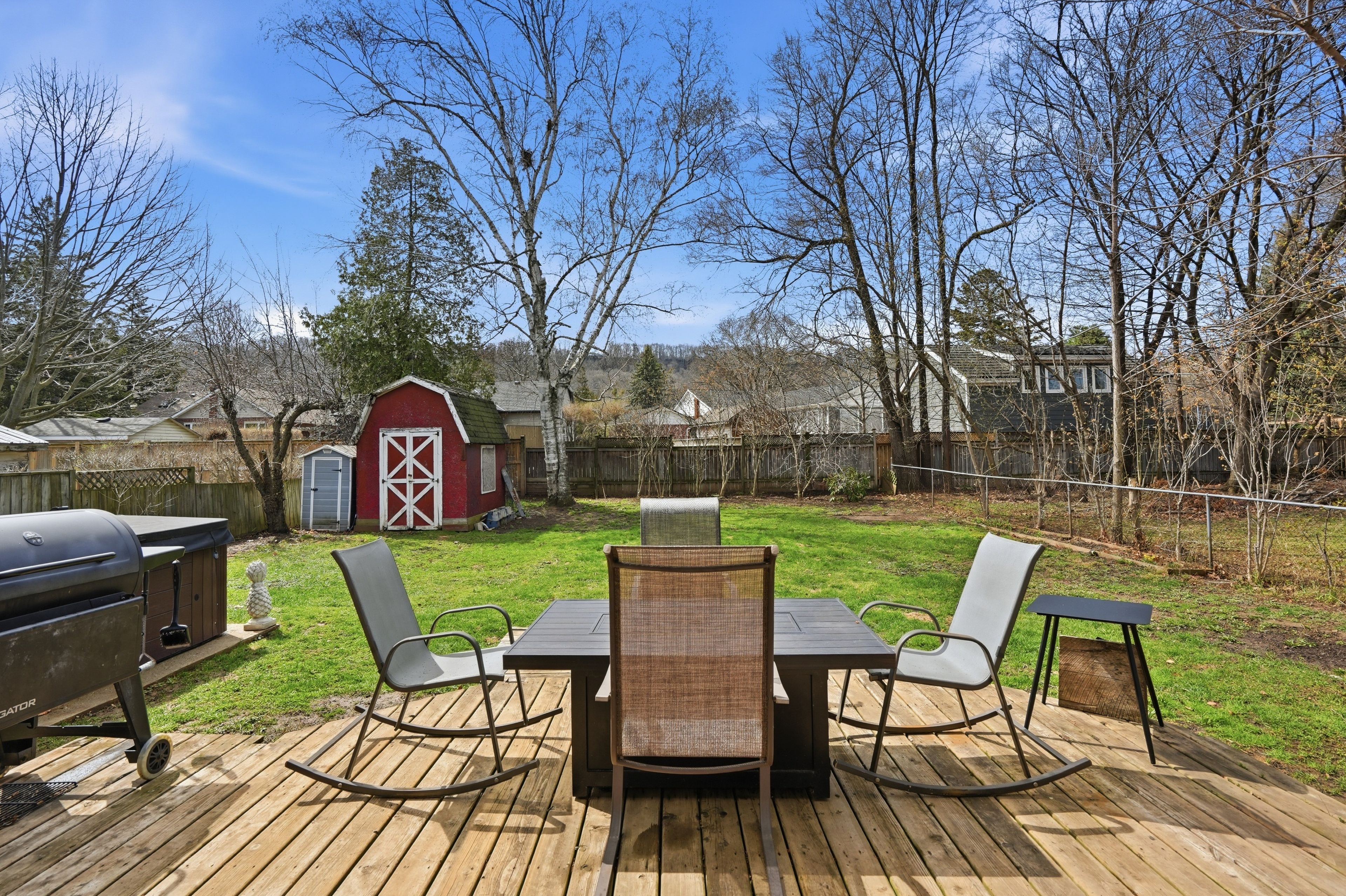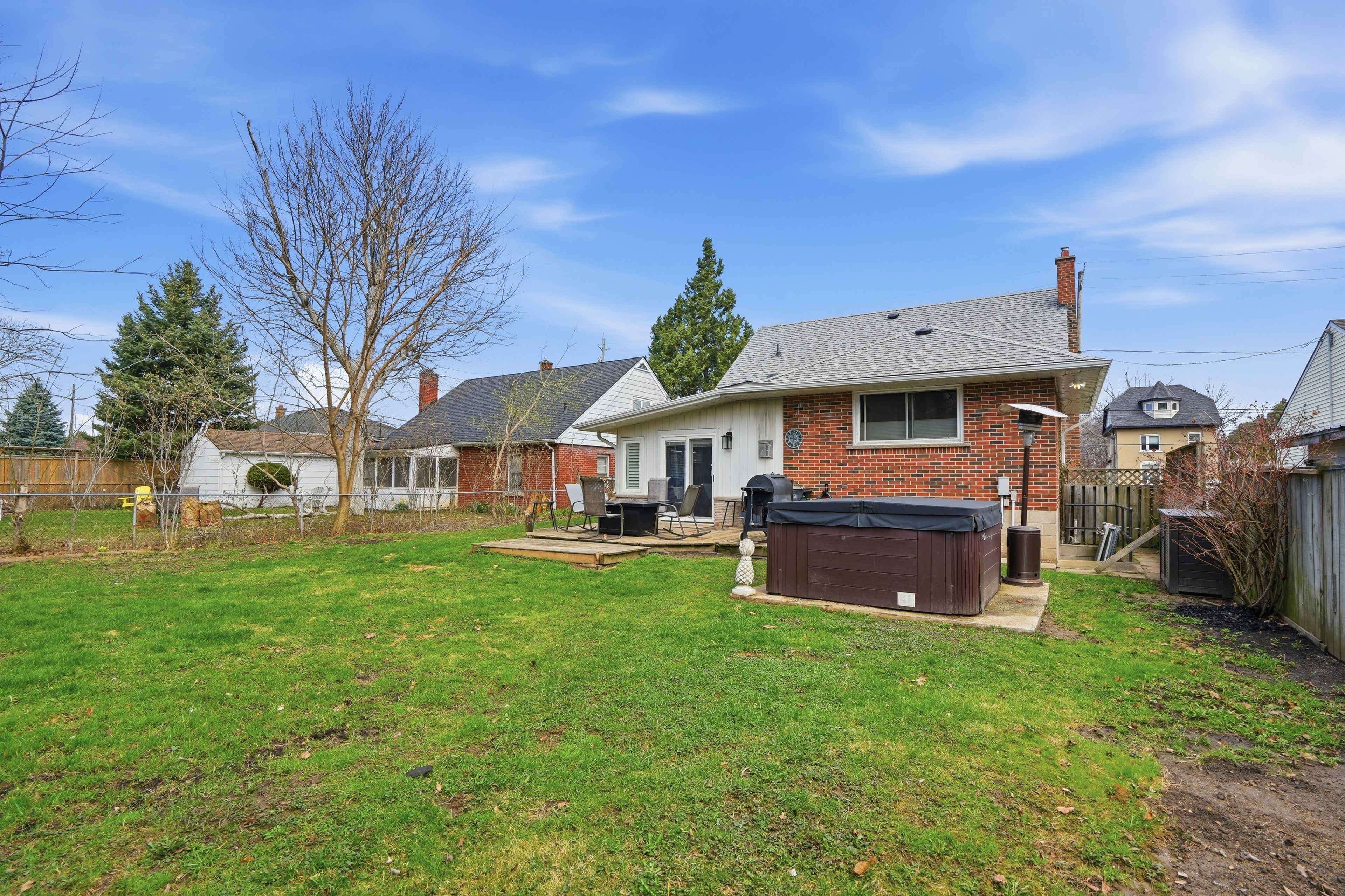• Spacious fully fenced yard with hot tub and potential for a dream backyard.