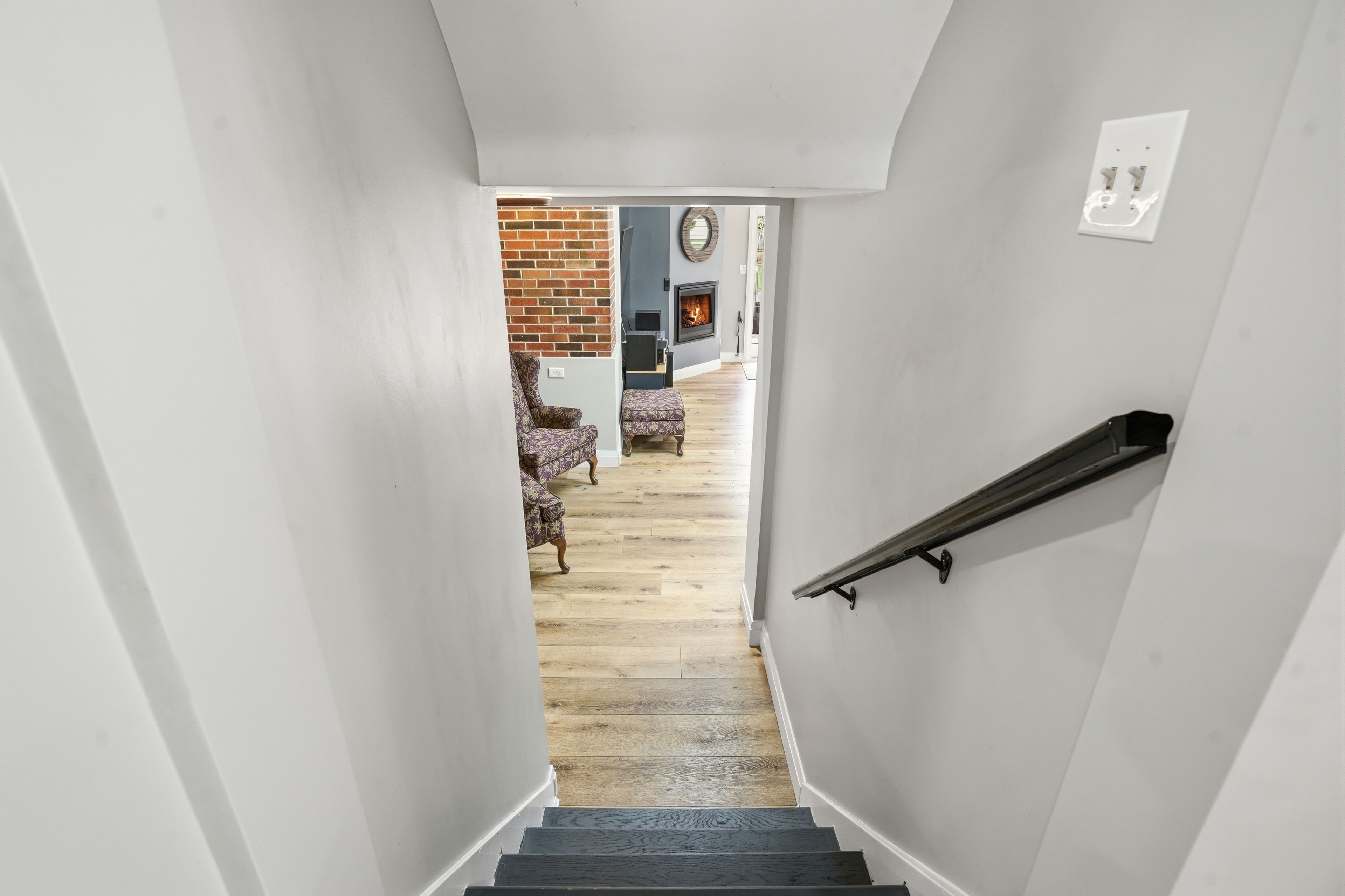Bigger than it appears! Renovated 1. 5 storey home (2021) in prime grimsby location. Stunning chef's kitchen with quartz counters, large island, ss appliances & pot filler. Open concept main floor with vinyl plank flooring, dining area, main floor primary bedroom + den (perfect for home office). Upper level offers 2 spacious bedrooms with walk-in closets. Lower level features cozy family room with gas fireplace & walk-out to yard. Basement provides in-law suite potential with bedroom, 3pc bath, rec room & workshop. Fully fenced 53 x 150 ft lot with hot tub & room to create your dream backyard oasis. Close to all amenities & highway access.