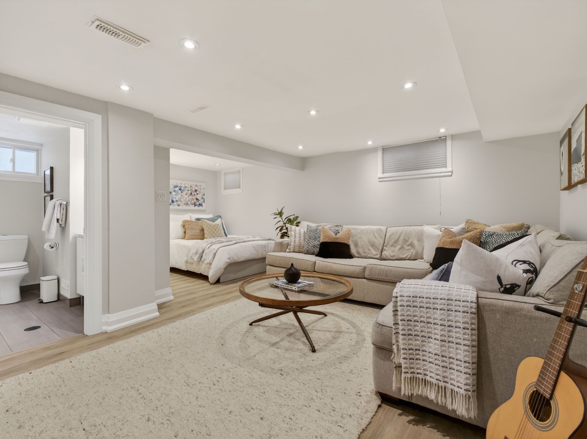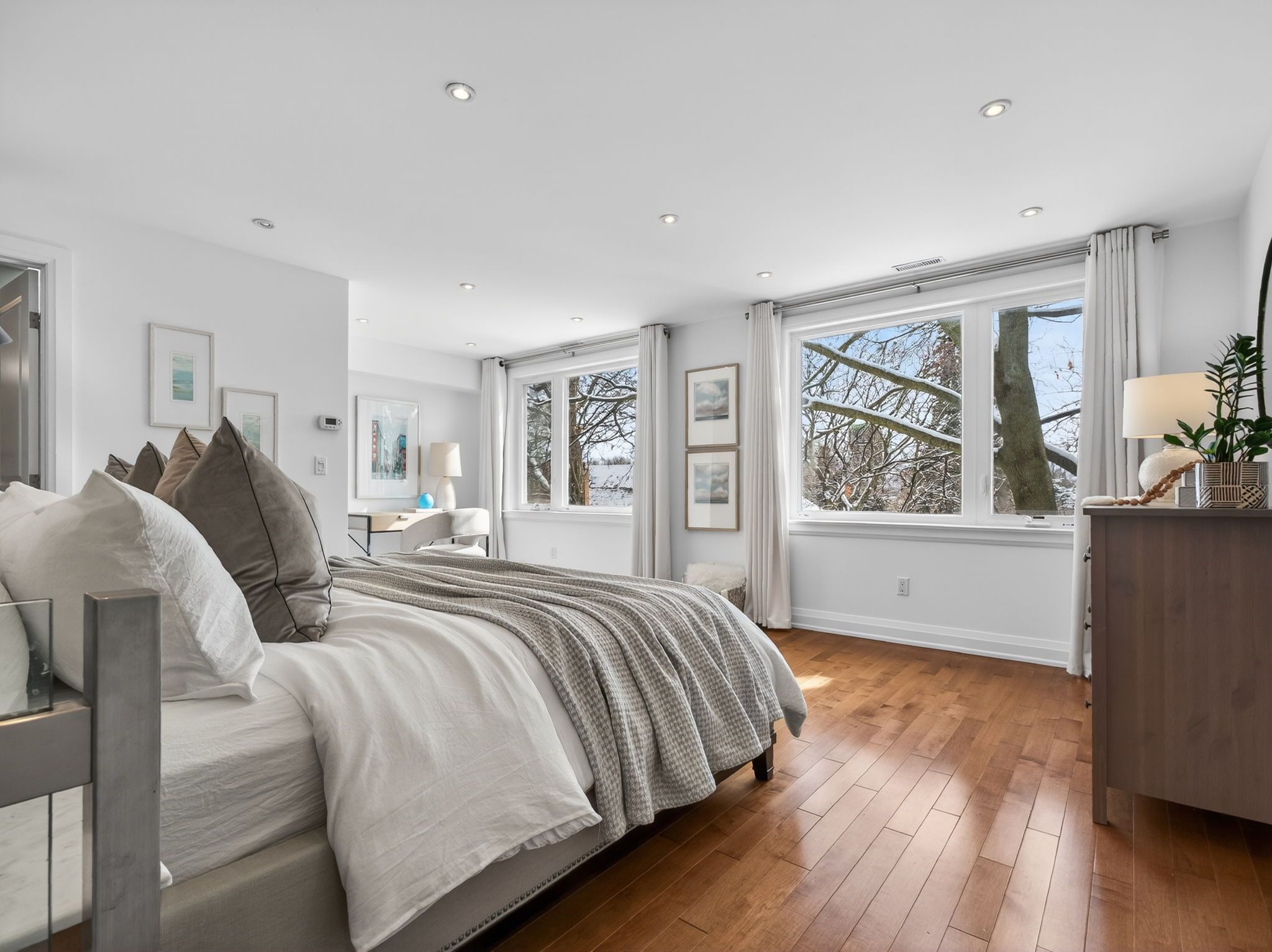 Fully renovated and flooded with natural light, this exceptional detached, 4+1 bedroom home sits on a deep south-facing lot near the top of the hill on manor road, offering a ravine-like setting and a rare sense of peace in the heart of midtown. Thoughtfully designed from top to bottom, blending warmth, functionality and elevated style. The oversized covered front porch offers a serene additional living space and a favourite spot to enjoy year-round. Cozy up beside the wood-burning fireplace in the living room on chilly evenings or unwind in the lush, private garden in the warmer months. The open-concept kitchen and dining area features a wall of windows that fill the home with natural light and sky. Custom cabinetry, quartz countertops and a large breakfast bar create a space that is both stylish and functional, with generous storage throughout. The second level offers three bedrooms, including two spacious rooms with walk-in closets and a third bedroom or office overlooking the garden. The primary suite is a true retreat, occupying its own private floor and featuring a custom walk-in closet and spa-like ensuite with an enclosed steam shower and skylight. The multi-purpose lower level includes a convenient mudroom, a bedroom (if desired), a rec room and a roughed-in kitchen. Ample storage for bikes and gardening tools in the shed. A rare and peaceful oasis offering the perfect balance of nature, thoughtful design and city living. This sought-after family community is walking distance to everything you will need! A few minutes to davisville or eglinton subways, trendy shops, restaurants, amenities and parks. In the highly desired davisville jr p. S., hodgson m. S., and north toronto ss catchment.