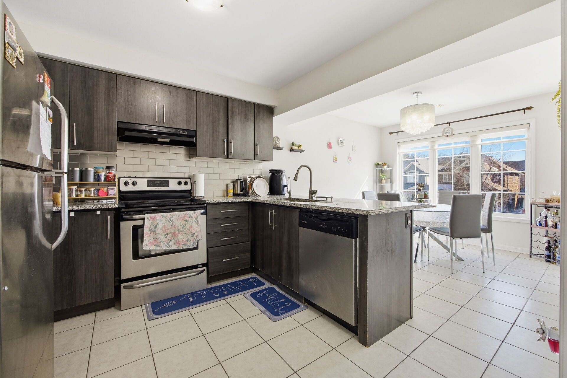 Welcome to this elegant 3-bedroom home with a spacious walk-out rec room. The moment you step inside, you will be greeted by a grand open-to-above foyer with an extra-large transom, setting the tone for the luxurious living throughout. The modern, sun-filled kitchen is an entertainers dream, featuring granite countertops, a sleek stainless steel backsplash, s/s appliances, and a cozy breakfast area perfect for enjoying your morning coffee or hosting family gatherings. The bright and inviting great room features pot lights and a gas fireplace, offering a relaxing atmosphere for both quiet nights in and entertaining guests. Upstairs, you'll find three generously-sized bedrooms and two full bathrooms, including the primary suite with a walk-in closet and a spa-inspired 5-piece en-suite. A large picture window in the second bedroom adds charm and brings in plenty of natural light, while the homes position facing detached properties provides additional privacy. Located in a highly sought-after area, this home is close to schools, college, restaurants, transit, and all amenities. Recent upgrades include new laminate flooring in the basement rec room and all bedrooms. Don't miss out on this exceptional opportunity for comfortable, stylish living!