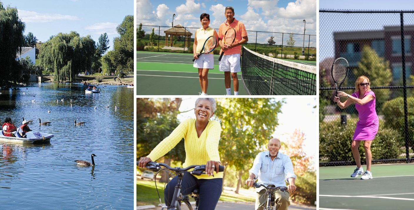 • Resort-style amenities including golf, fitness center, and scenic trails.