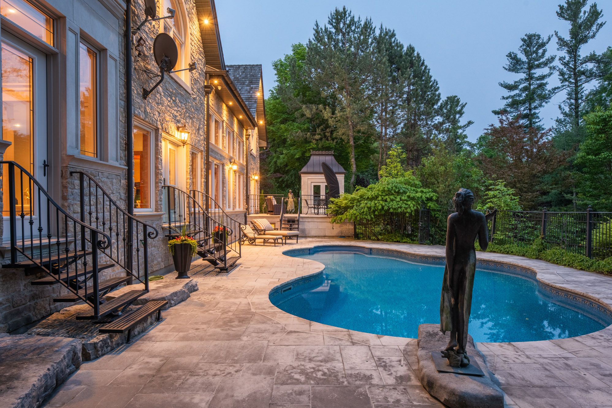 Exquisite country estate in prestigious kleinburg, welcome to a truly one-of-a-kind oasis, nestled on over an acre of professionally landscaped grounds in the heart of kleinburg, backing onto the prestigious copper creek golf club. This magnificent stone family home boasting over 6000 sq ft offers 4 spacious bedrooms, 6 luxurious bathrooms, and expansive principal rooms with soaring ceilings and top-of-the-line quality finishes throughout. The heart of the home is a gourmet chefs kitchen, seamlessly blending elegance and functionality for everyday living and exceptional entertaining. The finished lower level is a dream retreat, complete with a large wine cellar, perfect for connoisseurs. Outdoors, your private sanctuary awaits: in ground pool and spa with magical water features and two cascading waterfalls. Terrace with a custom-built bbq house, complete with an overhead ventilation system. Pool house featuring a full chefs kitchen and 3-piece bath, opening directly to the terrace ideal for entertaining. Spring-fed pond , creating a serene, resort-like atmosphere. Heated private driveway, 3-car garage, outdoor lighting, in-ground sprinkler system, and lush rockery gardens all meticulously designed for year-round beauty and comfort. This rare gem combines unmatched luxury, privacy, and natural beauty, offering the best of refined country living just backing onto copper creek golf club & minutes from the conveniences of the city. Experience the magic of this breathtaking estate schedule your private tour today.