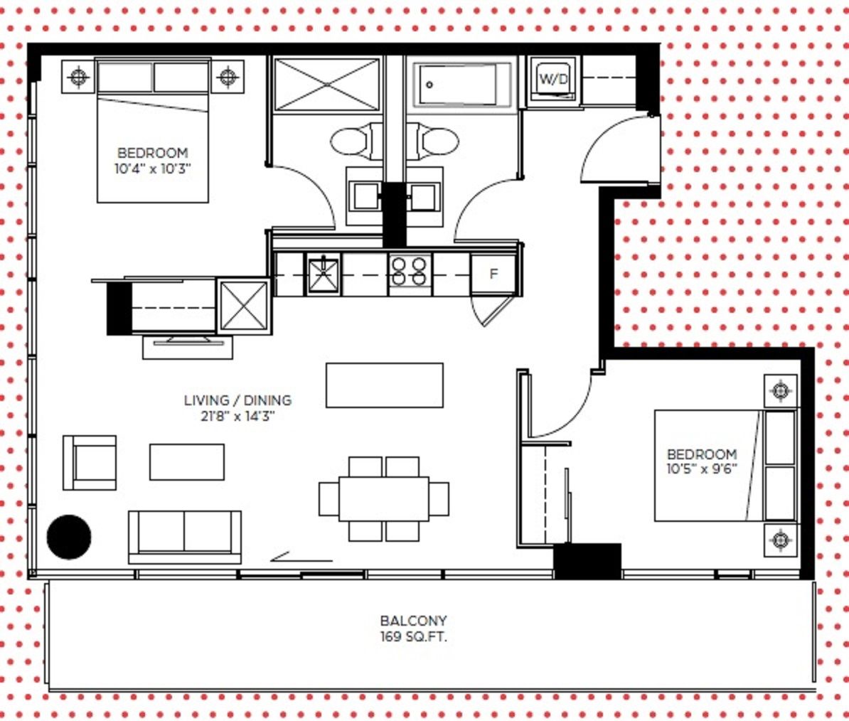 • Two bedrooms and two full bathrooms for added privacy.