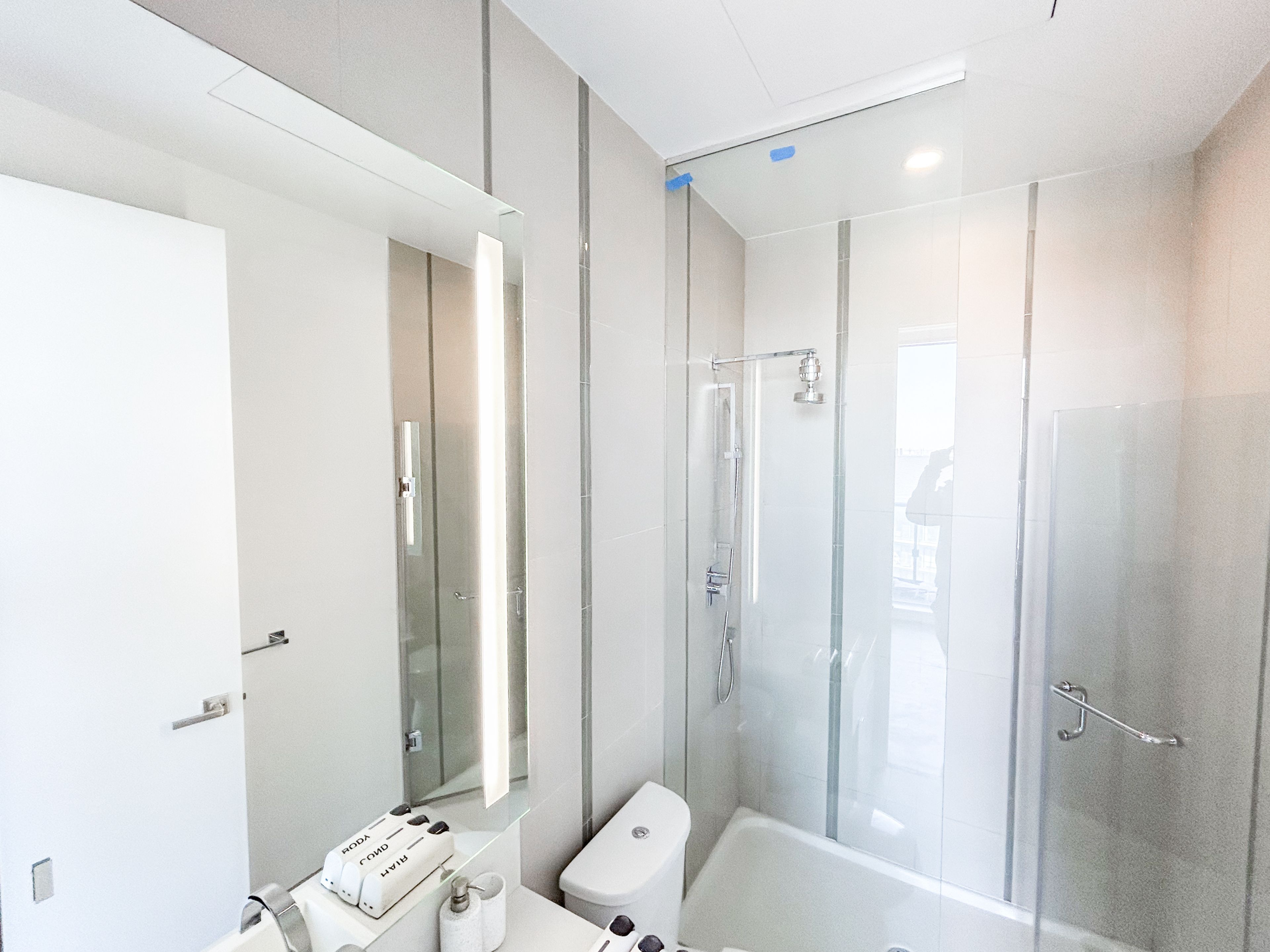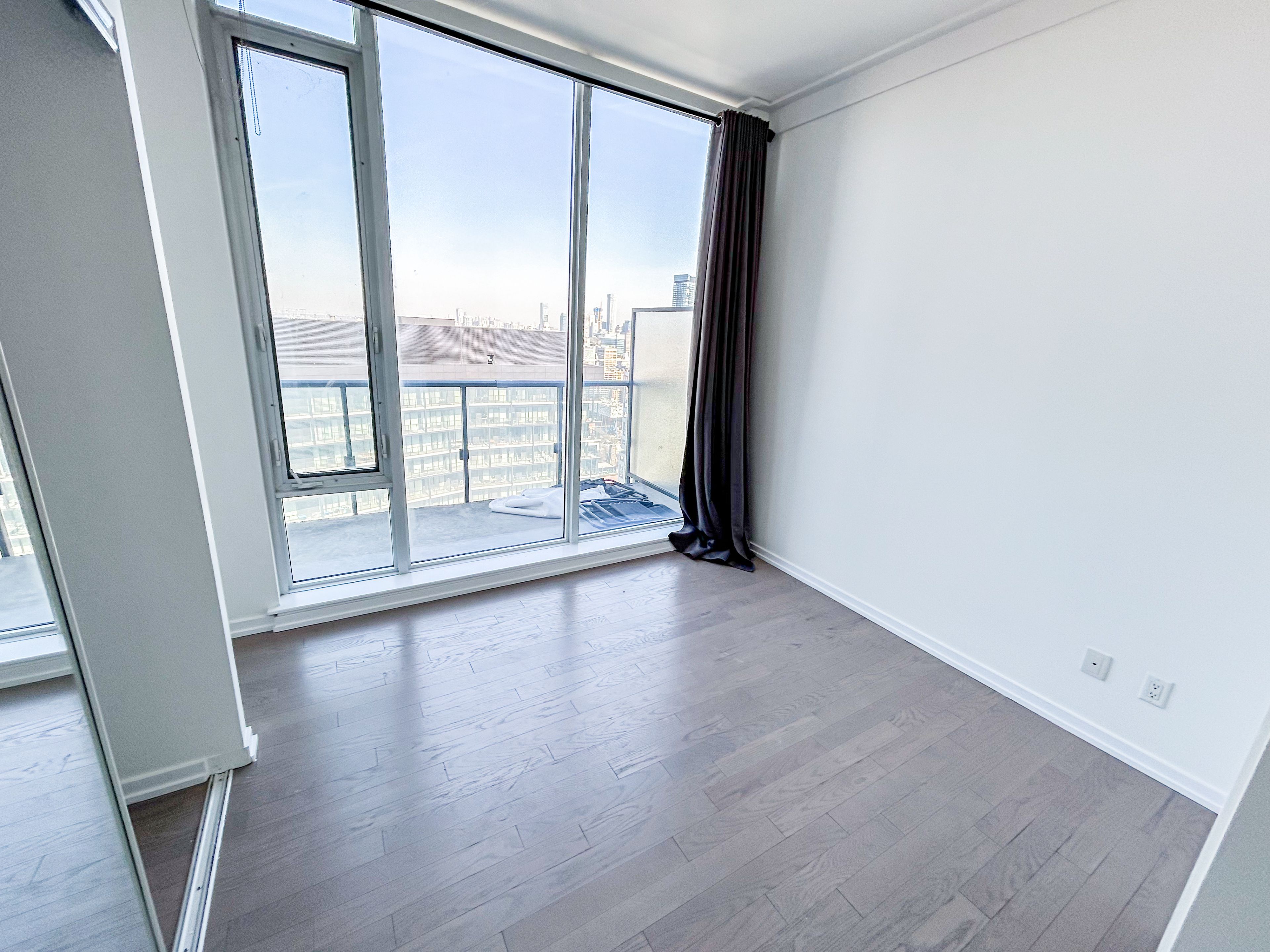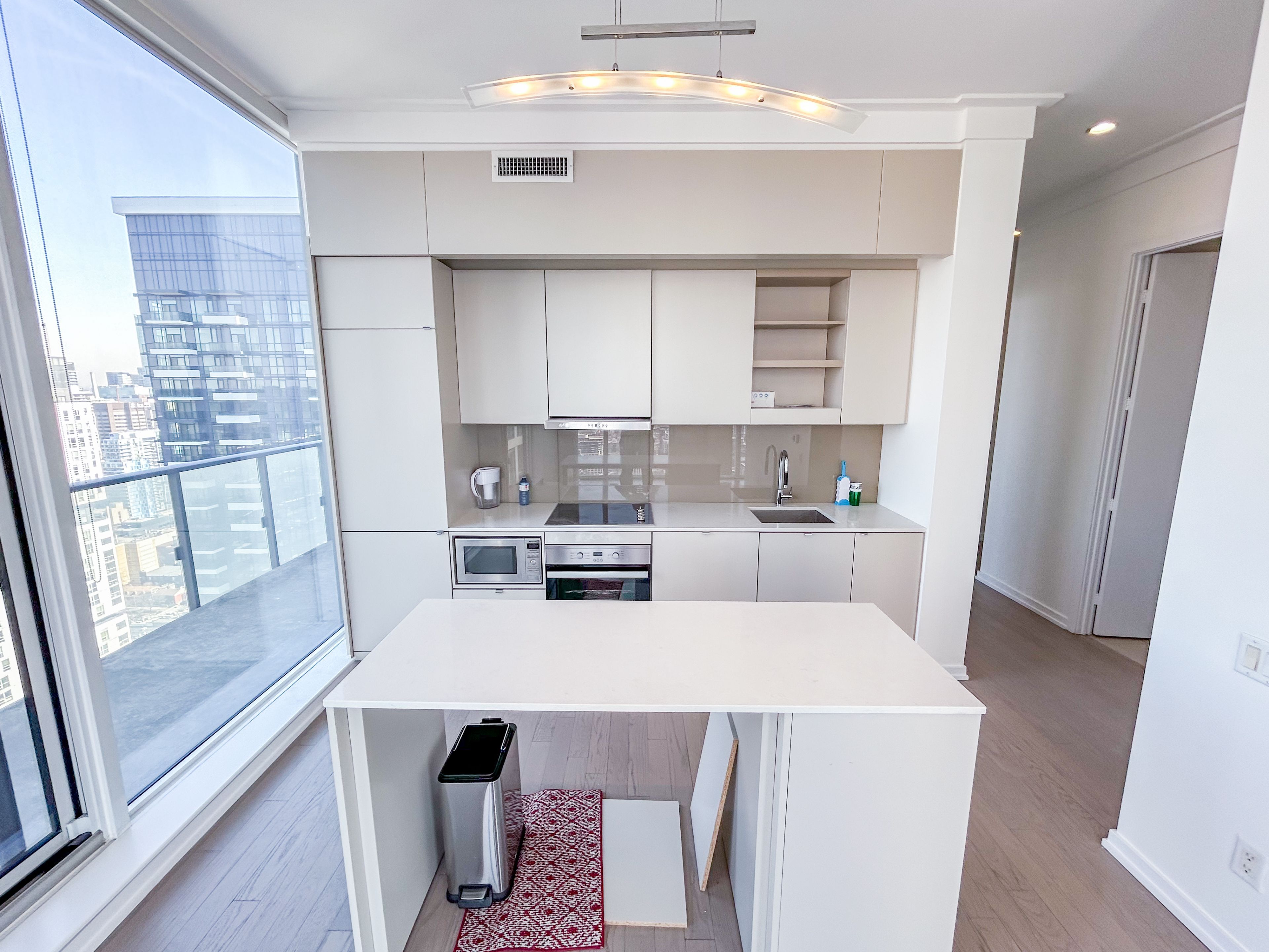 • Floor-to-ceiling windows enhance natural light and city views.