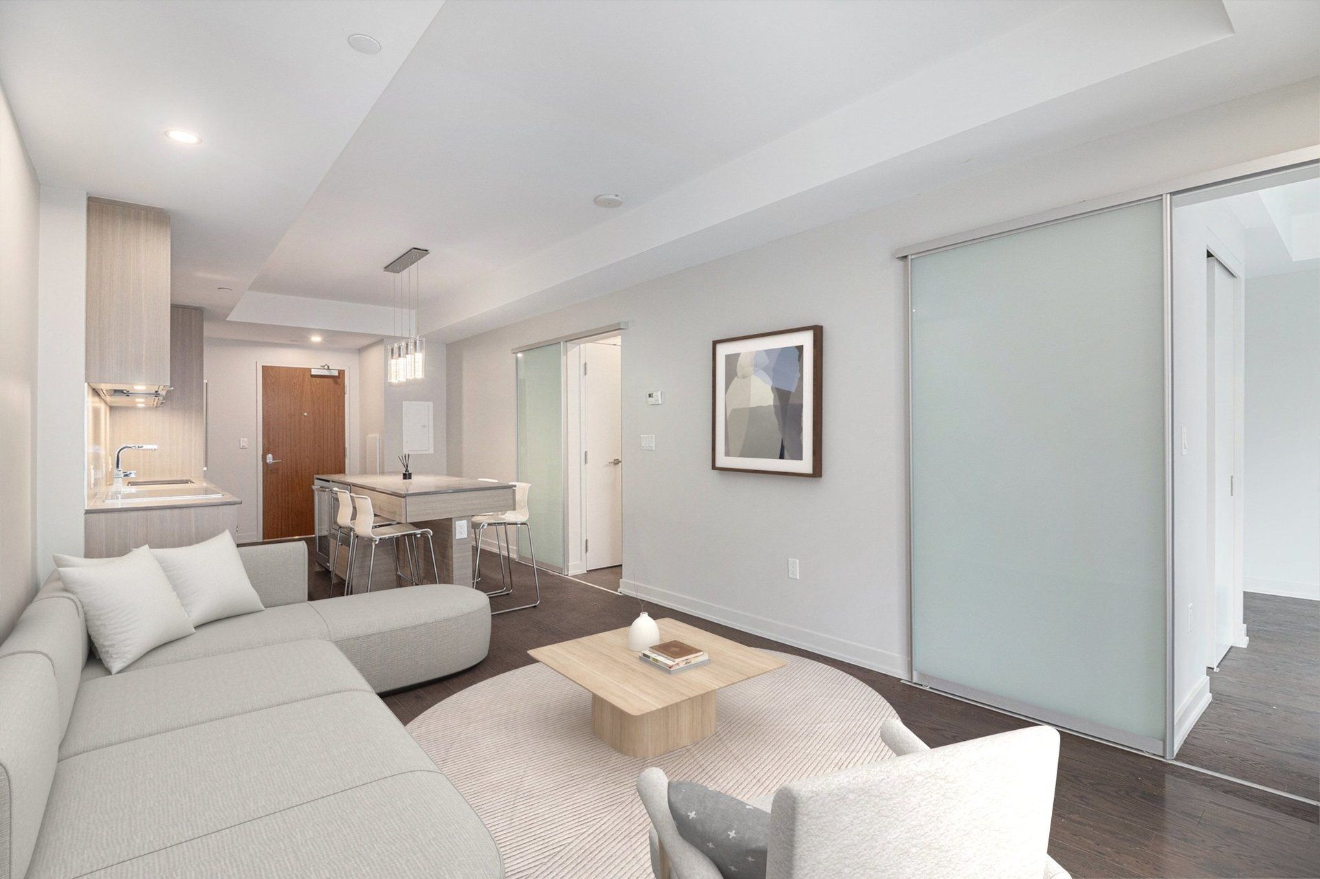 • Elegant 1-bedroom apartment with modern finishes and hardwood flooring.