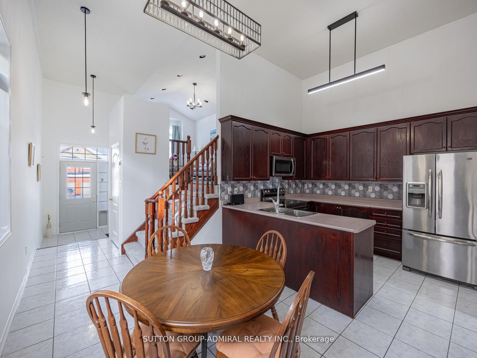• Modern kitchen with stainless steel appliances and cozy breakfast area.