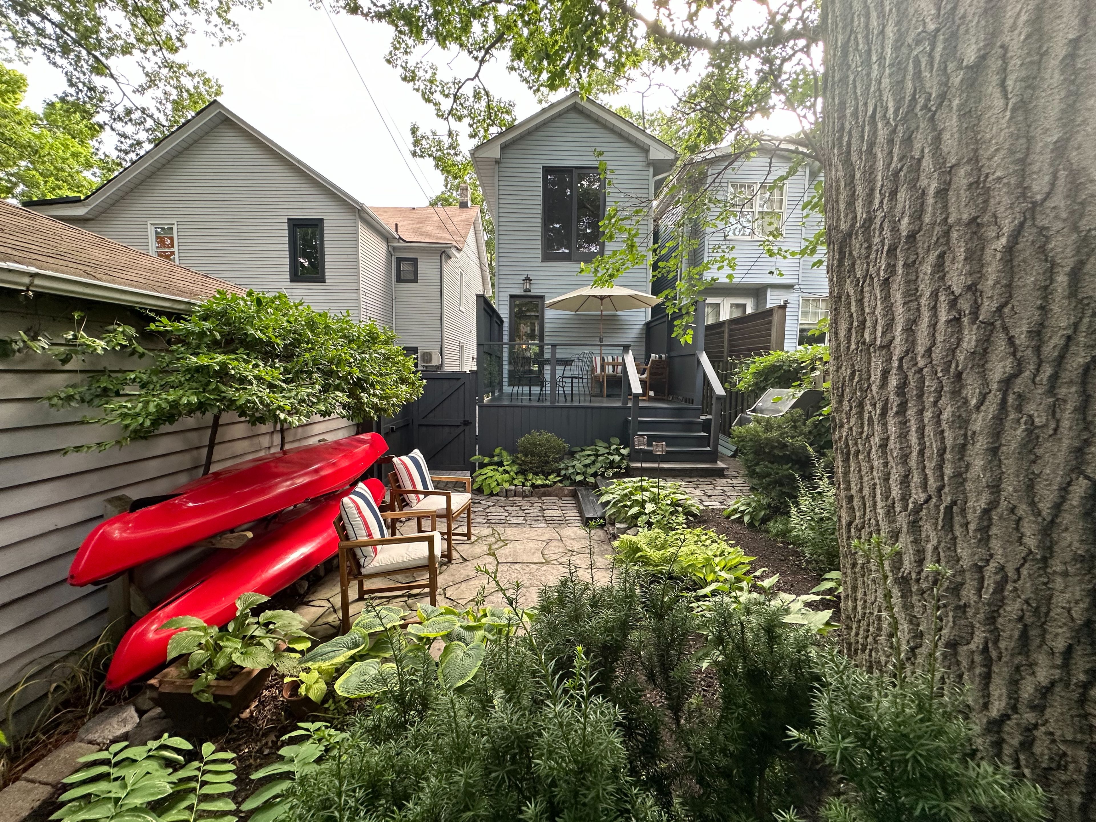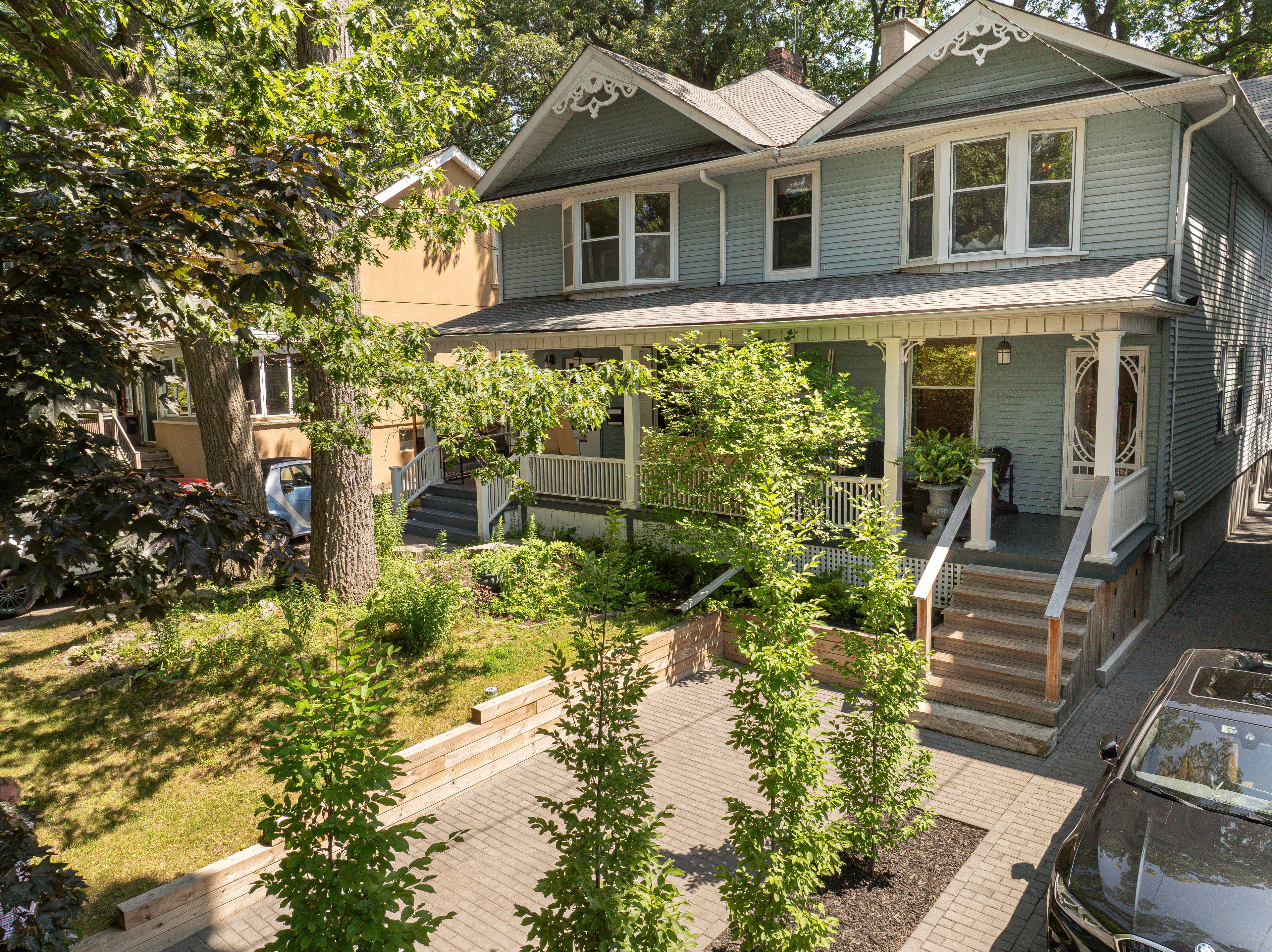 Coveted silver birch - beneath the most enchanting tree canopy in the beach. Balmy community - where mature trees arch overhead and neighbours become lifelong friends. And are you ready for this? Legal two-car tandum parking (with charger.) said no semi ever! Beach nostalgia included. A quintessential front porch sets the tone - morning coffees, post-swim chats, halloween magic. Solid character. Evident pride of ownership. A super-functional layout filled with stunning natural light, beautifully juxtaposed with warm wood tones and 9' ceilings. The main floor checks every box: a rare powder room, fireplace for cozy nights, a walk-in mudroom closet (because real life happens), and a generous dining room made for holiday dinners & long-table gatherings. Ideal kitchen for entertaining, homework & an extension for moving outdoors & bbqs on the deck (& check out the stunning original door.) upstairs, the primary suite is incredibly spacious & private, with leafy views & beautiful natural shade - your own treetop retreat. The walk-out lower level with separate entrance offers flexibility for guests, teens, or in-laws. Out back, the yard is ready for dinner under the stars, storage for kayaks, and shady summer playdates. Steps to the lake and all the conveniences of queen street east. Out of milk? Craving warm bagels? You're close enough to go in your jammies. This is the beach at its very best.