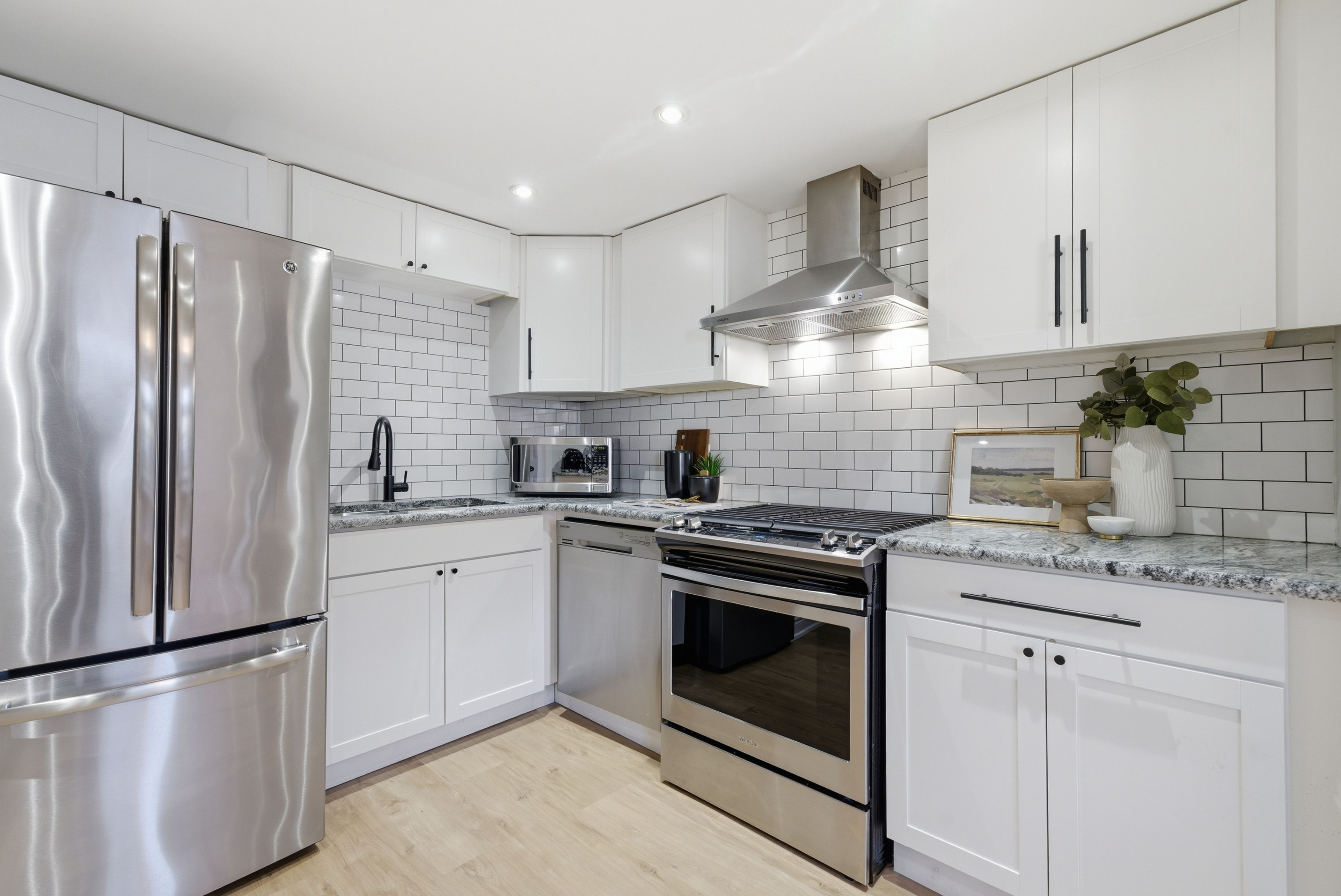 • Private backyard with new fencing and a cozy patio for gatherings.