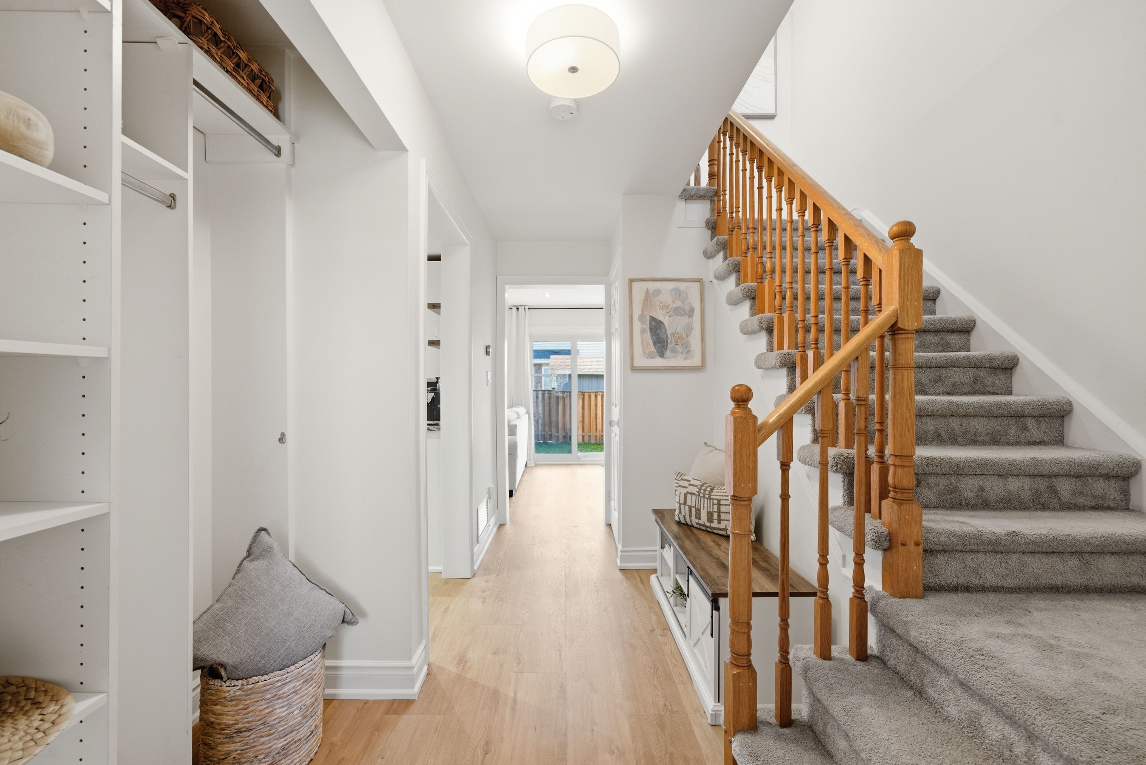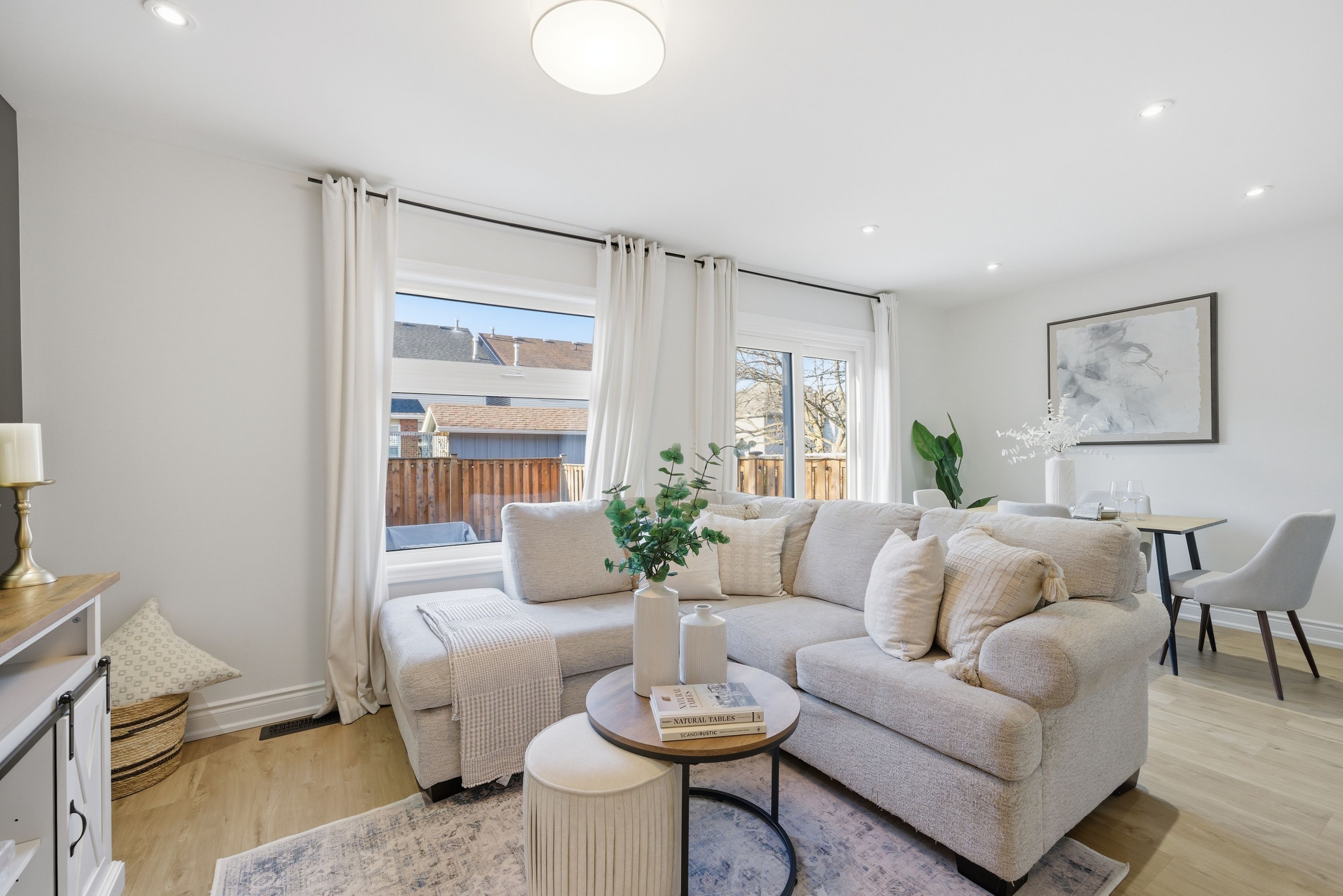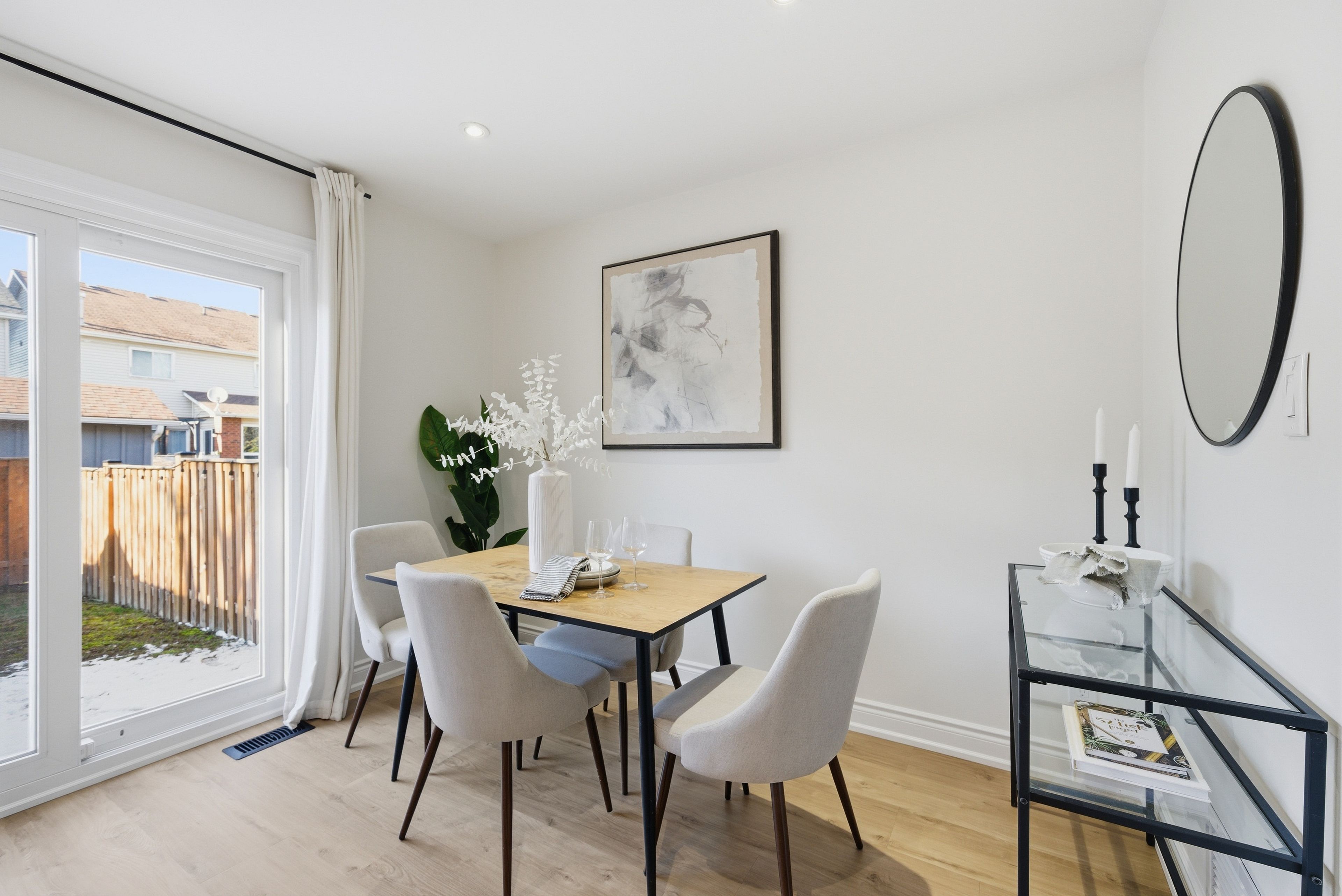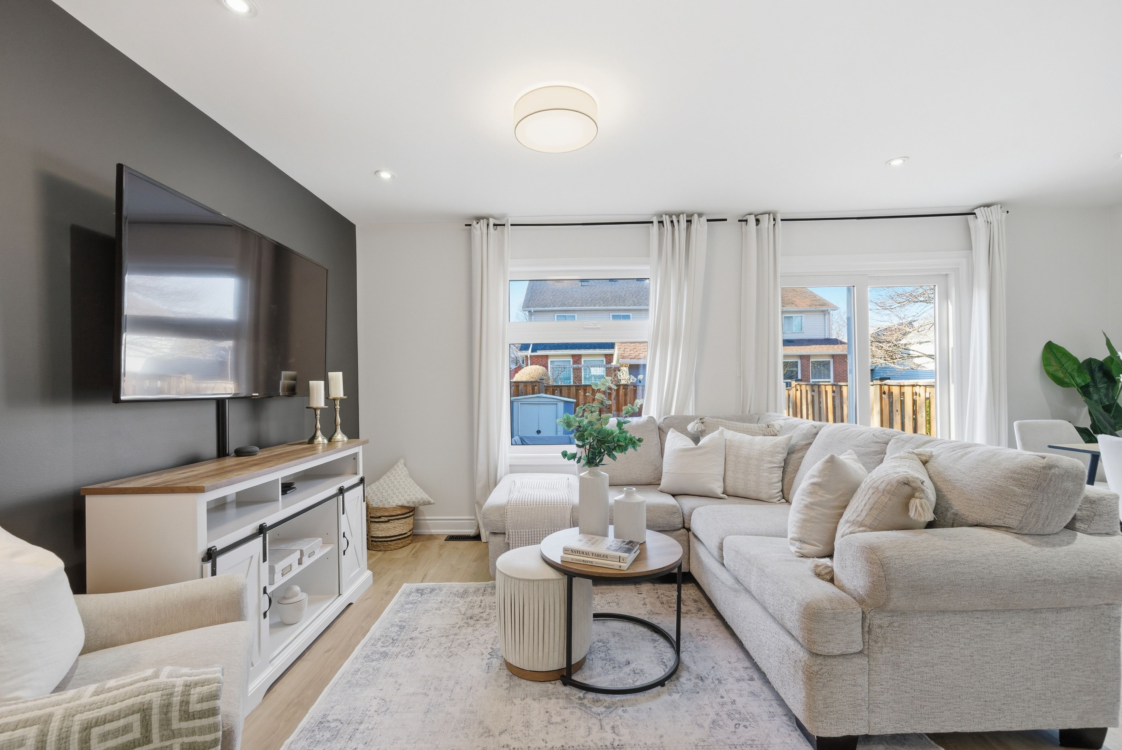 Stylish, move-in ready townhome perfect for first-time buyers! Step inside and immediately feel how easy this home is to live in. Natural light pours through, creating a bright, welcoming atmosphere from the moment you walk through the door. The open-concept main floor is designed for real life, whether you're cooking dinner while catching up on your day, hosting friends, or enjoying a quiet night in. The modern, renovated kitchen features a contemporary backsplash, additional pantry & prep space, and flows effortlessly into the living and dining space, while smart, dimmable lighting lets you set the mood for any occasion. Luxury vinyl flooring, smooth ceilings, updated trim and fresh paint throughout give this home a clean, modern feel that's completely move-in ready! Upstairs, the spacious primary bedroom offers convenient access to the updated bathroom featuring a new tub and shower (2025). Major updates including windows, patio doors, furnace & a/c (2023) provide peace of mind. The unfinished basement offers excellent storage or a blank canvas to create additional living space over time. Outside, the private backyard with newer fencing (2024) and a patio seating area w/edison bulbs is the perfect setting for summer evenings & weekend bbqs. Located in a quiet, family-friendly neighbourhood just a short walk to historic downtown bowmanville, parks, schools and scenic walking paths, with easy highway access for commuters, this is an incredible opportunity to own a home that fits your lifestyle today and your plans for the future!