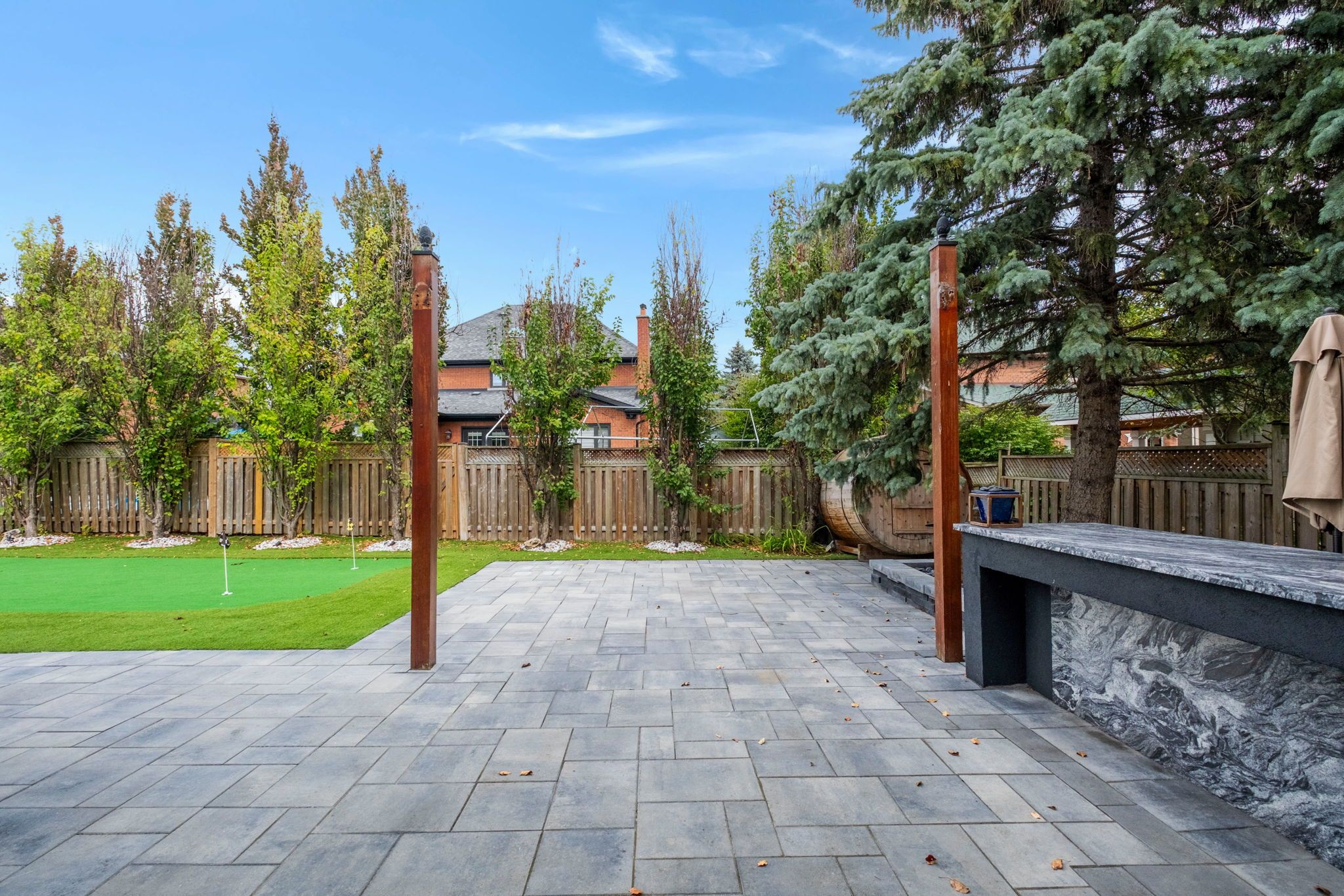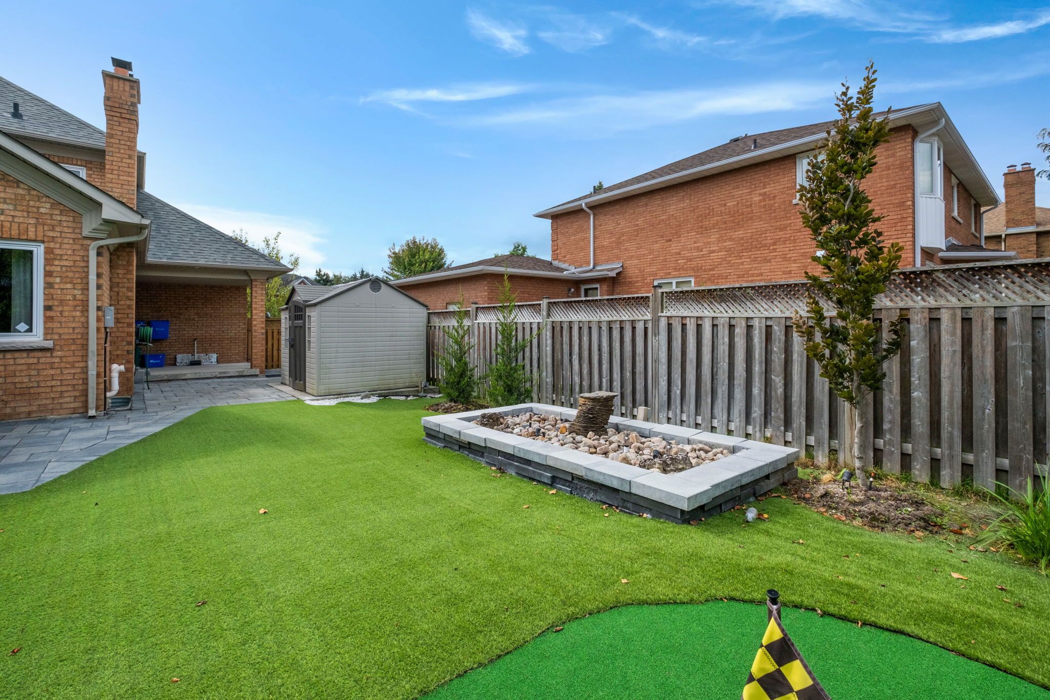 • Low-maintenance landscaped exterior with new interlocking pavers.
