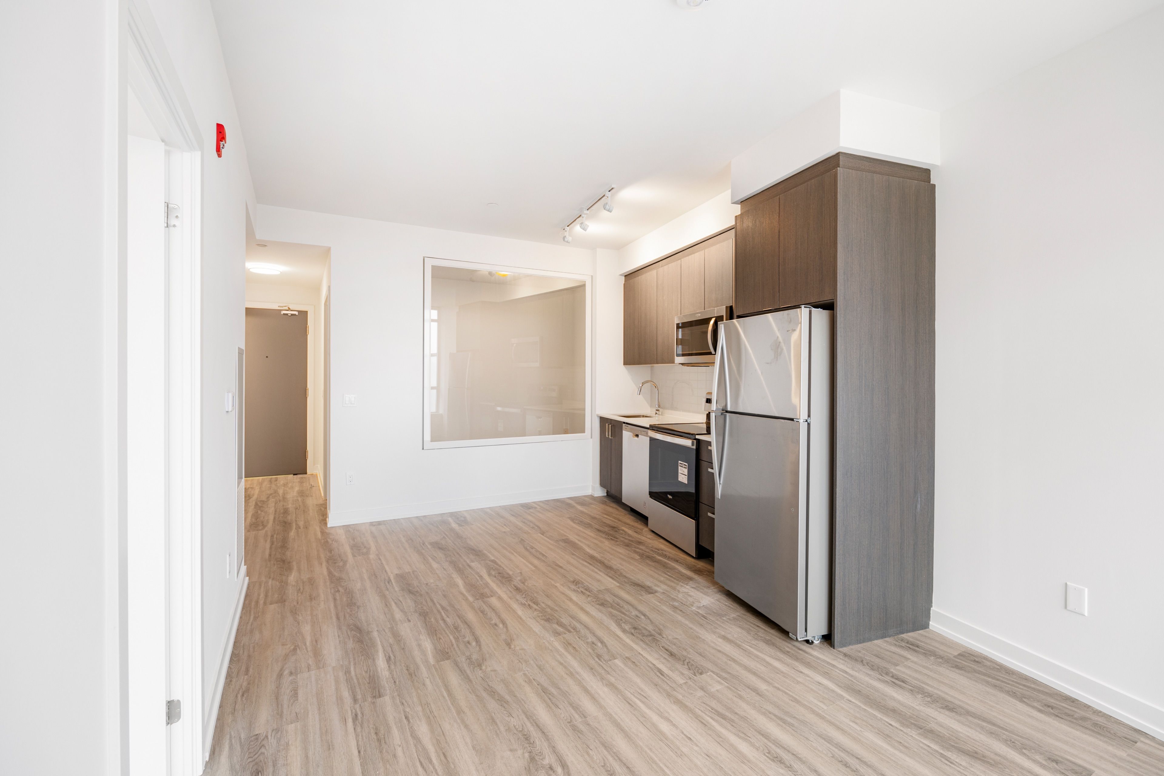 • Modern kitchen with high-end stainless steel appliances and quartz countertops.
