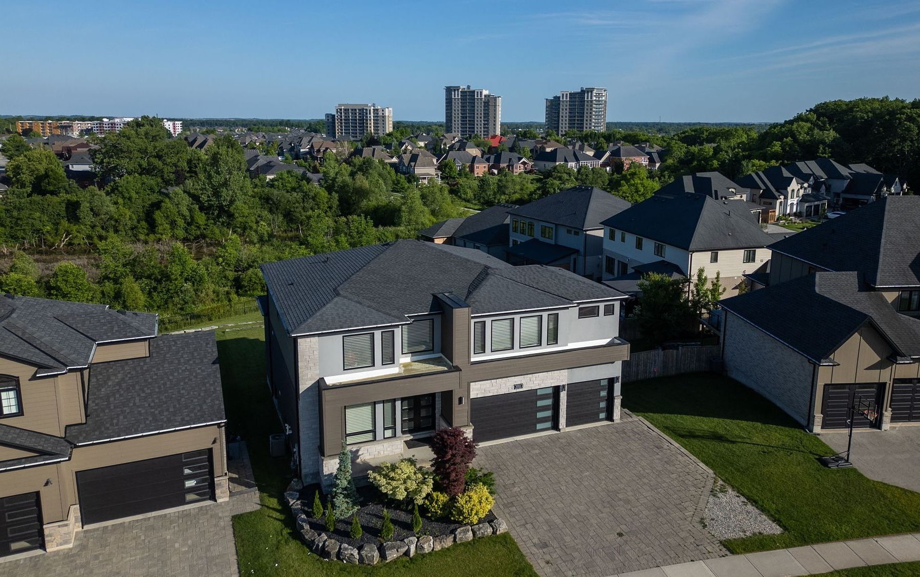 • Triple-car garage with a wide driveway for extra parking.