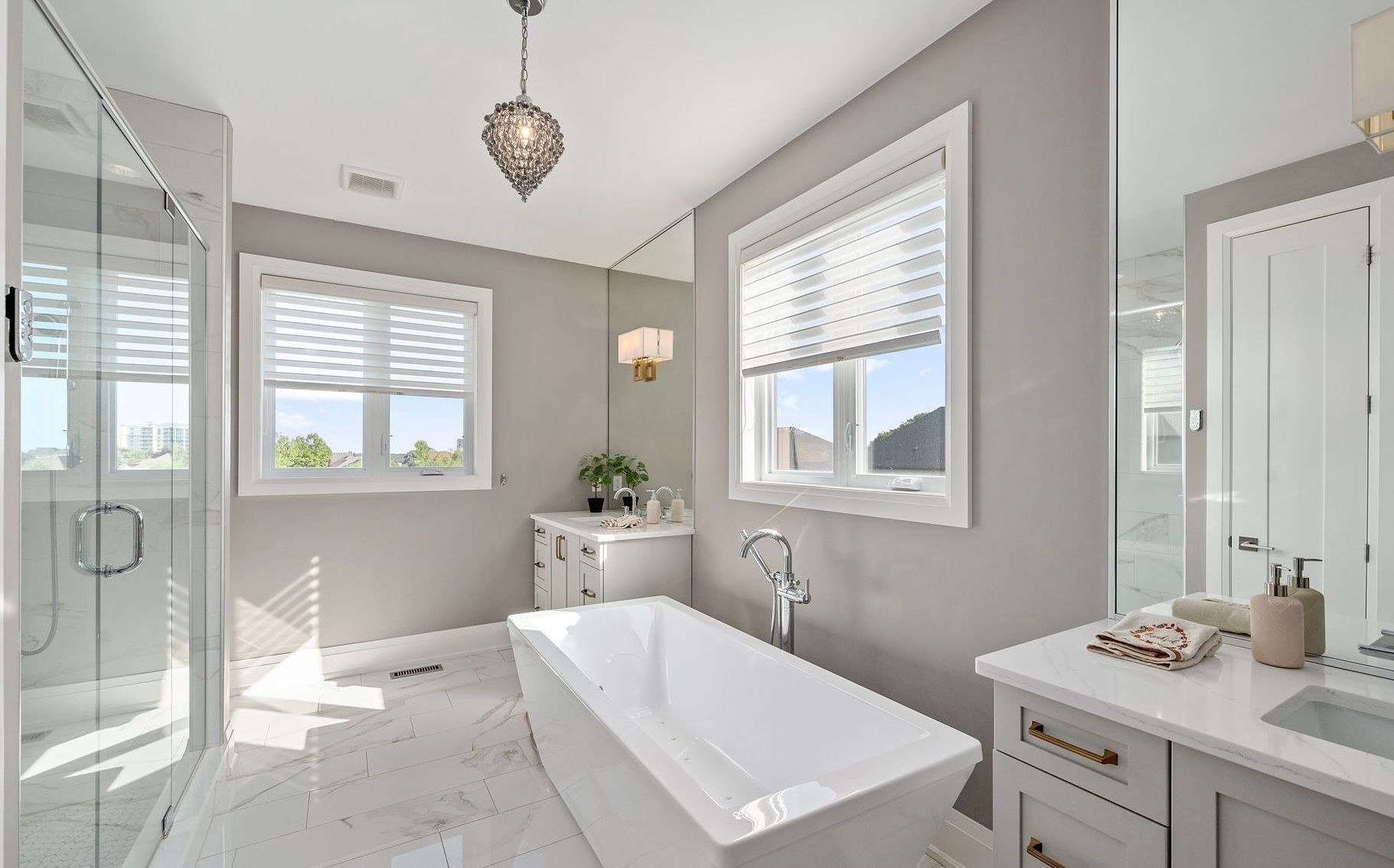 • Upper level with four large bedrooms and a grand primary retreat.