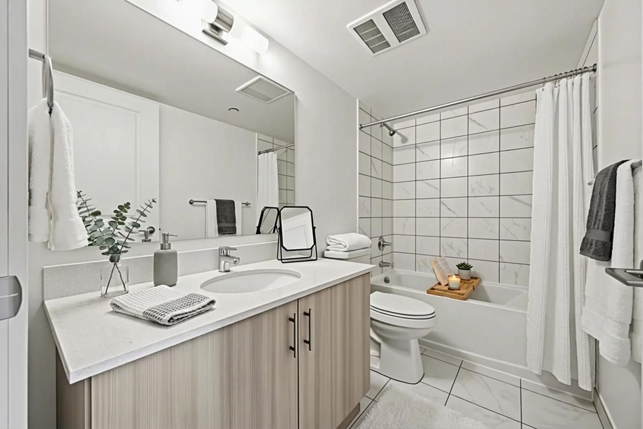 • Bright one-bedroom plus den suite with 585 sq ft of living space.