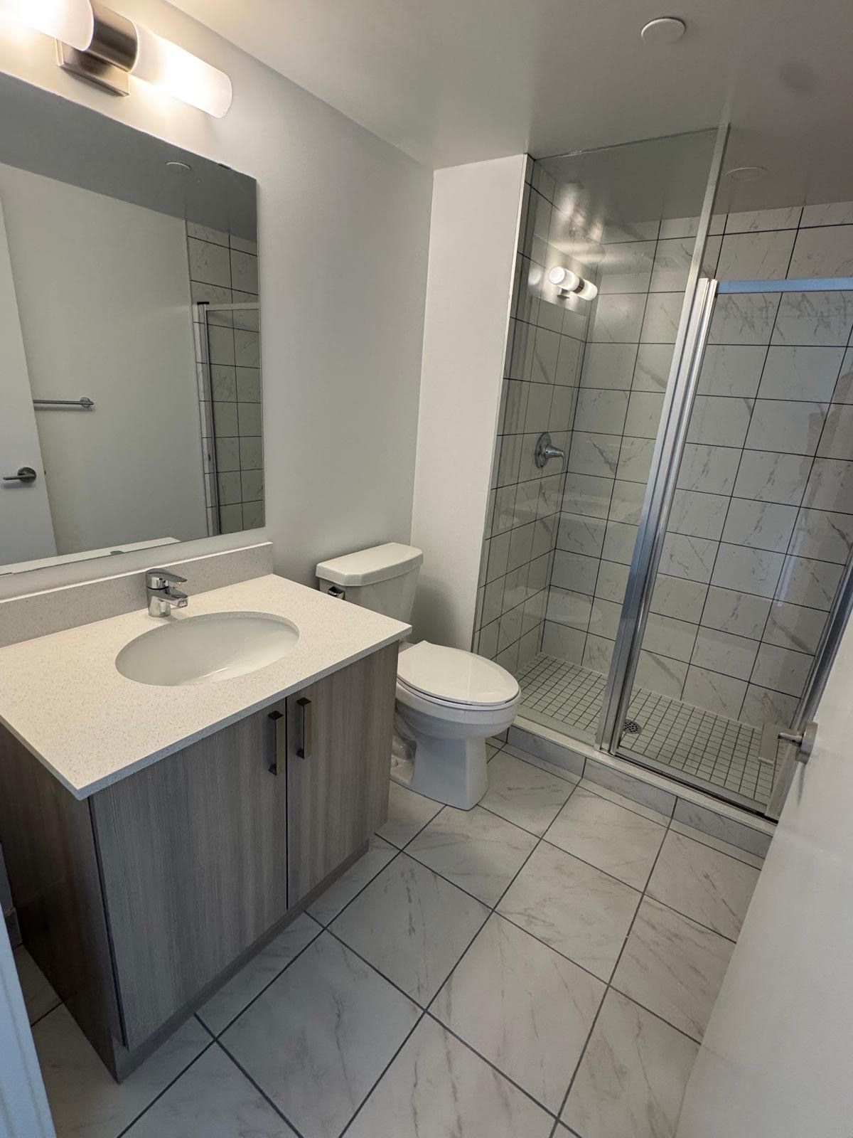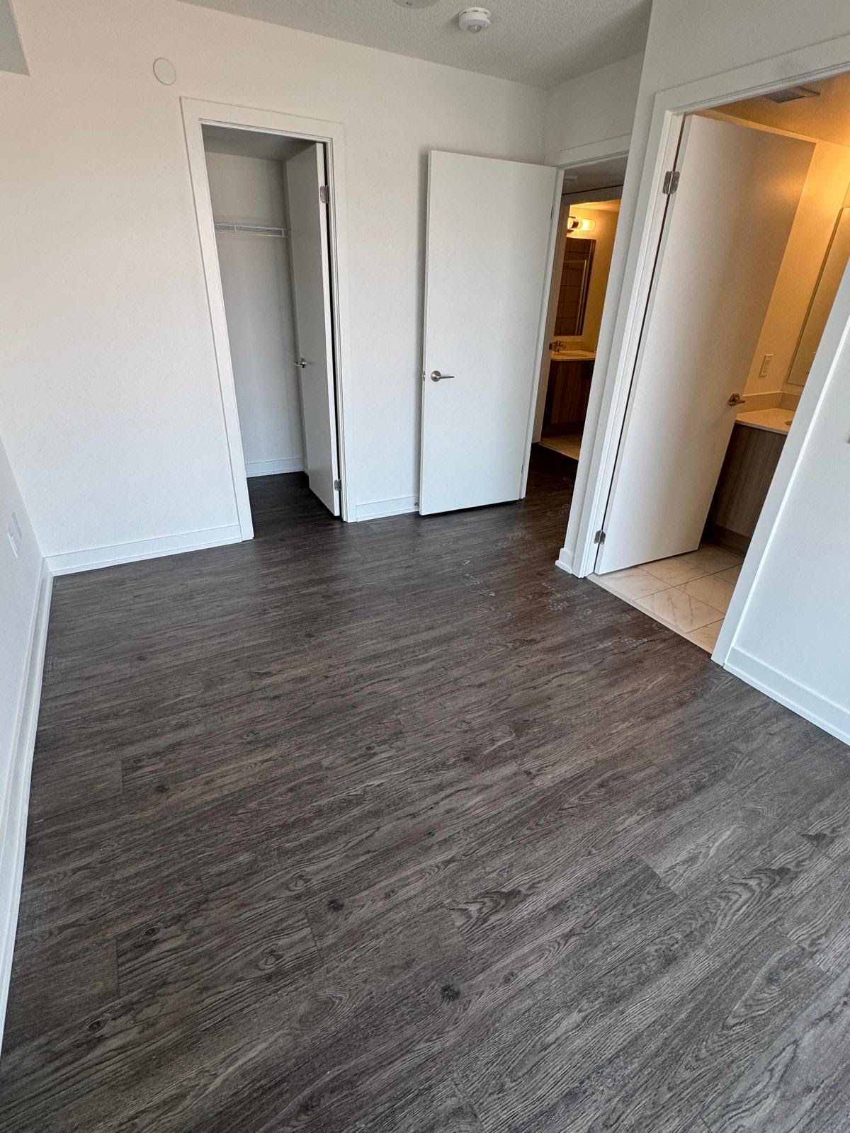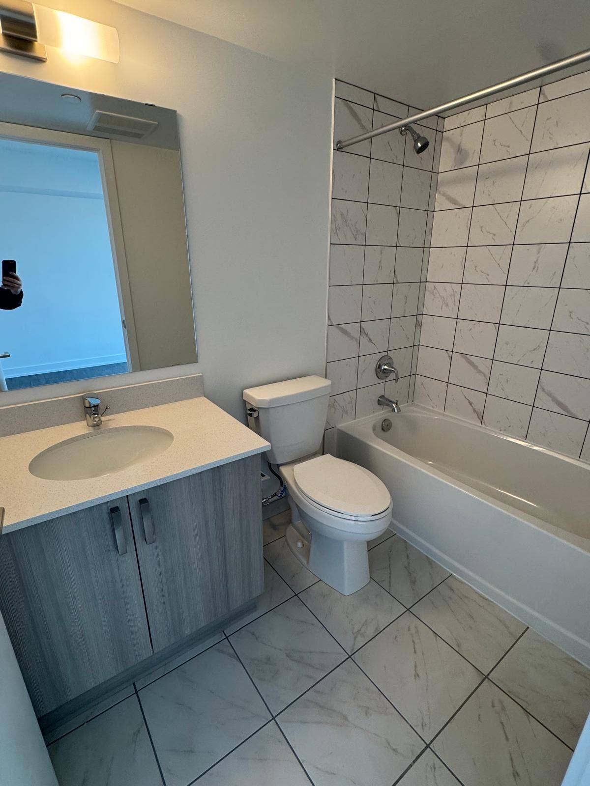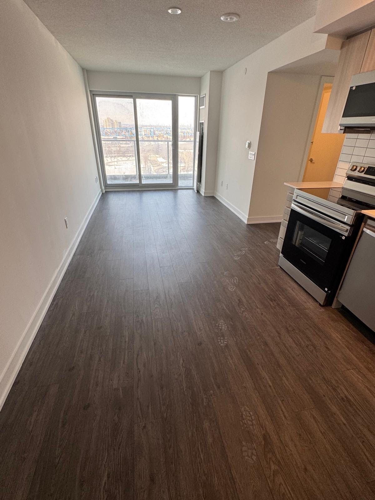Luxury 2-bedroom, 2-bath condo, functional layout with open-concept kitchen featuring quartz counters, stainless steel appliances, and a breakfast bar overlooking the bright living/dining area. Steps to the go station with quick highway access, plus excellent building amenities including concierge, party room, rooftop terrace with bbqs, and pool.