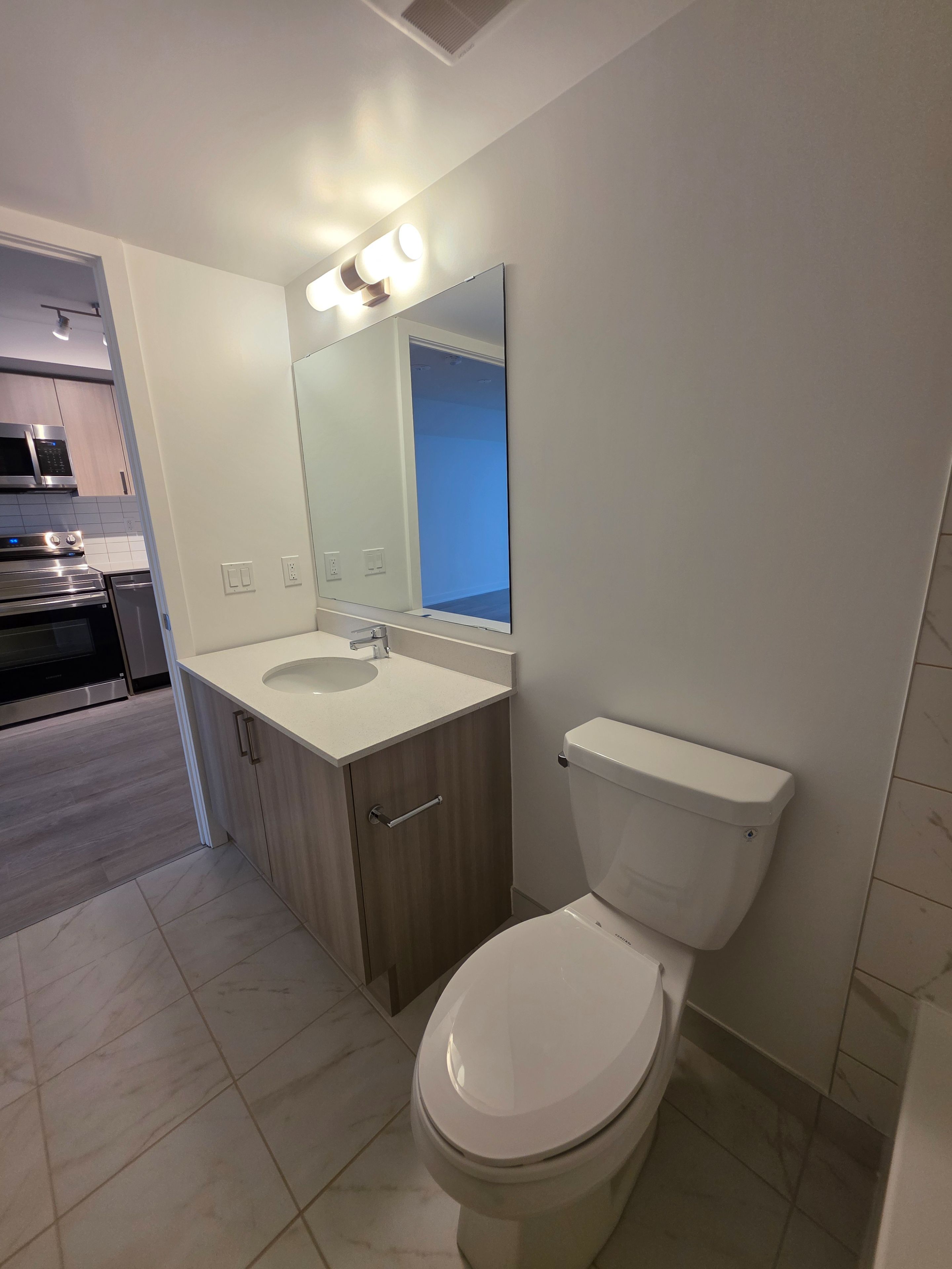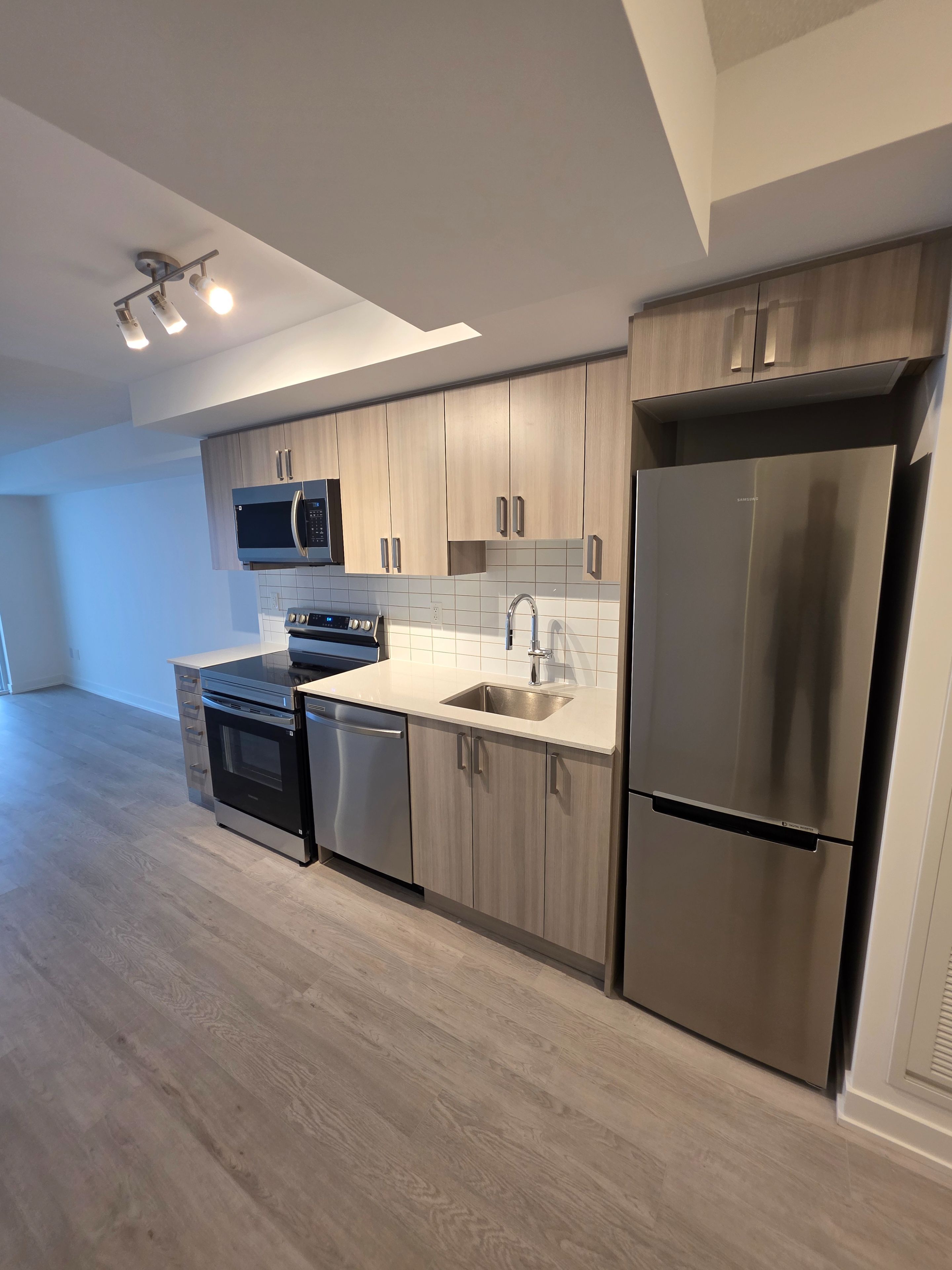 Welcome to this stunning, never-lived-in suite at universal city east, where modern comfort meets vibrant city living. Experience unparalleled lakefront living with sweeping views of lake ontario from your bedroom and living room through the private balcony. Perched high above the city, this beautifully crafted one-bedroom residence showcases breathtaking, unobstructed views from its private balcony - the perfect spot to relax and unwind. Thoughtfully designed with a bright, open-concept layout, the interior features a contemporary kitchen complete with quartz countertops, stainless steel appliances, and stylish finishes throughout. The spacious, fully enclosed bedroom offers generous closet space and a peaceful retreat at the end of the day. Residents enjoy access to an exceptional collection of amenities, including a 24-hour concierge, state-of-the-art fitness center , spin and yoga studios, an inspiring co-working lounge with private zoom rooms, and even a golf simulator. The spectacular outdoor terrace creates a true resort-like experience with a pool, bbq area, sauna, and a fun media studio for entertaining and socializing. Ideally located just steps to pickering go for a seamless commute to downtown toronto, and minutes from highway 401, pickering town centre, dining, recreation, and the waterfront. A perfect place to call home for professionals seeking a stylish, connected, and move-in-ready lifestyle.