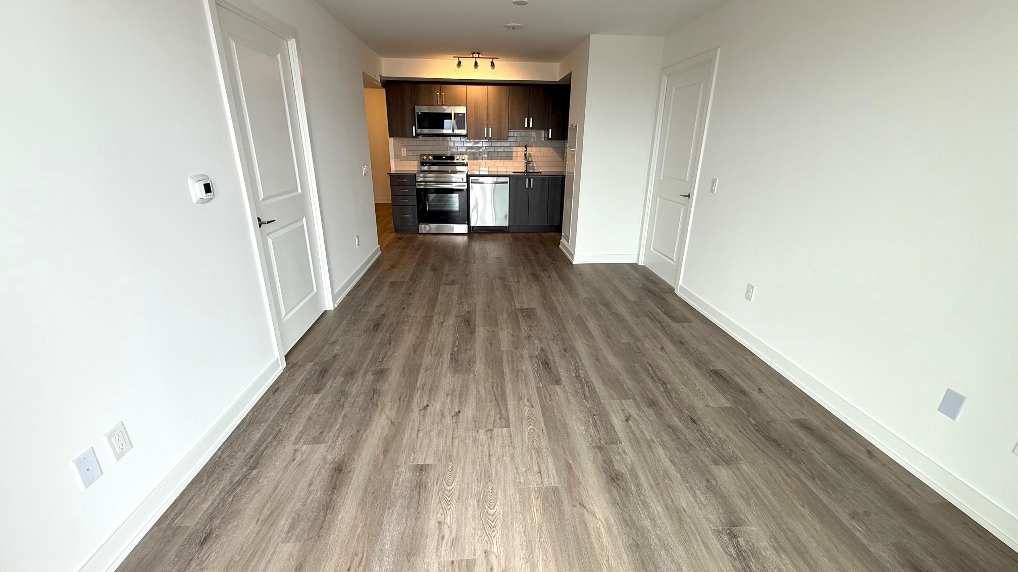 • Modern kitchen with quartz countertops and stainless steel appliances.
