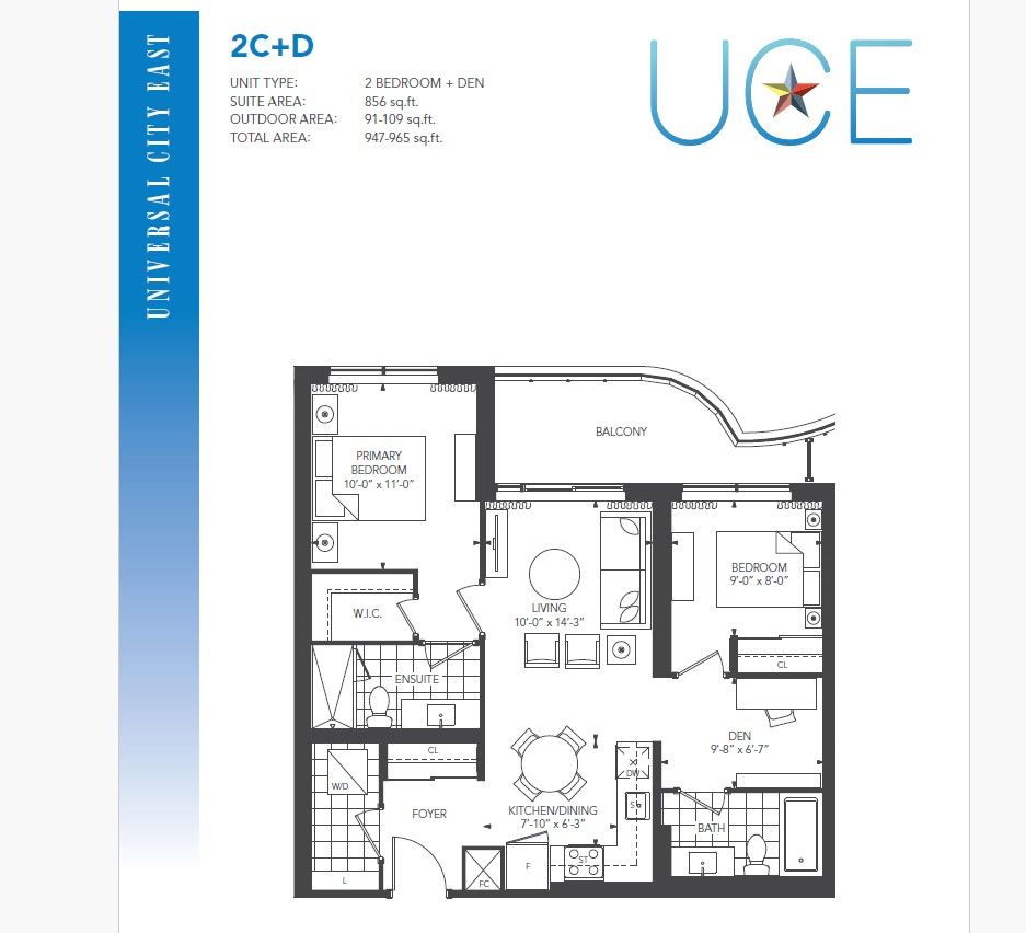 Welcome to this stunning brand-new 2+1 bedroom, 2 full-bath condo in the thriving universal city east community at 1010 sandy beach rd-offering modern design, exceptional amenities, and an unbeatable pickering location. Thoughtfully designed for comfort and functionality, this suite features an open-concept layout with smooth ceilings, wide windows, and abundant natural light that enhances every room. The spacious living and dining area flows seamlessly to a private balcony, perfect for morning coffee or relaxing evenings. The contemporary kitchen is appointed with sleek cabinetry, quartz countertops, stainless steel appliances, and elegant finishes ideal for everyday living or entertaining. The primary bedroom offers a peaceful retreat with a large closet and a stylish ensuite featuring a glass-enclosed shower. The second bedroom includes generous storage and natural light, while the den provides a flexible space-ideal for a home office or additional lounge area. Both bathrooms offer modern, hotel-inspired finishes for a spa-like experience. Enjoy the convenience of in-suite laundry, and one parking space. Residents have access to premium amenities including a 24/7 concierge, fitness centre, future outdoor pool, lounge spaces, and more. Located steps from the pickering go station, highway 401, waterfront trails, shops, and dining, this condo combines style, comfort, and connectivity in one of pickering's most vibrant communities. Bulk rogers internet included. Tenant pays hydro and water separately