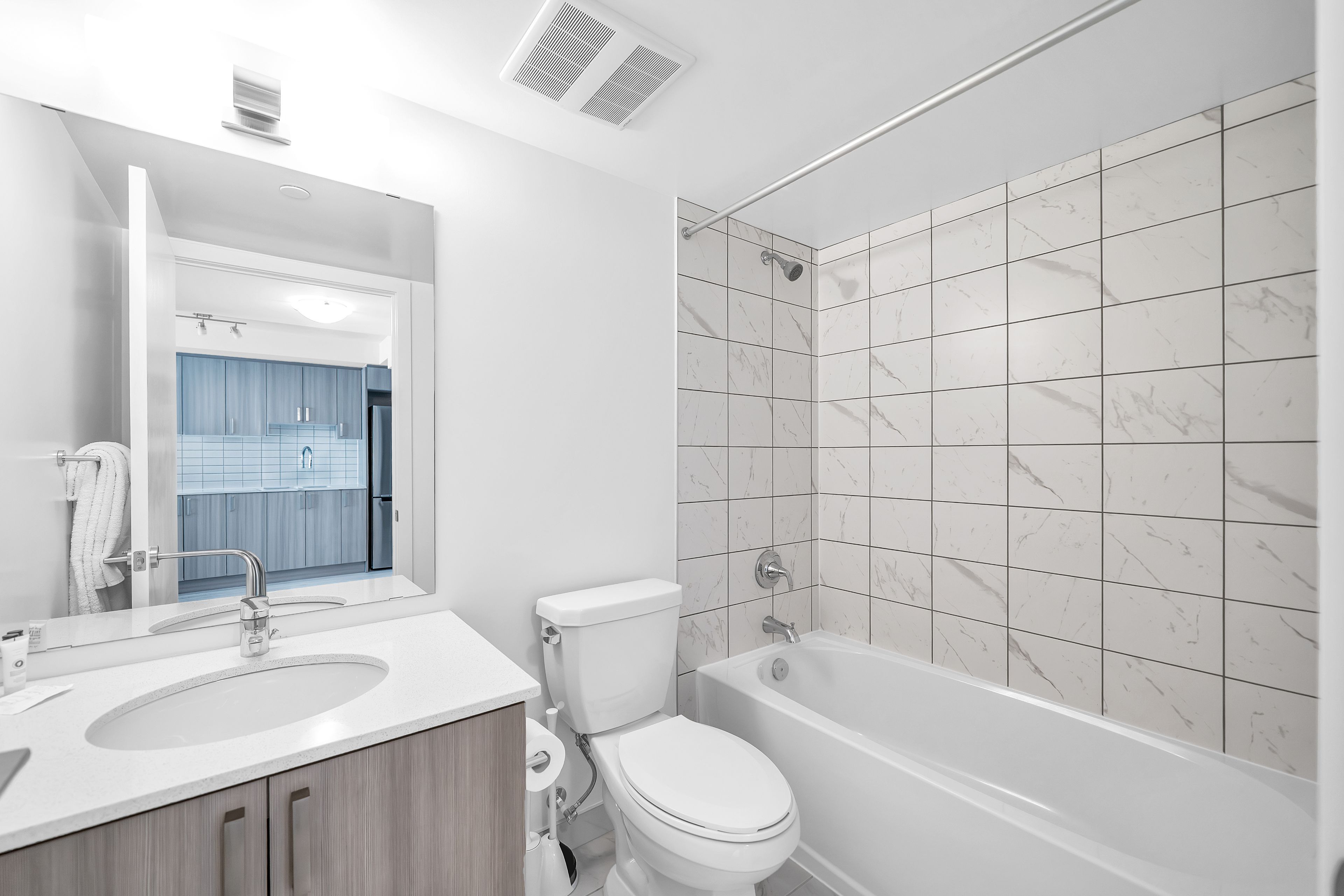 High-floor 1-bedroom with breathtaking lake views at universal city east. Bright open-concept suite with floor-to-ceiling windows, large private balcony, modern kitchen with stainless steel appliances and quartz counters, and in-suite laundry. Available furnished with optional housewares package and dedicated workspace (desk and chair) upon request. Premium building amenities include concierge, gym, outdoor pool, party room, guest suites and visitor parking. Walk to pickering go, frenchman's bay waterfront, shops and restaurants with quick access to hwy 401. Ideal for professionals seeking modern living with incredible views and convenient commuting. Immediate occupancy available. Flexible furnishing options offered. Landlord is a registered real estate salesperson/broker with reco.