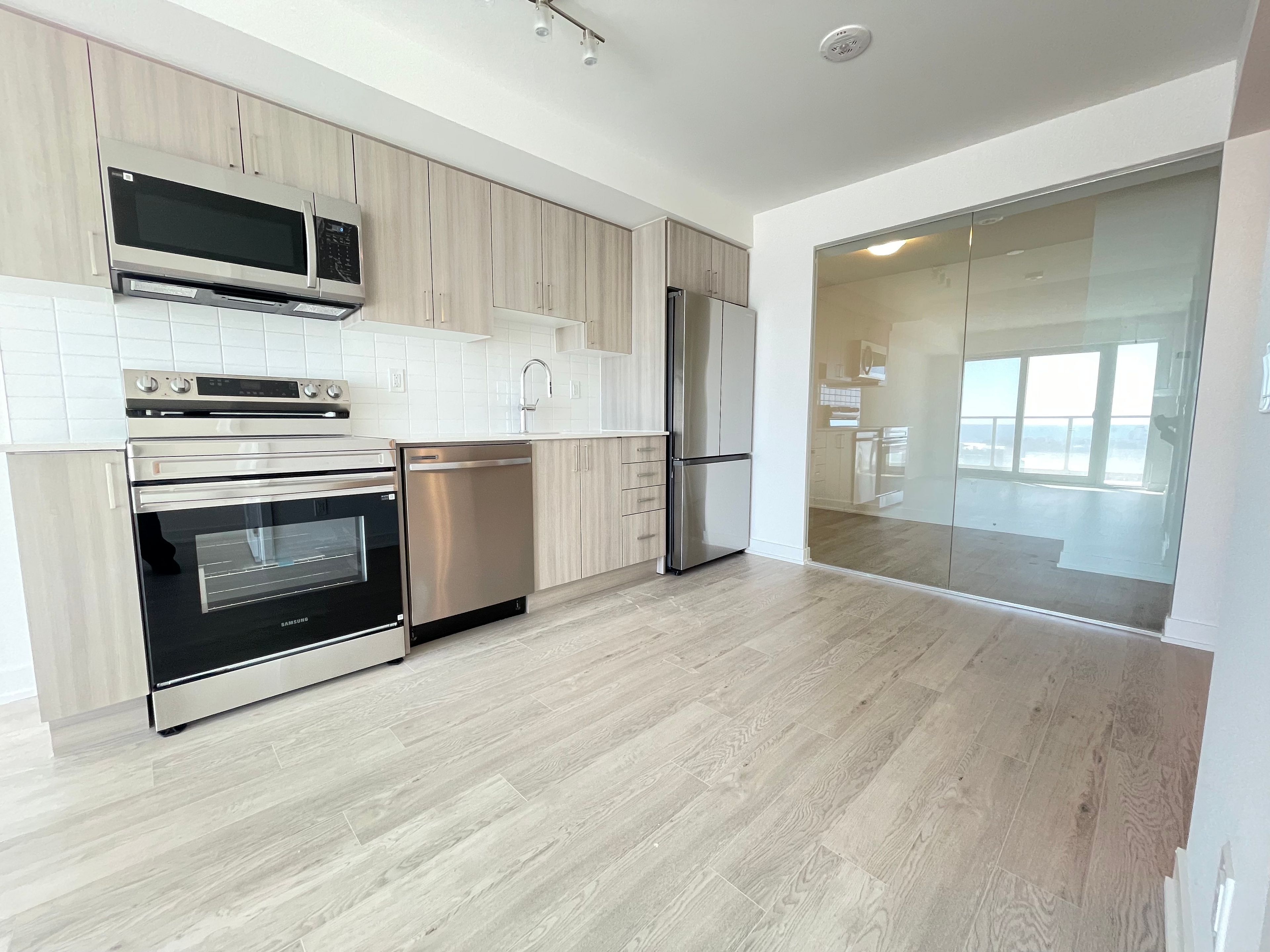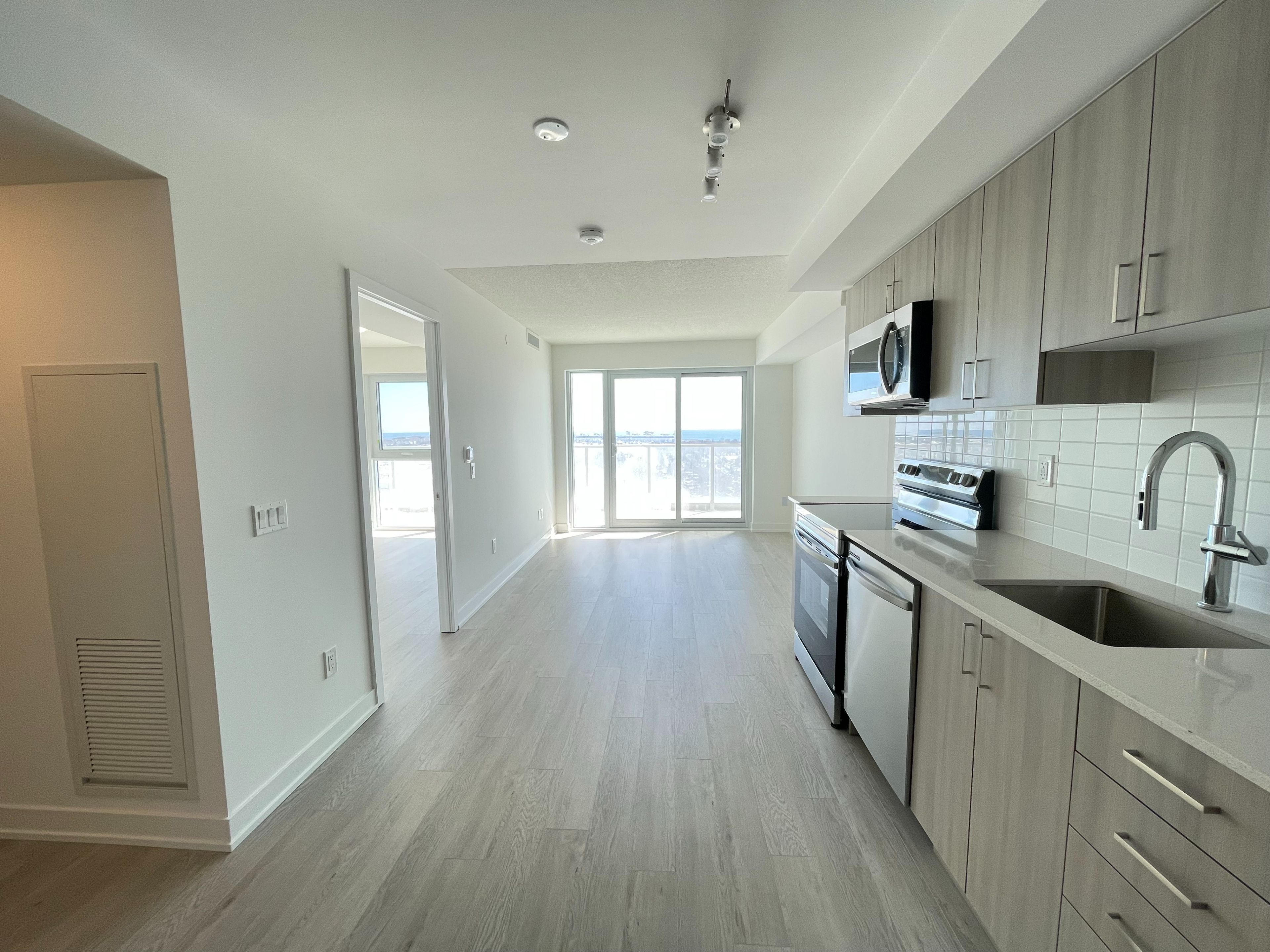 Welcome to refined urban living at universal city east. Ideally situated on the 23rd floor, this brand-new 2-bedroom residence offers 666 sq. Ft. Of beautifully appointed interior space, complemented by an 84 sq. Ft. Private balcony with breathtaking, unobstructed south-facing lakeviews. This exceptional suite also includes one parking space & one locker, offering added convenience& valuable storage. Designed with contemporary sophistication, the suite showcases a seamless open-concept layout &a stylish chef-inspired kitchen featuring quartz countertops, stainless steel appliances, andsleek modern cabinetry. Two fully enclosed bedrooms offer privacy & generous closet space,creating peaceful retreats elevated above the city. Residents enjoy an impressive collection of resort-calibre amenities, including 24-hourconcierge service, a state-of-the-art fitness centre, dedicated spin and yoga studios, a chicco-working lounge with private zoom rooms, a golf simulator, and an exceptional 5th-flooroutdoor oasis complete with pool, sauna, and expansive entertainment terrace with bbqs. Aunique content creation studio further enhances this vibrant community. Perfectly located just steps from pickering go station-approximately 28 minutes to union station-with easy access to hwy 401, pickering town centre, fine dining, and the scenicwaterfront.