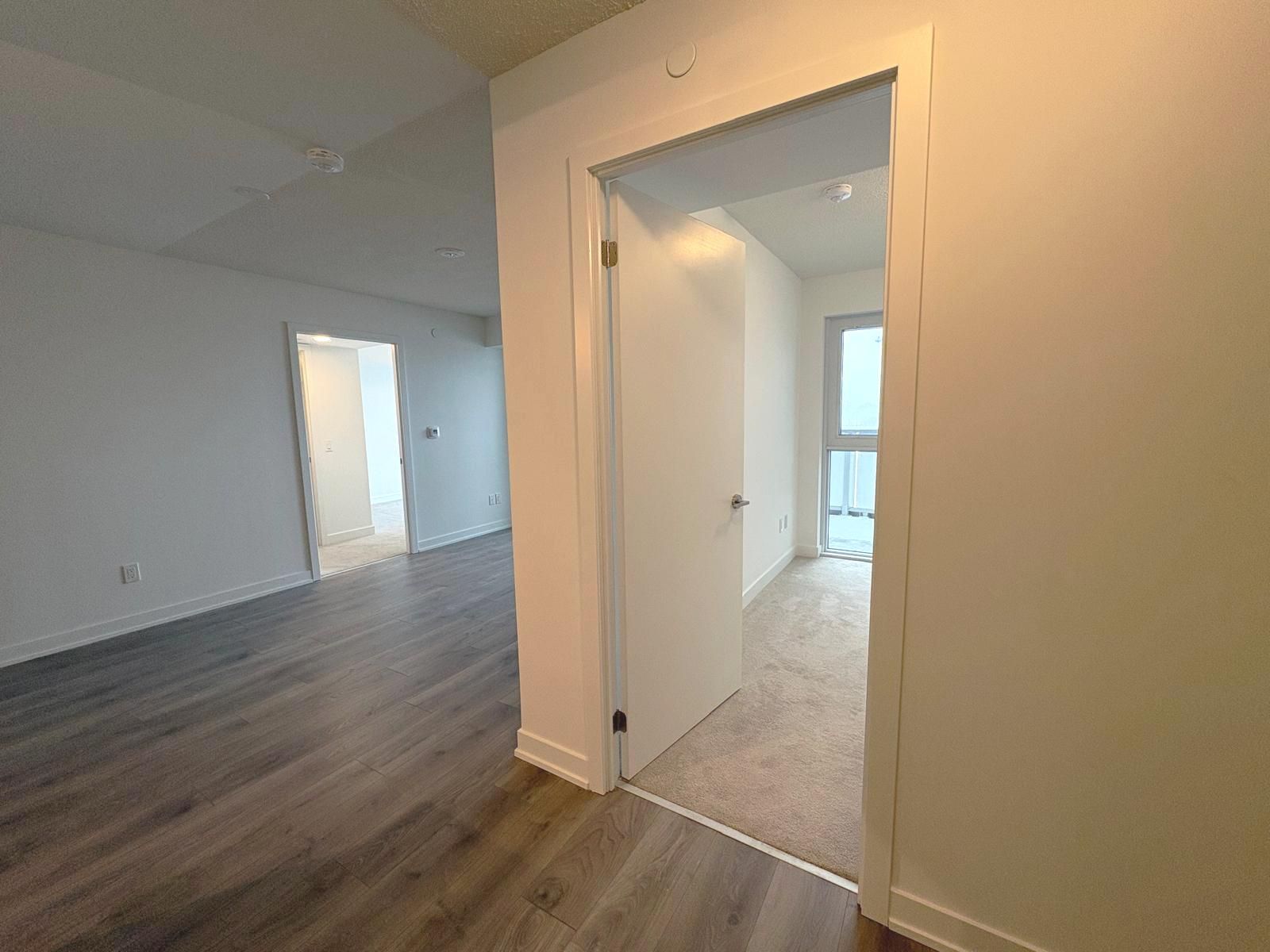 Welcome to universal city six condos a modern waterfront-inspired community offering style, comfort, and convenience. This bright and thoughtfully designed unit 415 features a functional open-concept layout with contemporary finishes, large windows, and a large private balcony perfect for relaxing or entertaining, overlooking the 401. This 868 sq ft suite sports two full bedrooms, a true den (not a small workstation nook), two bathrooms plus a deep, oversized balcony (268 sq. Ft) that accounts for a large portion of the total square footage. Together, this makes this suite a spacious layout. Residents enjoy access to premium building amenities including a fully equipped fitness centre, pool, party room, lounge areas, and 24-hour concierge for added comfort and security. The building offers a clean, upscale atmosphere with beautifully designed common spaces that reflect modern urban living. Ideally located just minutes from pickering go station, hwy 401, pickering town centre, restaurants, parks, the waterfront trails and a 6 mins drive to frenchman's bay marina. This location provides effortless commuting while keeping nature and lifestyle conveniences at your doorstep. Perfect for professionals or small families seeking a vibrant yet peaceful setting, this unit offers the best of both worlds city convenience and lakeside surroundings. A fantastic opportunity to live in one of pickering's most desirable new developments.