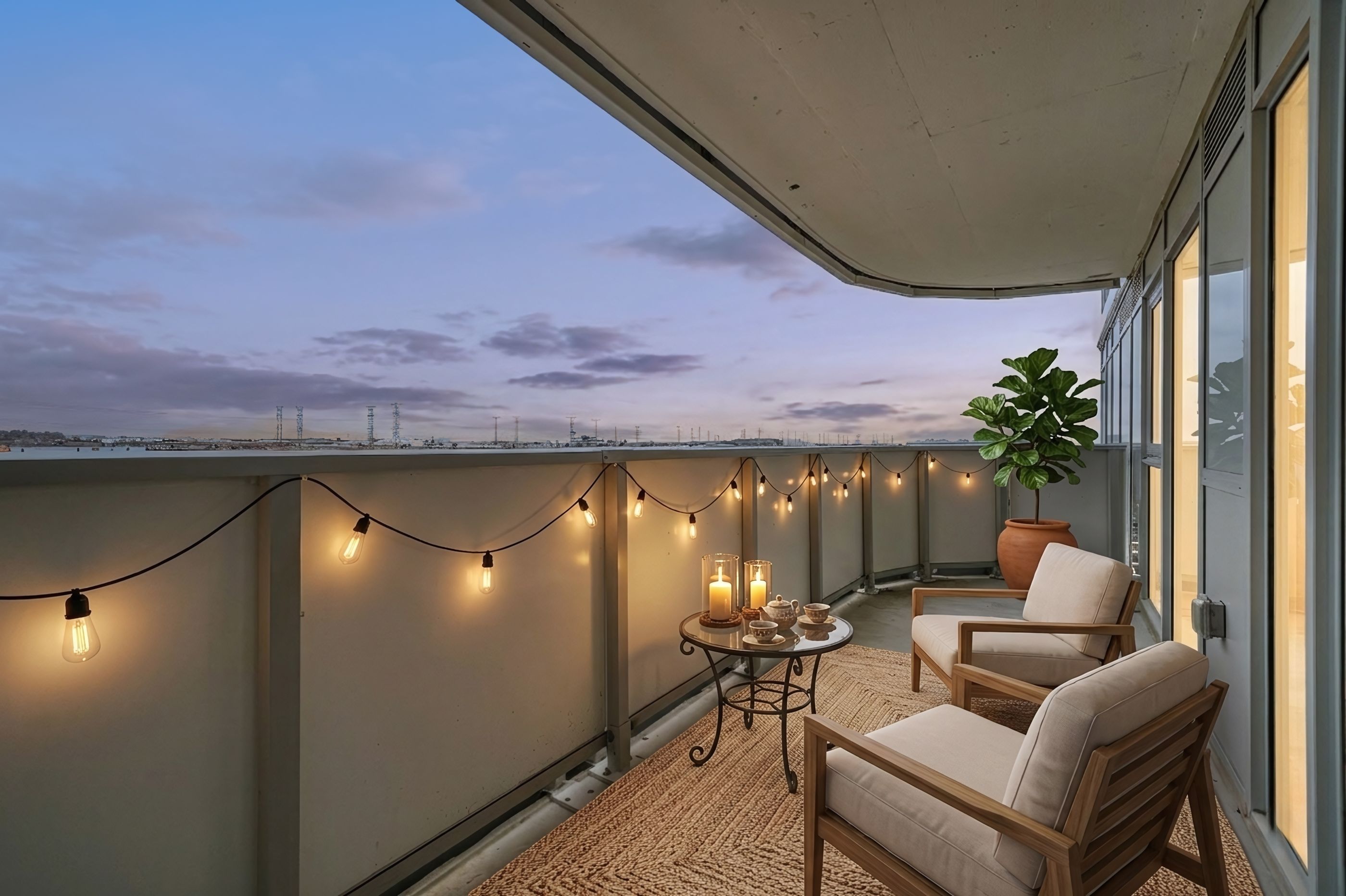 • Access to a gym, outdoor pool, and multiple patios for relaxation.