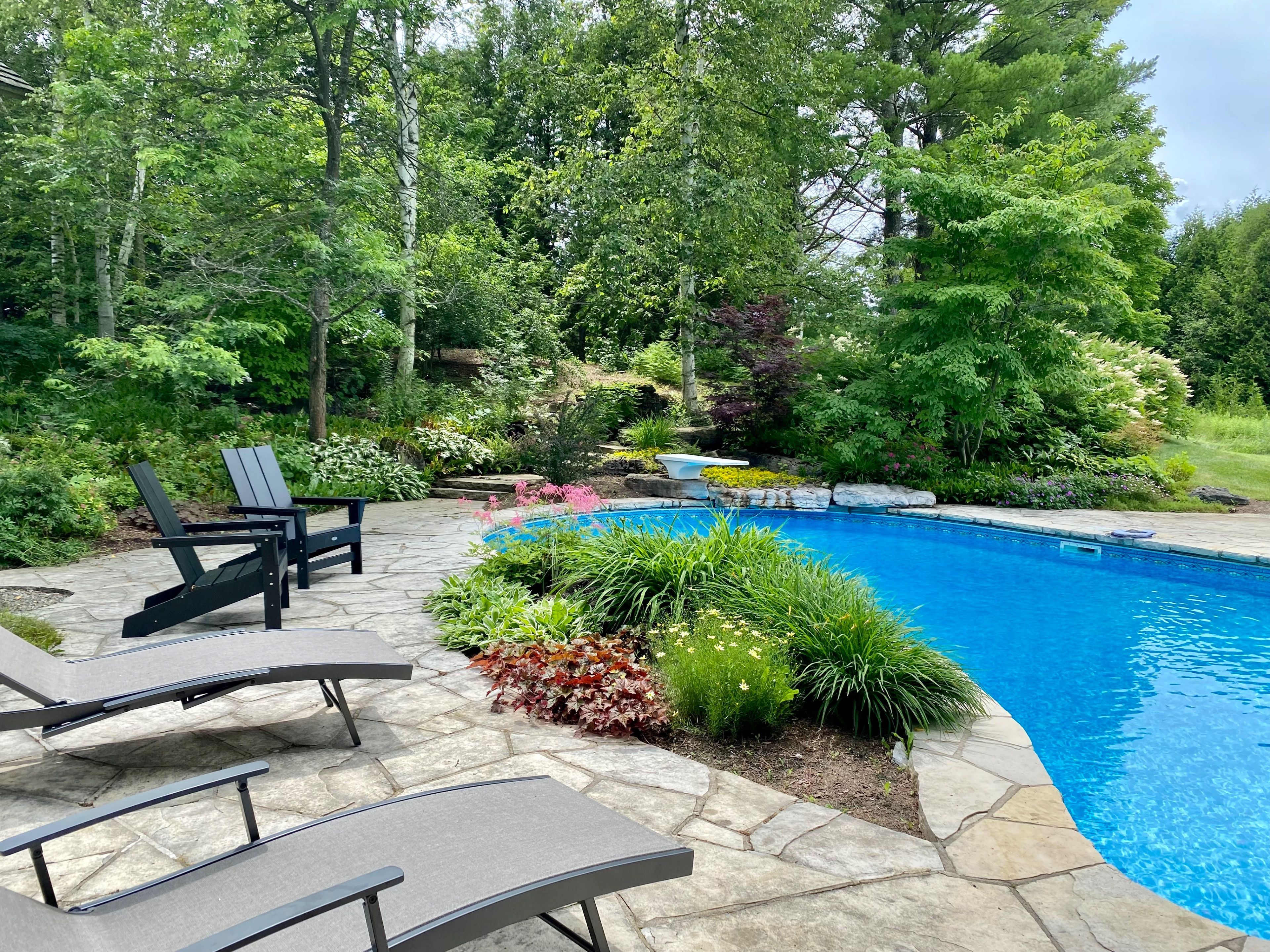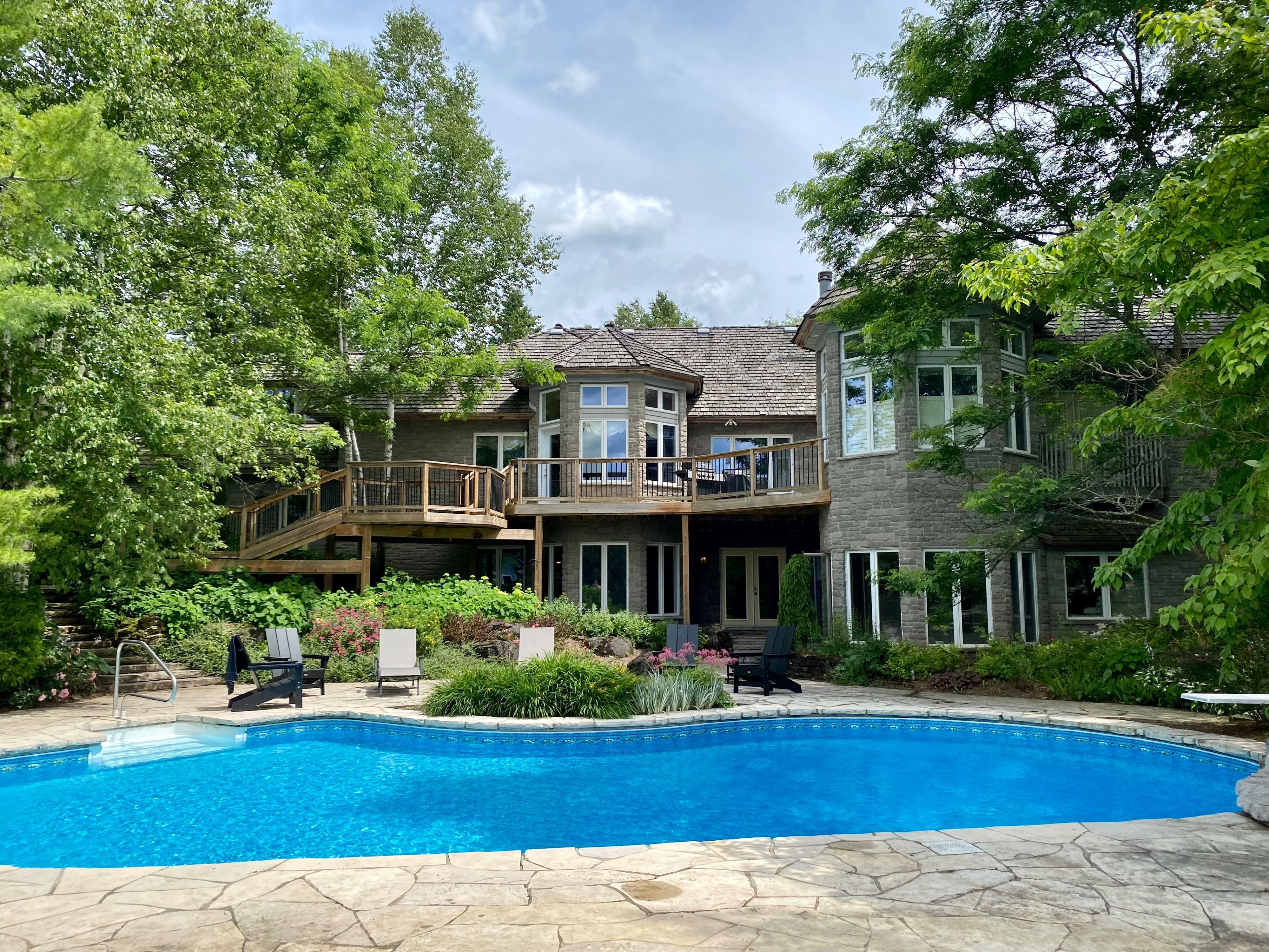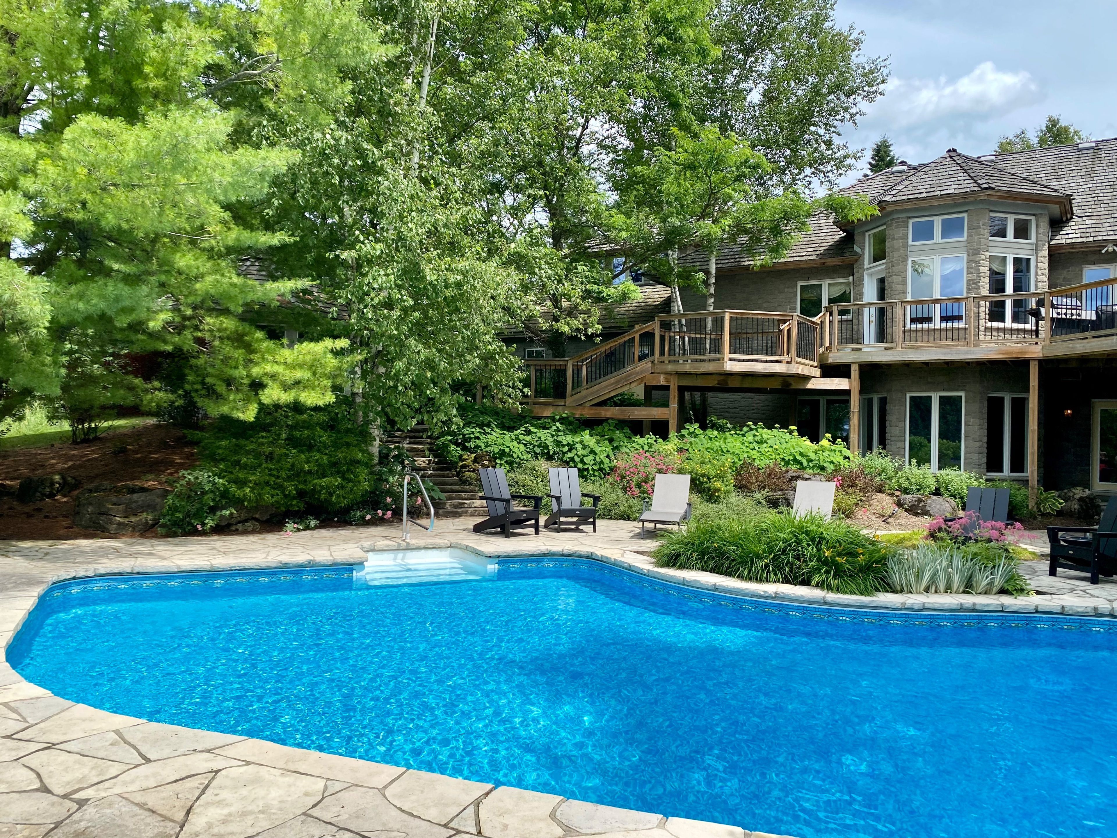 • Expansive deck with a landscaped pool, perfect for relaxing.