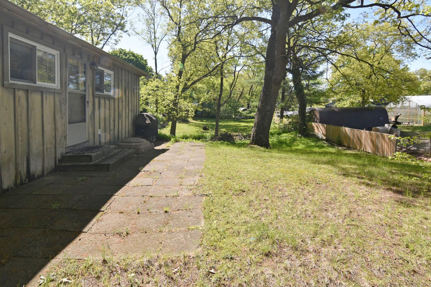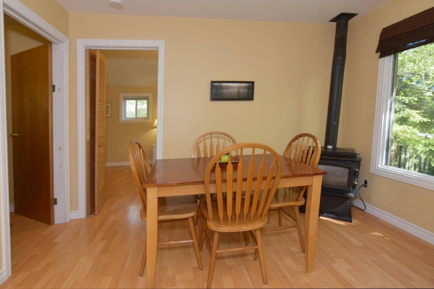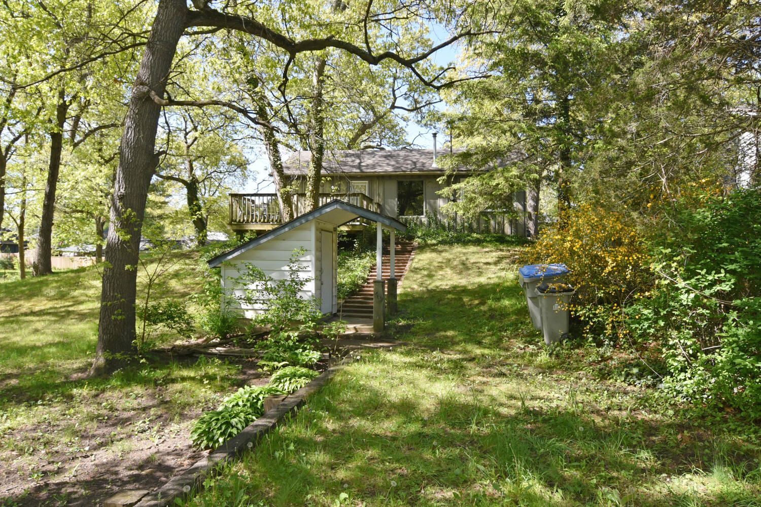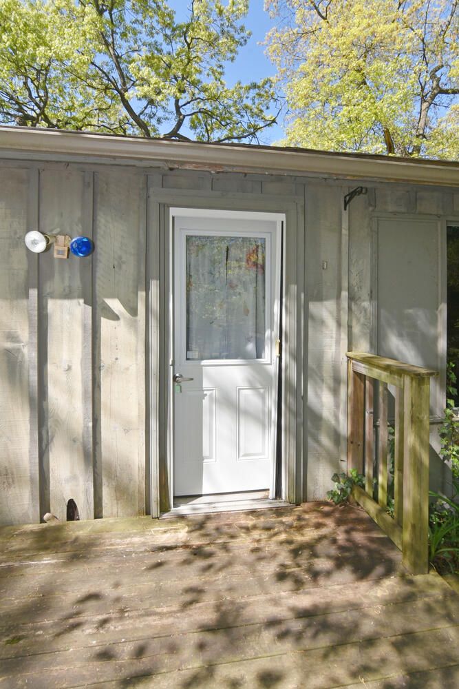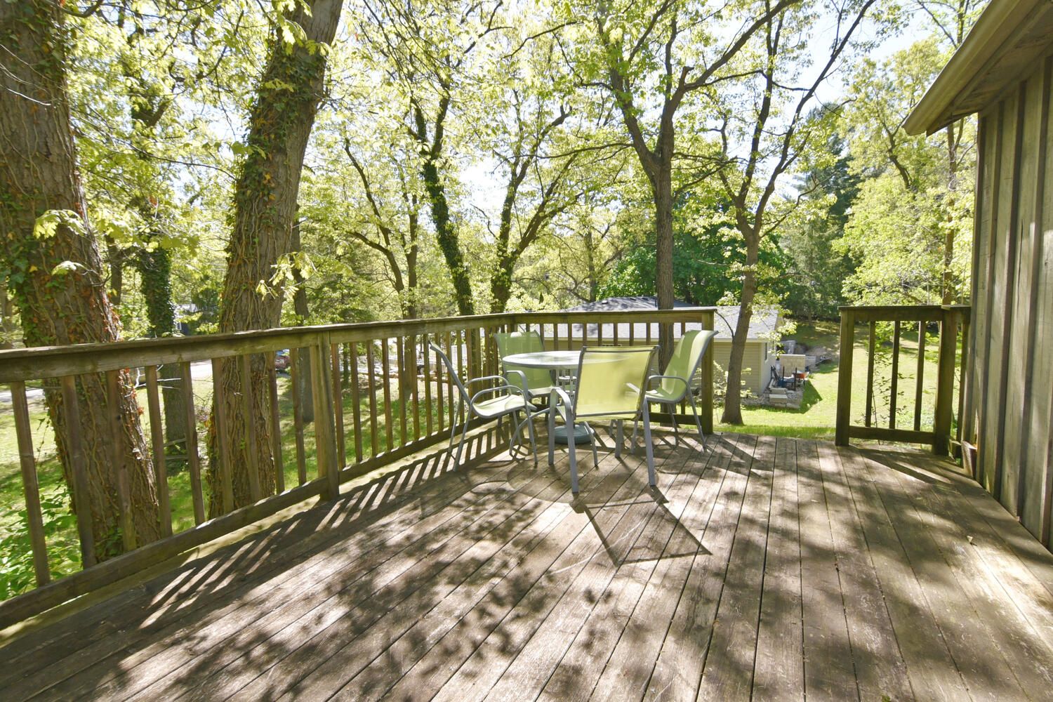 • Front deck surrounded by trees, perfect for entertaining outdoors.