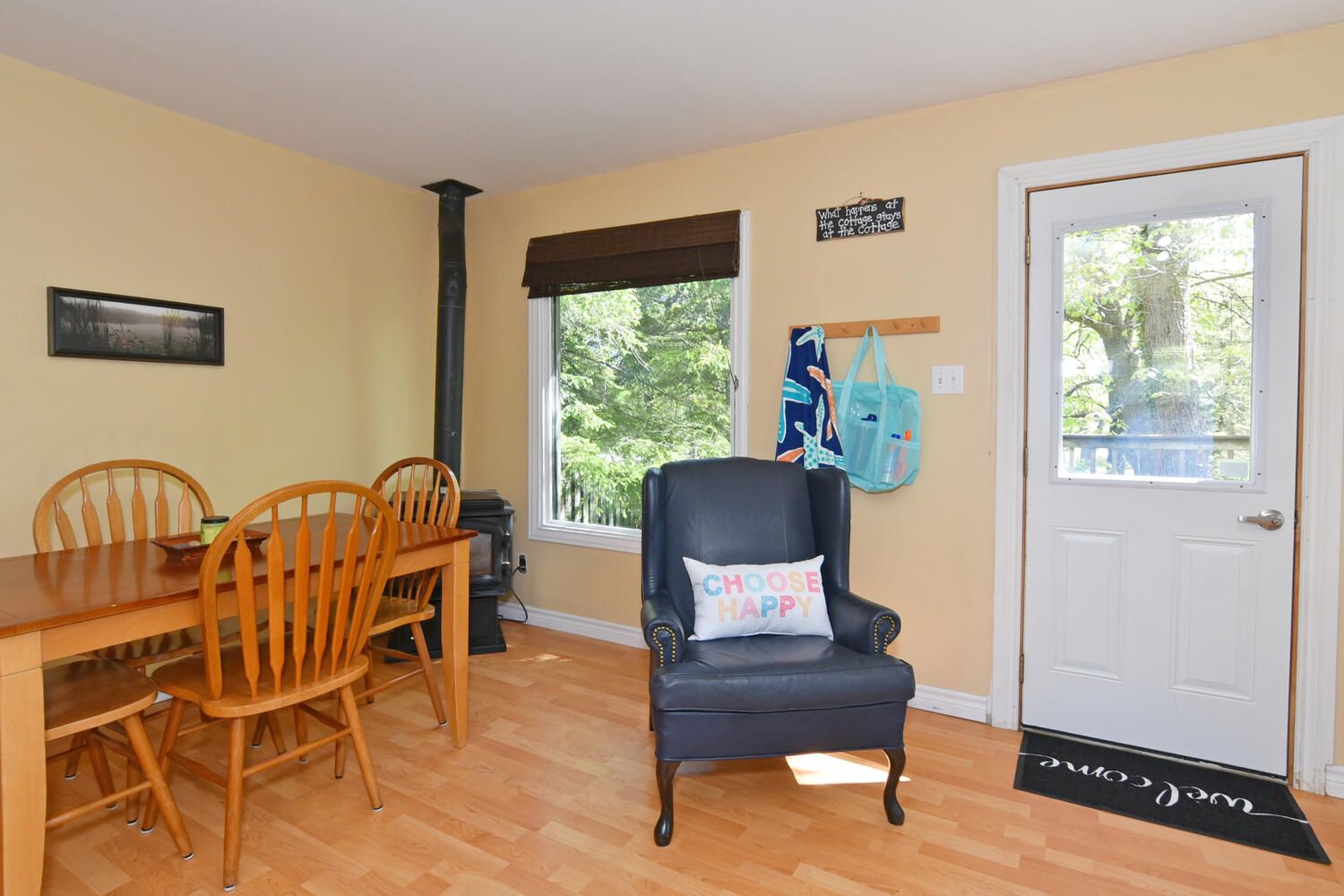 Cozy 2 bedroom cottage in port franks. Open-concept kitchen, dining and living area with a gas fireplace. White wooden cabinets in the kitchen. Laminate & linoleum floors throughout. Lots of windows allow an abundance of natural light. Bright primary bedroom with large window and walk-in closet. Decent sized 2nd bedroom with window and closet. Bathroom with shower. Front deck surrounded by large trees is great for entertaining. Shed out back. Deed for docking included. Close to river, walking trails, marinas, golf, restaurants and the beach!