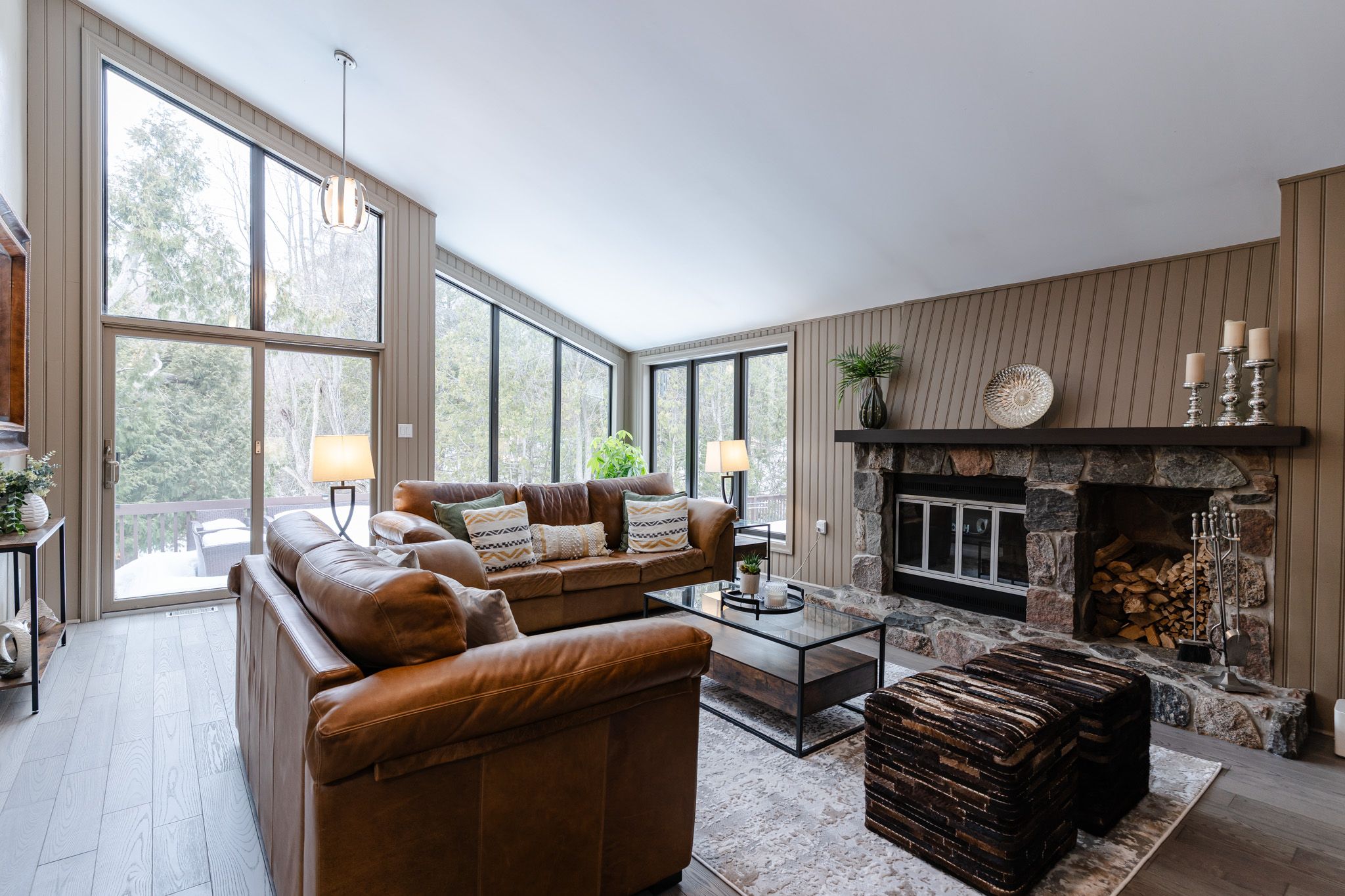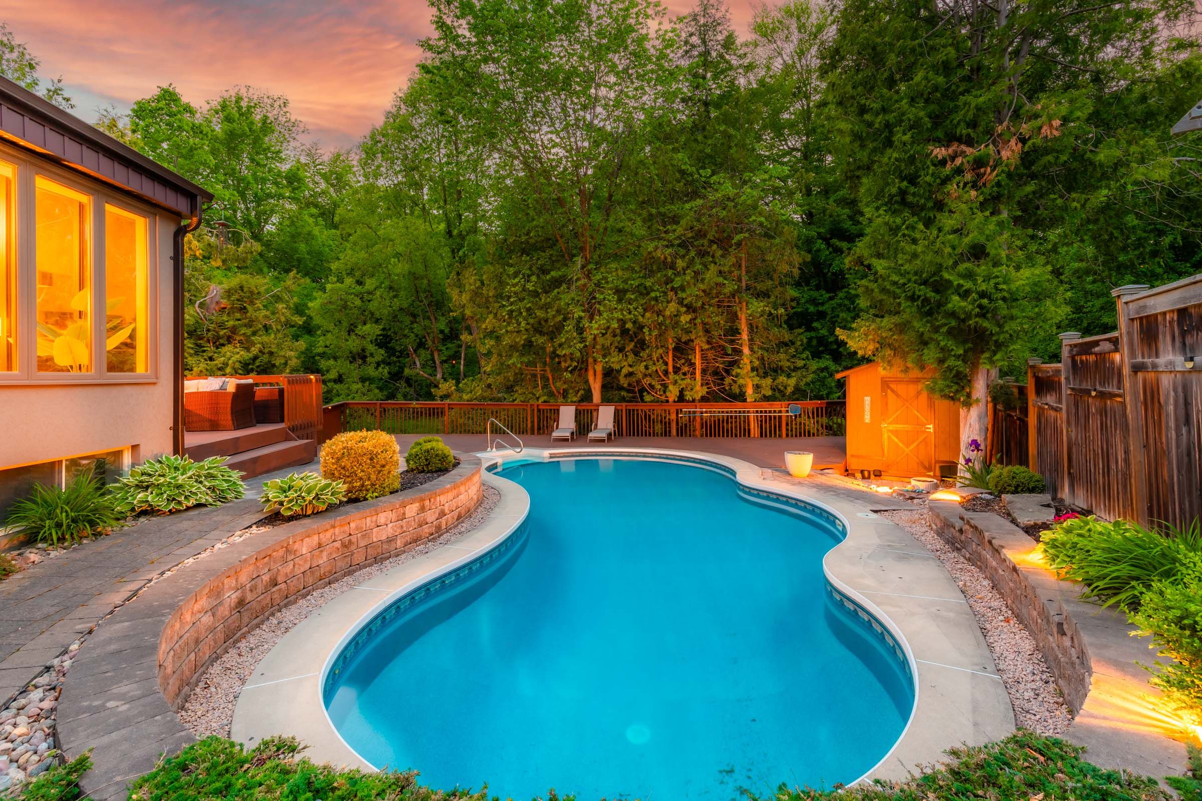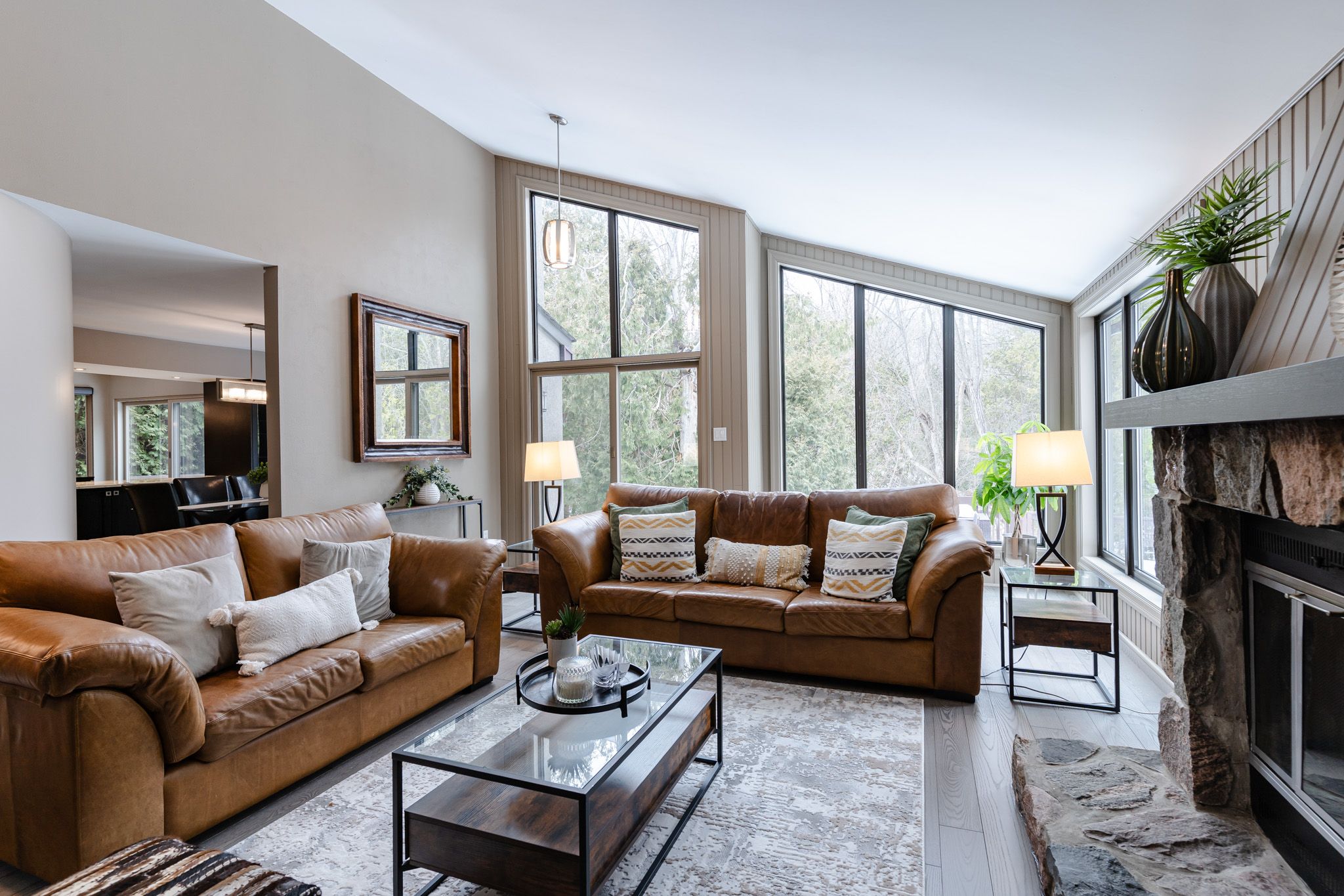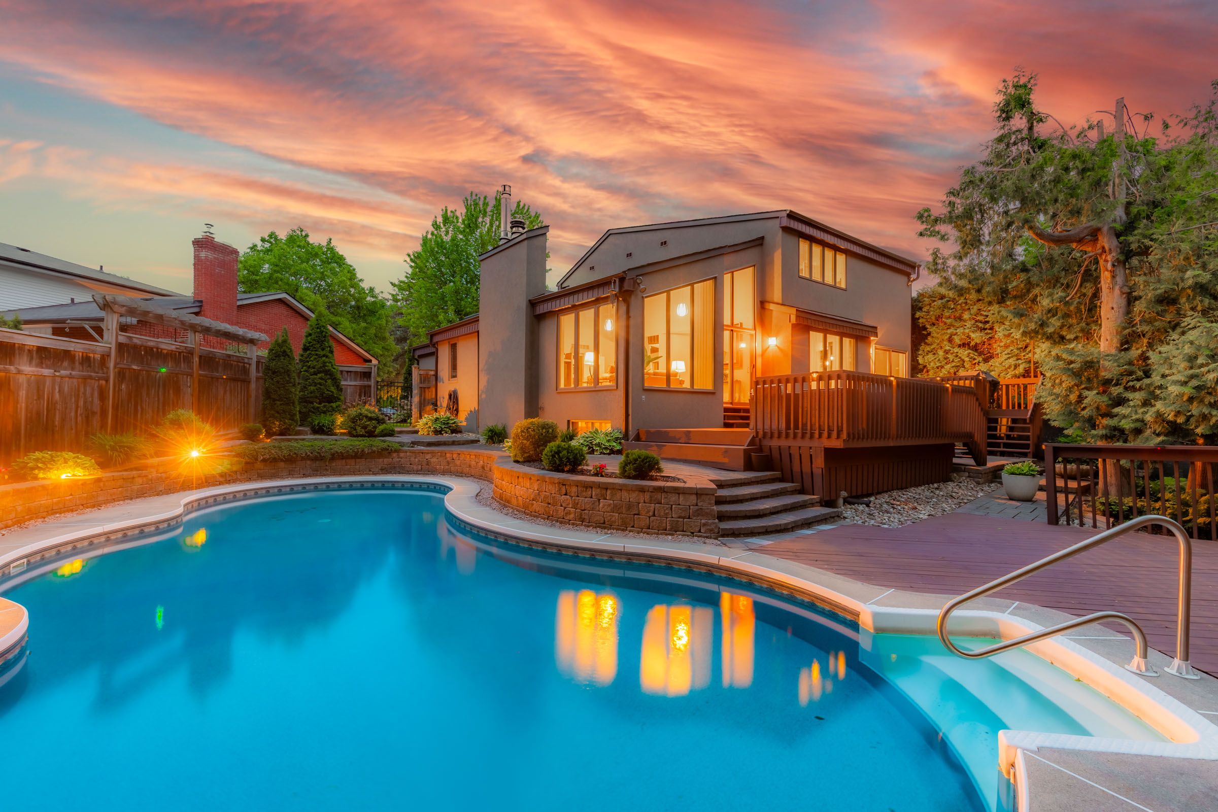 Tucked away on a quiet court, this one-of-a-kind executive residence offers the perfect blend of modern chalet-style living with privacy and sophistication. Designed with both elegance and comfort in mind, the home features soaring ceilings and rich finishes creating a warm inviting atmosphere throughout. Floor-to-ceiling windows bathe the home in natural light while offering breathtaking views of the private backyard oasis. Step outside to your own resort-style retreat, complete with a heated in-ground pool, hot tub, and expansive lounging areas - perfect for relaxing or entertaining. Most of the main floor showcases stunning ash hardwood flooring, which beautifully complements the chef-inspired kitchen, complete with two expansive granite peninsulas and a stunning family room with vaulted ceilings and a stone fireplace - perfect for entertaining family and friends. The main-floor primary suite is a luxurious retreat, featuring a spa-like 5-piece ensuite and a spacious walk-in closet. Upstairs, you'll find three spacious bedrooms with walk-in closets and another 5-piece bathroom. The beautifully finished lower level expands the home's living space with a generous recreation area complete with a wet bar and cozy gas fireplace. This level also features a large guest bedroom with semi-ensuite access, along with two additional flexible rooms ideal for bedrooms, a home office, or a private fitness studio. Located in a premium oshawa neighbourhood, this exceptional home is just five minutes from highway 401 and highway 407. For those who travel, the nearby oshawa executive airport provides convenient access for private planes, charters, and corporate flights.