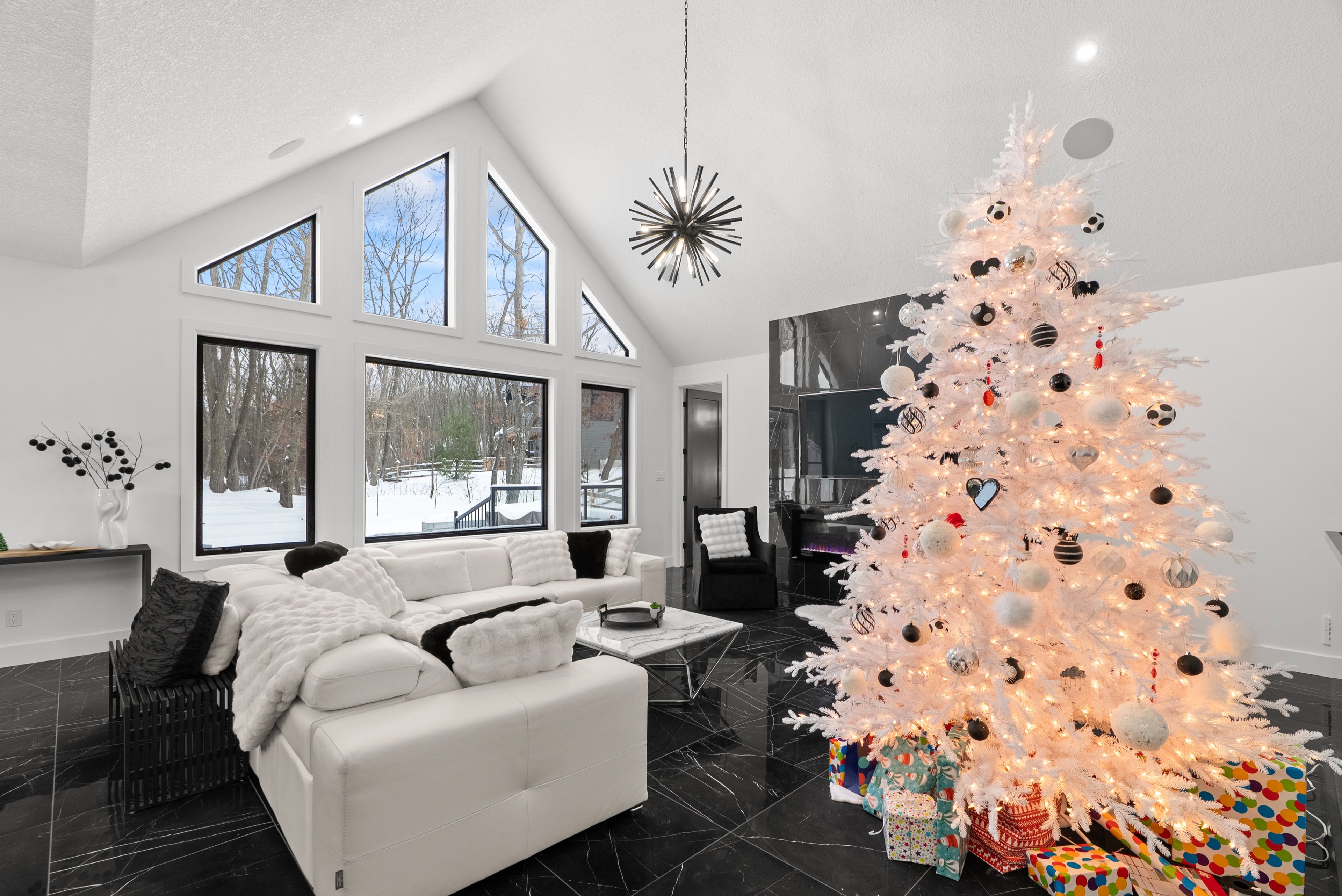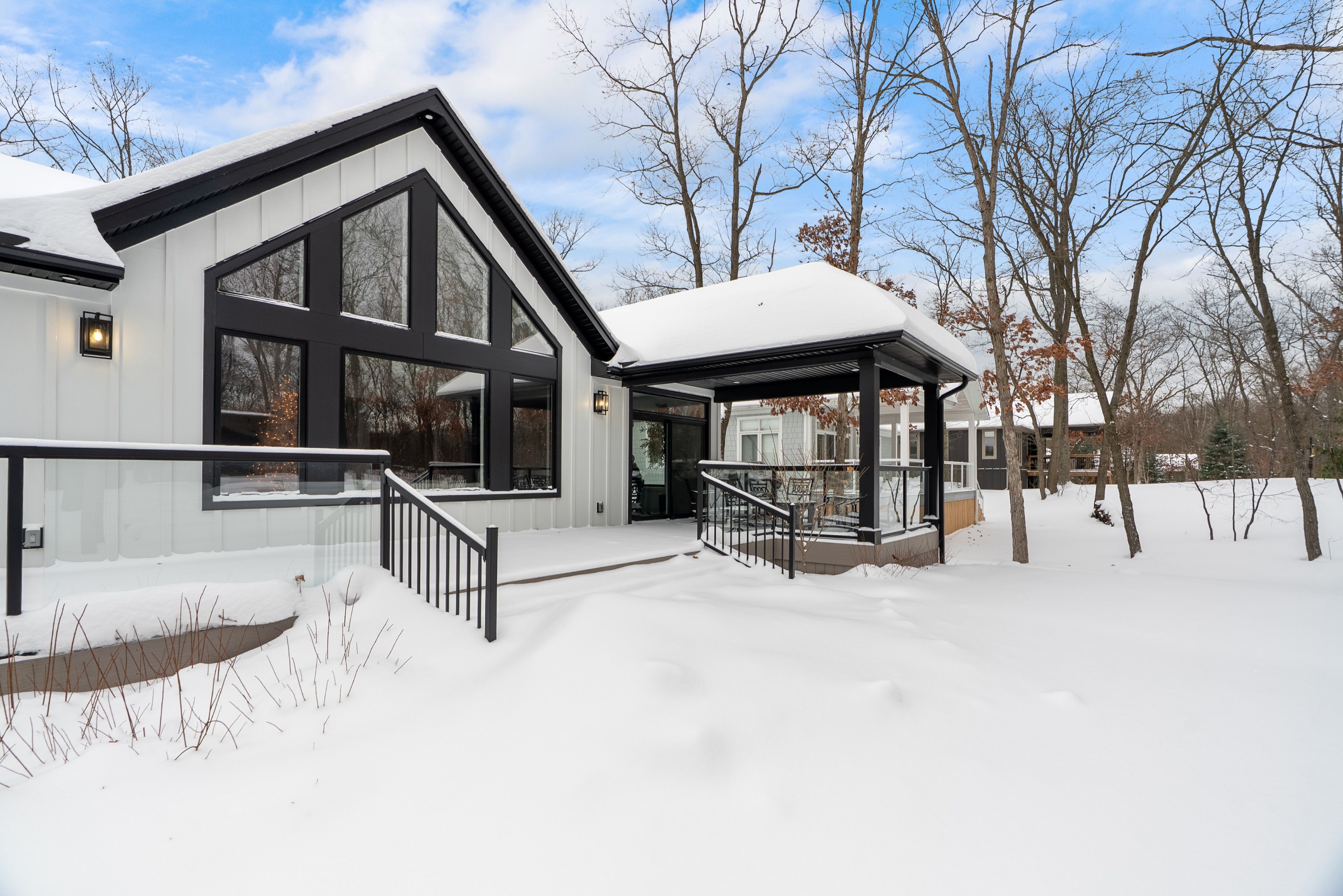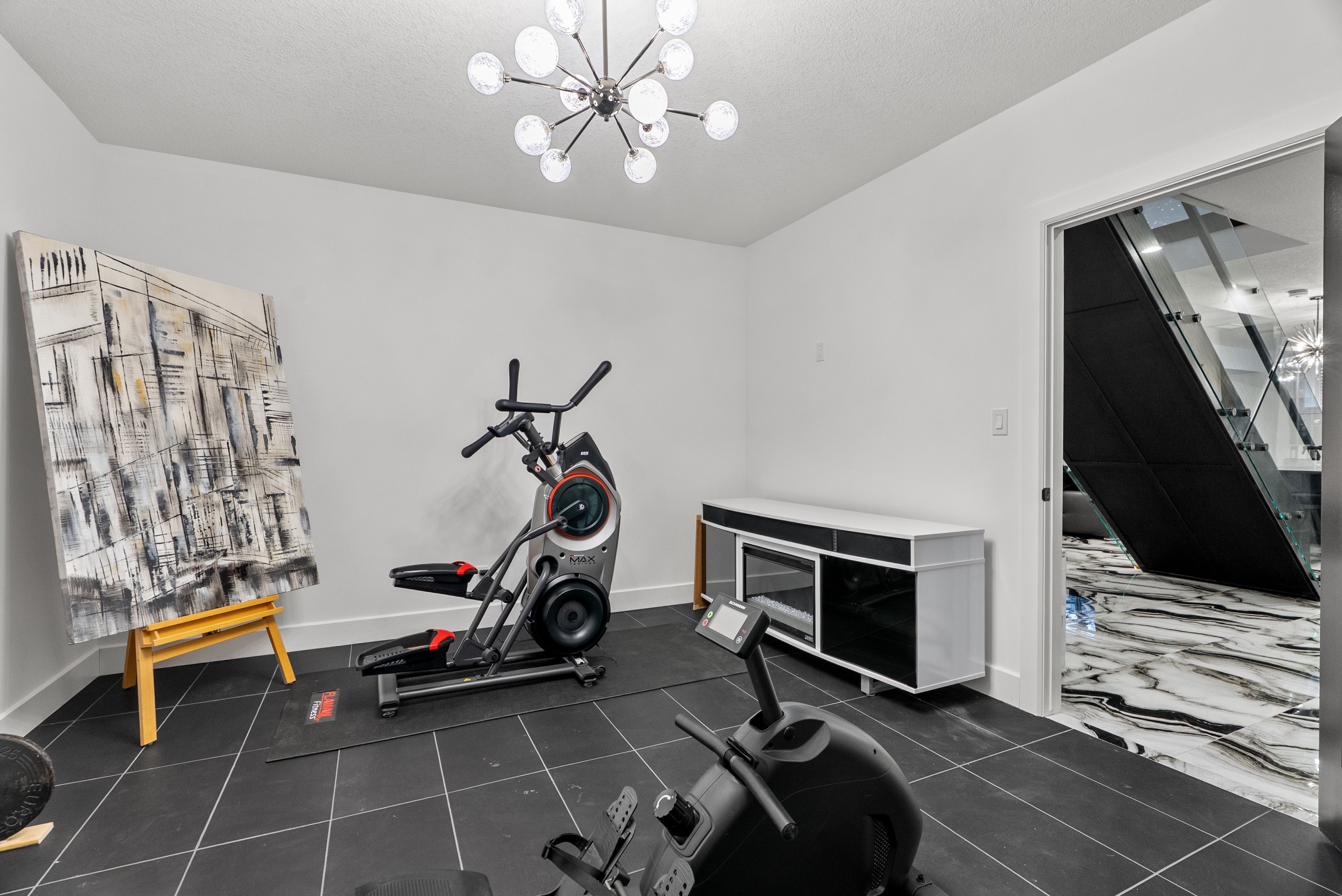 • Lower level offers finished rooms for guests, workouts, or entertainment.