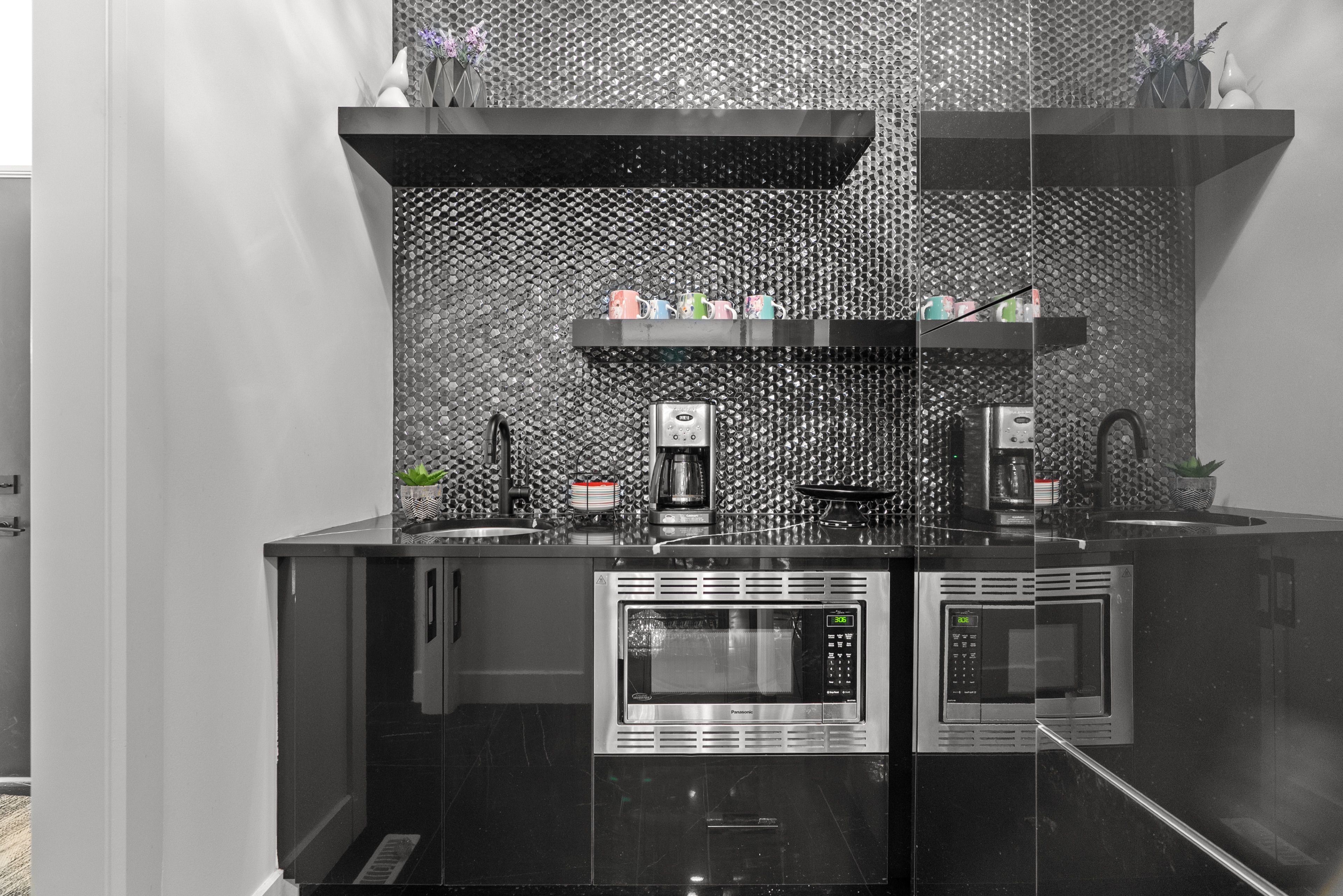 • Modern conveniences include high-end appliances and butler's pantry/bar.