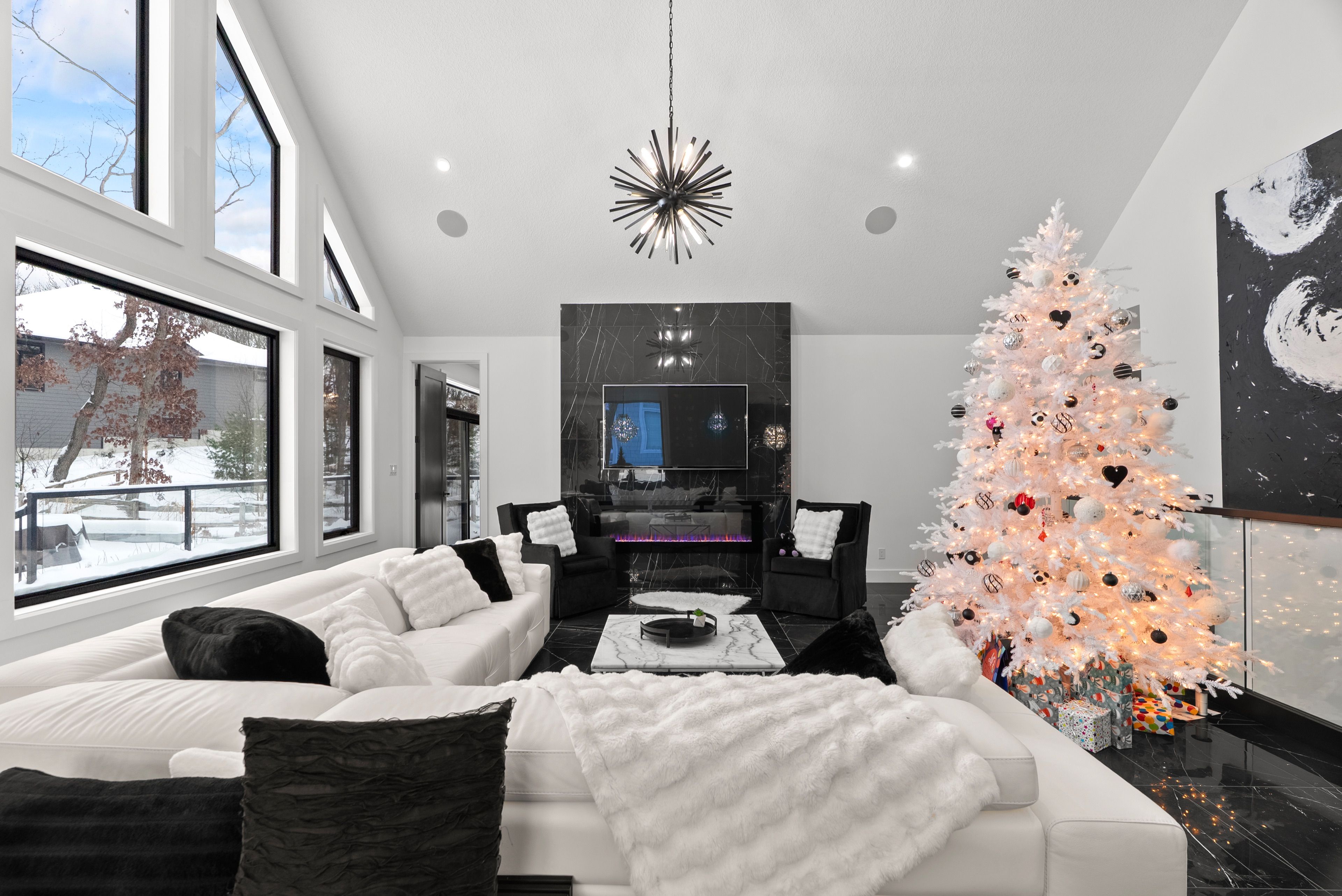 Live the dream in this custom built 3000+ sq ft. Stylized bungalow nestled nicely on a gorgeously designed street, you'll find plenty of space inside and outside the home to enjoy. Professionally landscaped from front to back, with serenely large, relaxing patios, you can entertain in comfort outside or simply enjoy the peace and quiet that this expansive property offers. All of your necessities are catered to inside of course, with all of the most modern conveniences that you would want in a 4 bedroom home including its high end appliances, the butlers pantry/bar, open concept living room, 100 inch and 72 inch fireplaces and private dining room. Cleaning is made easy with the porcelain tile found throughout and modern touches adorn every living space. There's also plenty of storage and room for 3 cars in the garage. Many finished rooms to be found off the lower level recroom which have been designed to match the decor of the entire home to entertain, work out, or have guests stay while keeping their privacy. There are many impressive touches here including in floor heating, media installations and demarcation. For a list of its treasures, please reach out to the listing agent.