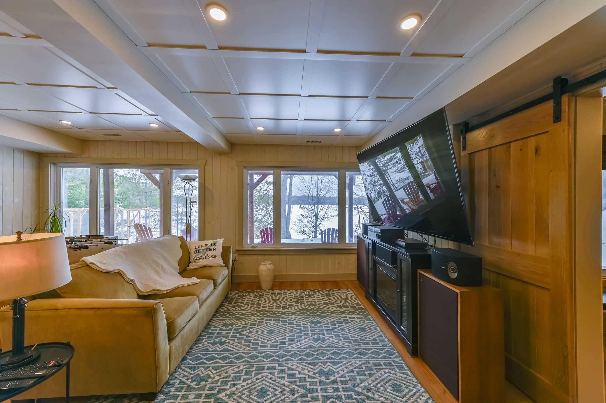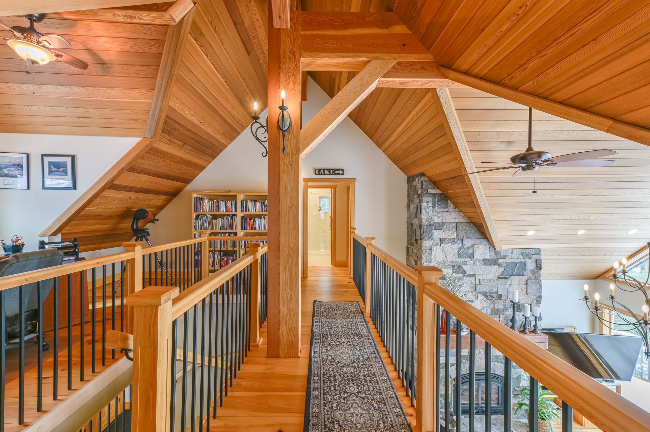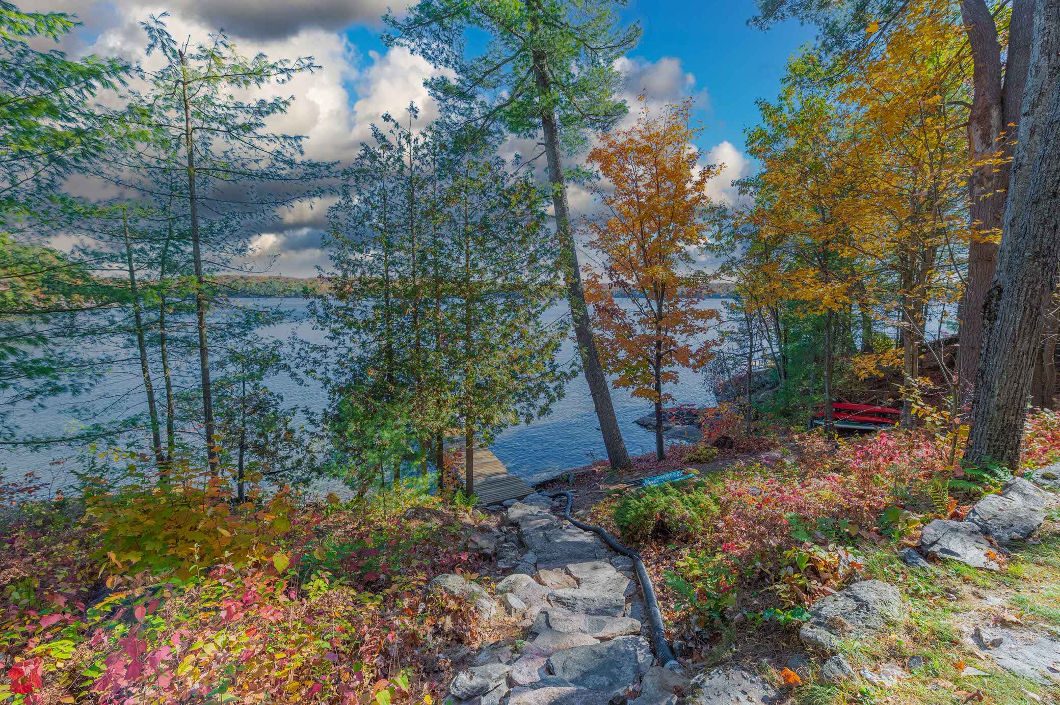 Experience the tranquility of a custom-built cottage retreat, nestled among mature trees for ultimate privacy. Wake up to breathtaking eastern sunrises over gull lake; with 110' of pristine shoreline and 0. 98 acres of open space leading to the shimmering water. Inside, enjoy elegant bc spruce timber, clear western red wood ceilings, eastern white pine wide plank floors, soaring 24' cathedral ceiling, custom 16' random dry stack muskoka stone fireplace, a gourmet kitchen with quartz island, wolf stove, and custom baltic birch cabinetry-perfect for hosting family and friends. Primary bedroom with a walk out to the deck. Spa style ensuite with heated slate floors, feature stone wall, soaker claw foot tub. The four-season sunroom, dining area and main floor living offer comfort in every season. The lower level offers a custom built wine cellar, spacious family room, gym, three piece bathroom with laundry hook up and the foyer leads to the lake side yard and steps to gull lake. The upper level showcases the post and beam douglas fir along with the finishings and lake view from the den. Three more bedrooms, one with a loft and a three piece bathroom. This home or cottage combines timeless elegance with modern convenience. Newer windows frame stunning lake views, inviting you to relax and unwind in your private lakeside haven. The generous lakeside cedar deck invites dining, lounging and entry to various parts of the home. This shallow bay on gull lake offers family friendly entry into the lake, 7' depth off the 16' x 20' dock, rock shelf shoreline and a storage rack in the bay. The fire pit includes an african fire pot and custom-made benches for gathering around. 30' x 30' heated 2 1/2 car garage is plumbed for a workshop. Full house generator for peace of mind. This exclusive custom build was constructed with quality finishings, quality details and for relaxation and enjoyment.