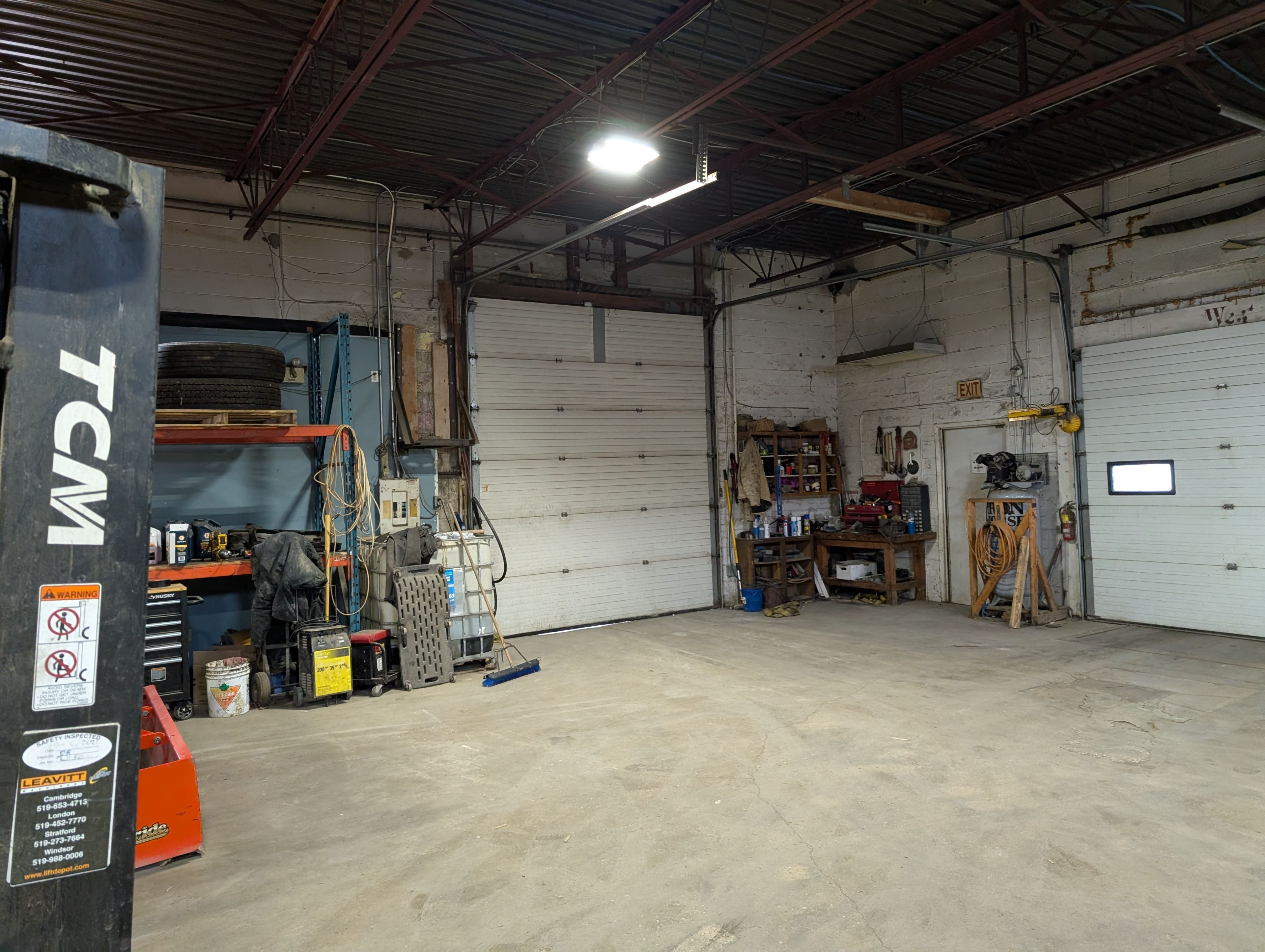 • Warehouse area includes two loading docks and one drive-in door.
