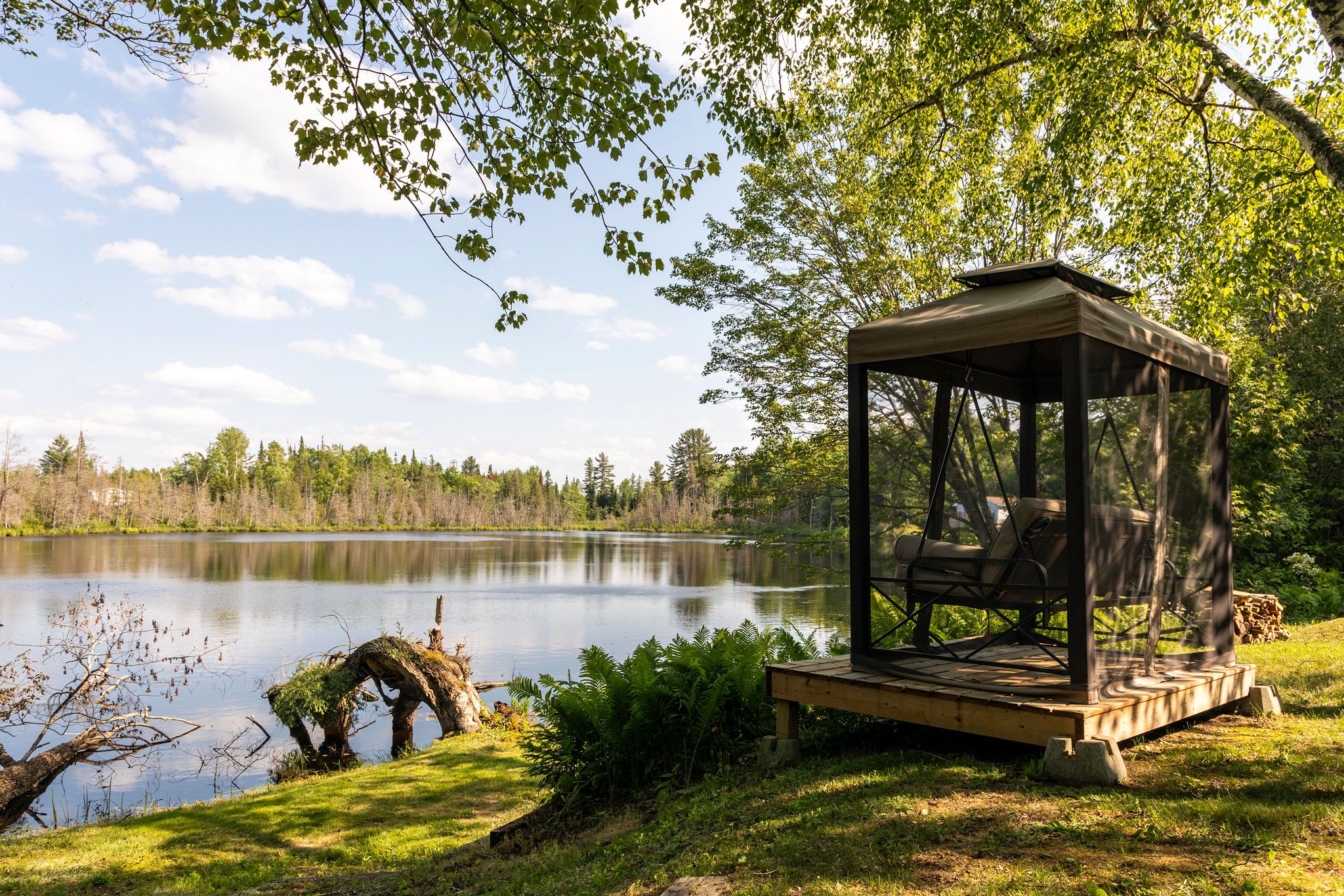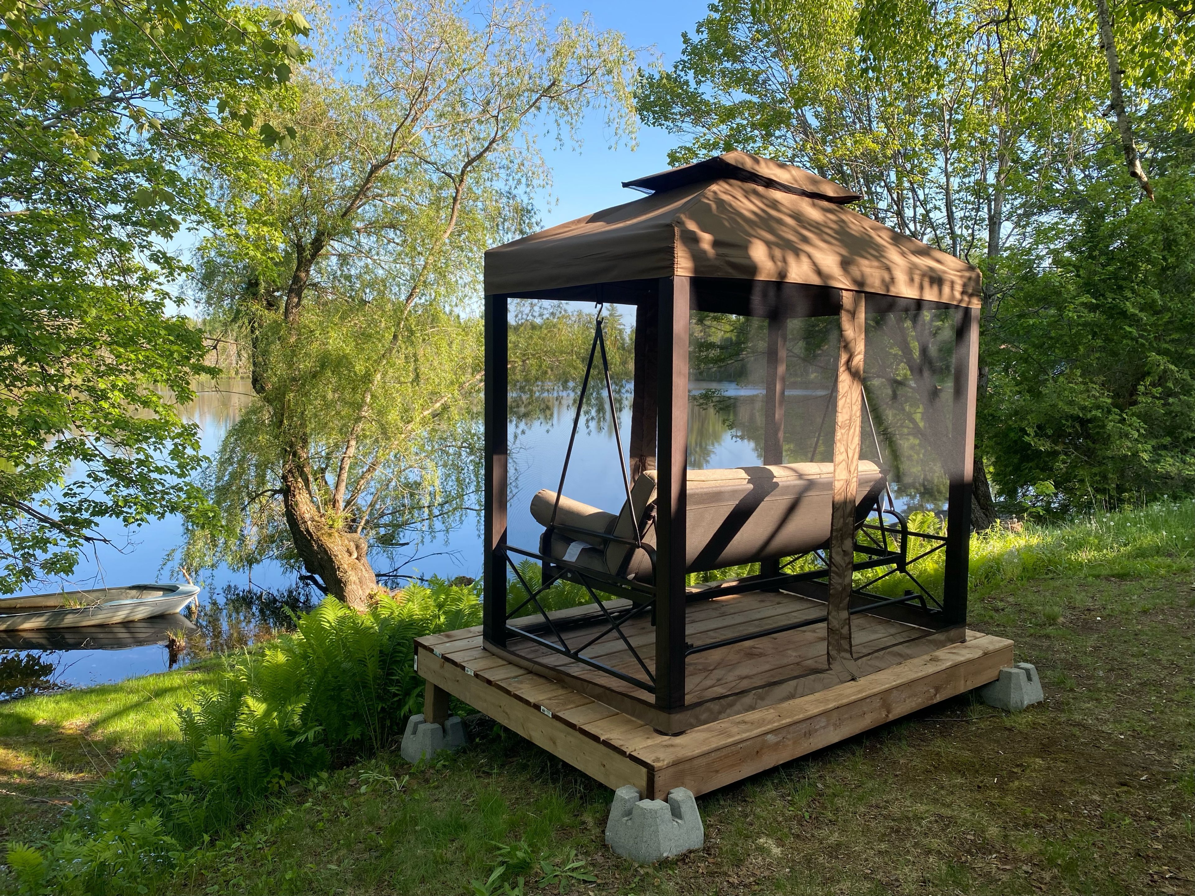 • Enjoy relaxing by the hot tub or around the fire pit by the water.