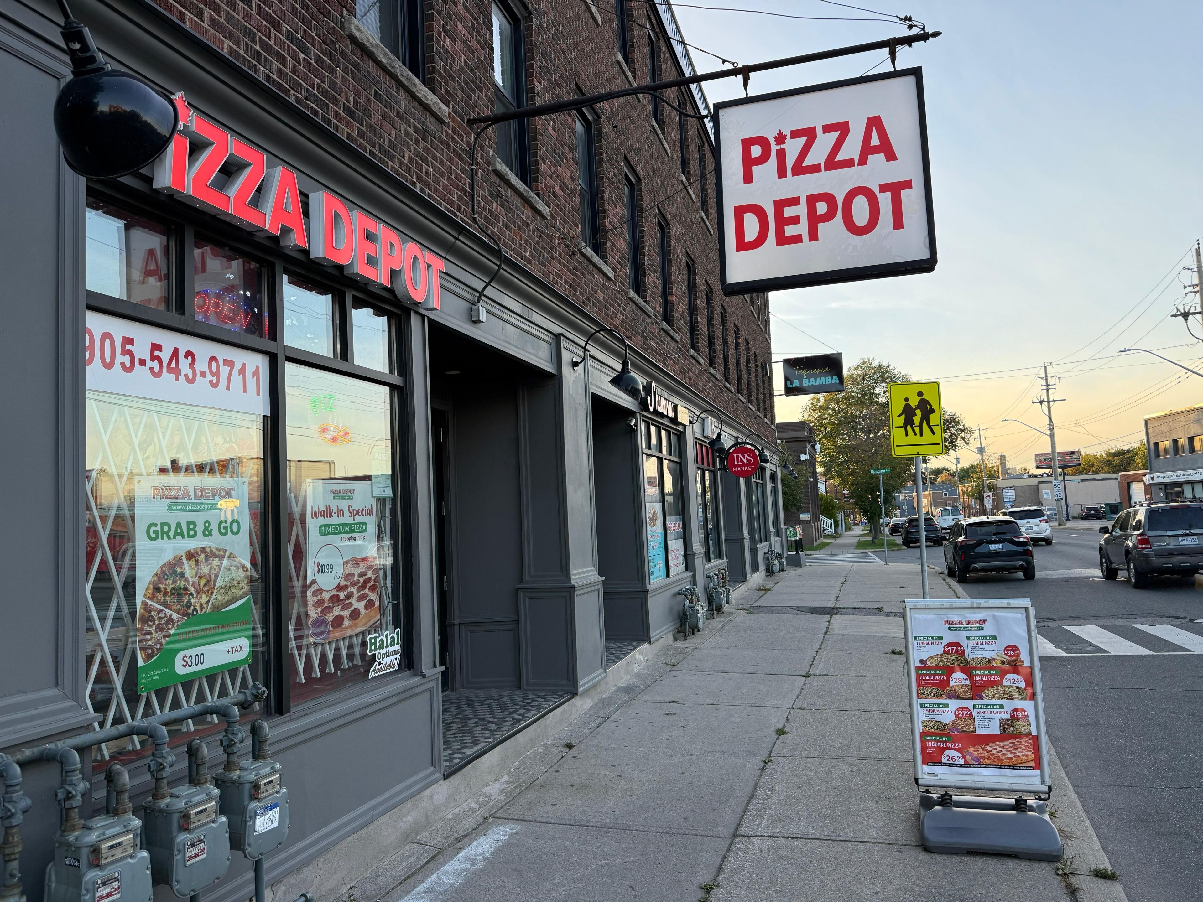 Pizza depot in hamilton, on is for sale. Located at the busy intersection of king st e/spadina ave. Very busy, high traffic area and popular neighbourhood plaza. Surrounded by fully residential neighbourhood, schools, highway and more. Business with long lease, and more.