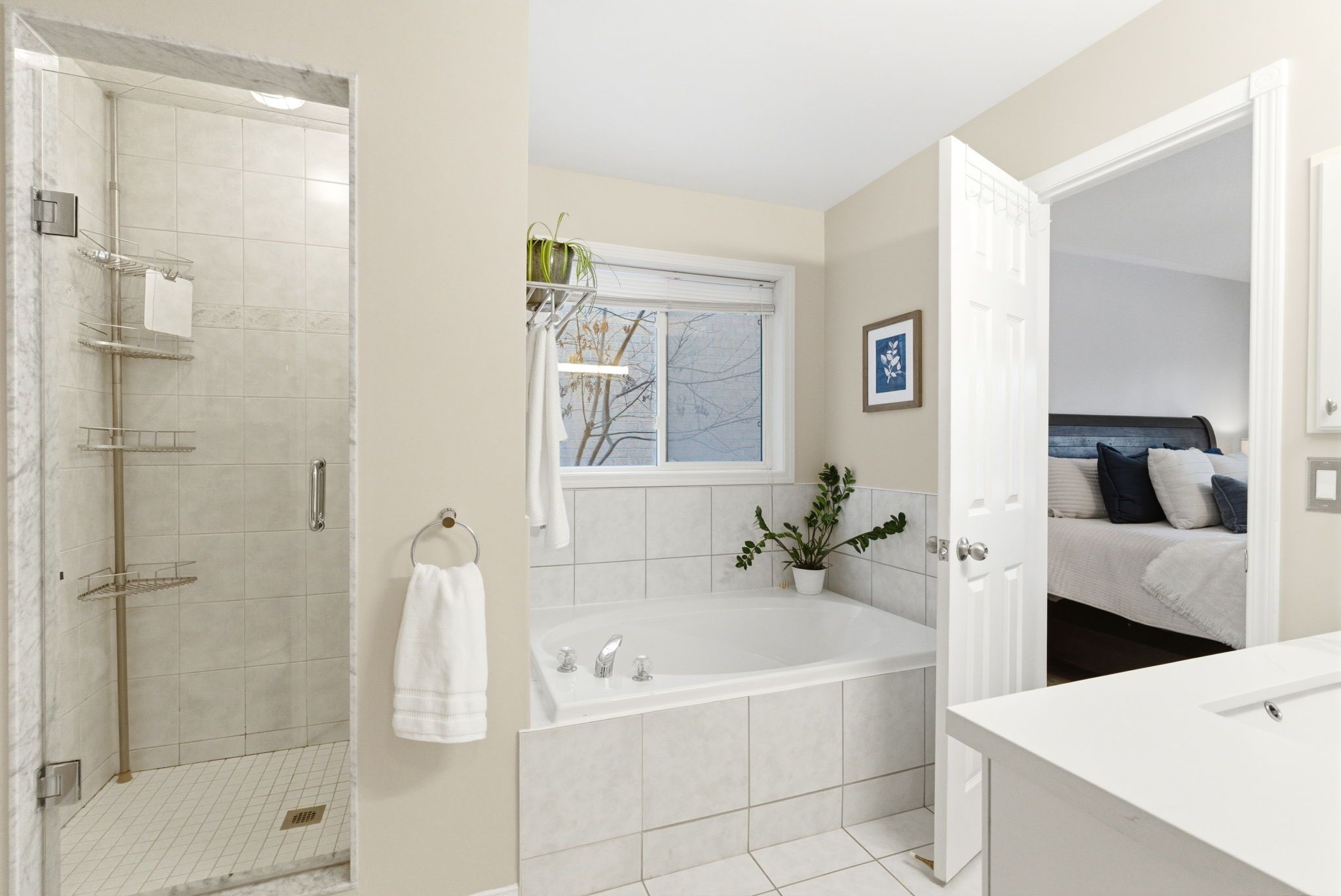 Set in a highly desirable whitby neighbourhood, this welcoming bungalow delivers a comfortable, easygoing lifestyle with thoughtful modern touches throughout. Thoughtfully updated and beautifully maintained, the home welcomes you with a bright open-concept layout and large windows that flood the living spaces with natural light. Hardwood floors, california shutters, and a seamless flow create an inviting atmosphere ideal for both everyday living and entertaining. The eat-in kitchen has been refreshed with refaced cabinetry, updated countertops and sink, stainless steel appliances, and a stylish backsplash, creating a warm and functional space for family meals and conversation. The adjoining family room is anchored by a cozy fireplace and features a walkout to the deck overlooking a fully fenced backyard, complete with a convenient natural gas hookup-perfect for outdoor entertaining. The main level includes two generously sized bedrooms, including a spacious primary bedroom with california shutters and semi-ensuite access to a beautifully updated bathroom with a new vanity, countertop, and sink. Fresh interior paint and updated flooring on both the main level and basement enhance the home's polished feel. The finished basement expands your living space with a versatile recreation area featuring pot lights, a full 3-piece bathroom, and a comfortable guest suite, ideal for extended family or visitors. A separate laundry room with ceramic flooring and an added laundry sink offers excellent functionality. Additional highlights include fresh exterior paint, an attached garage, and a prime location close to schools, shopping, parks, and everyday amenities. This home truly offers a lifestyle of comfort, retreat, and easy living in a highly sought-after whitby community.
