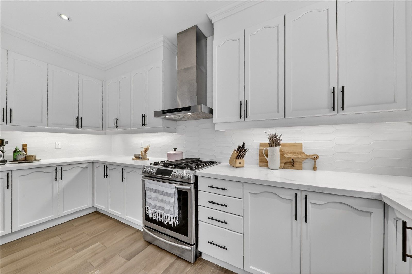 • Modern kitchen with upgraded cabinetry and spacious center island.