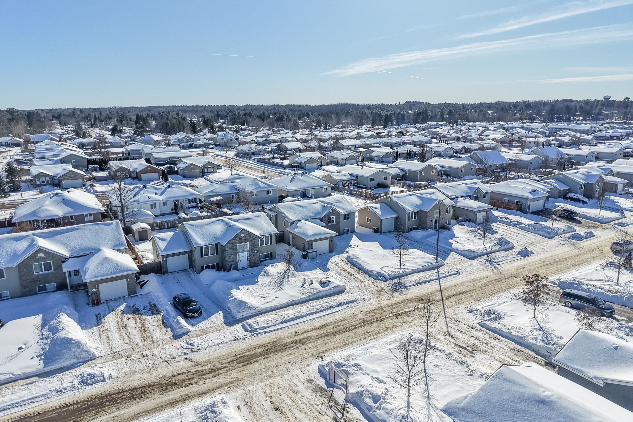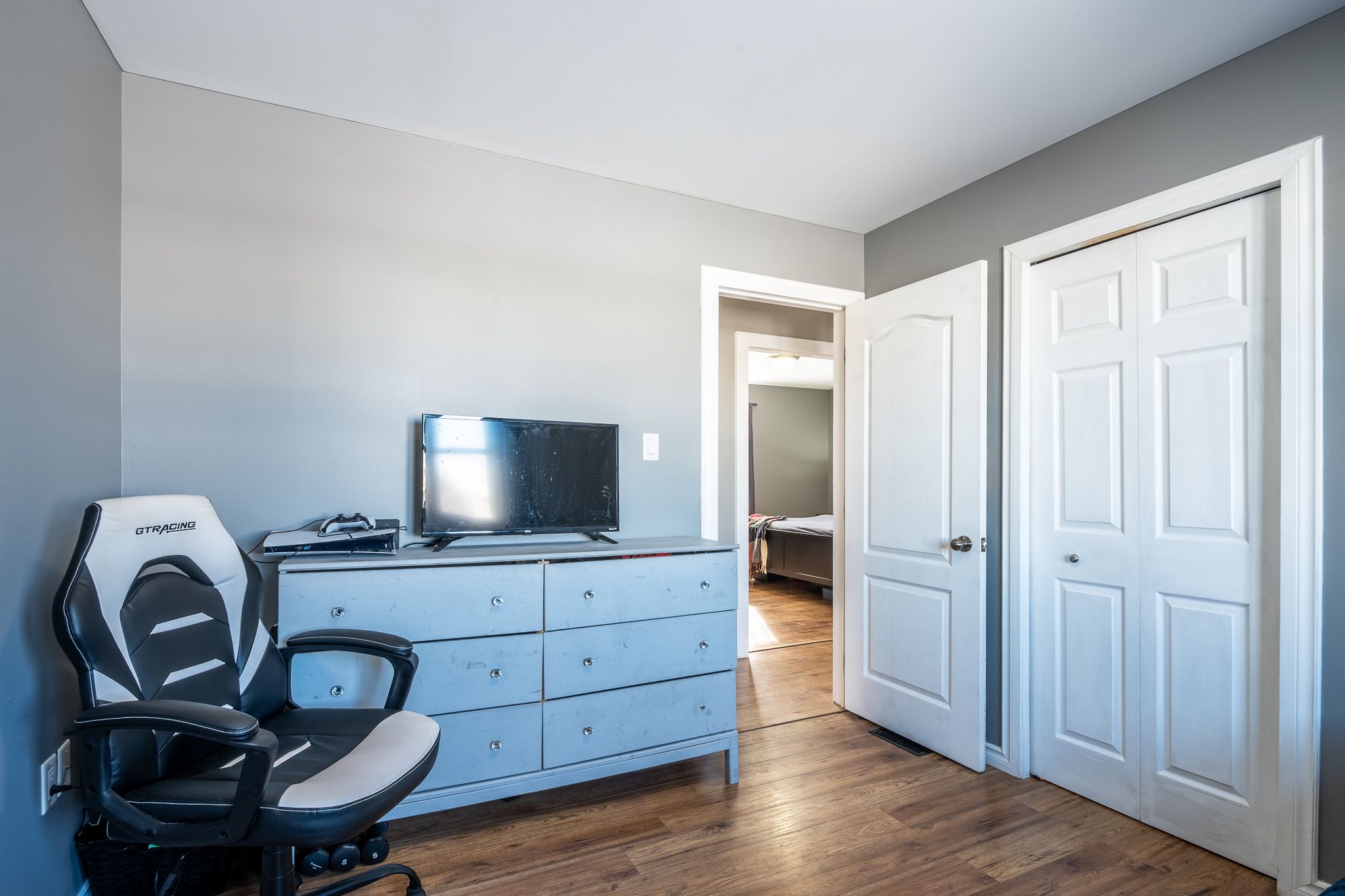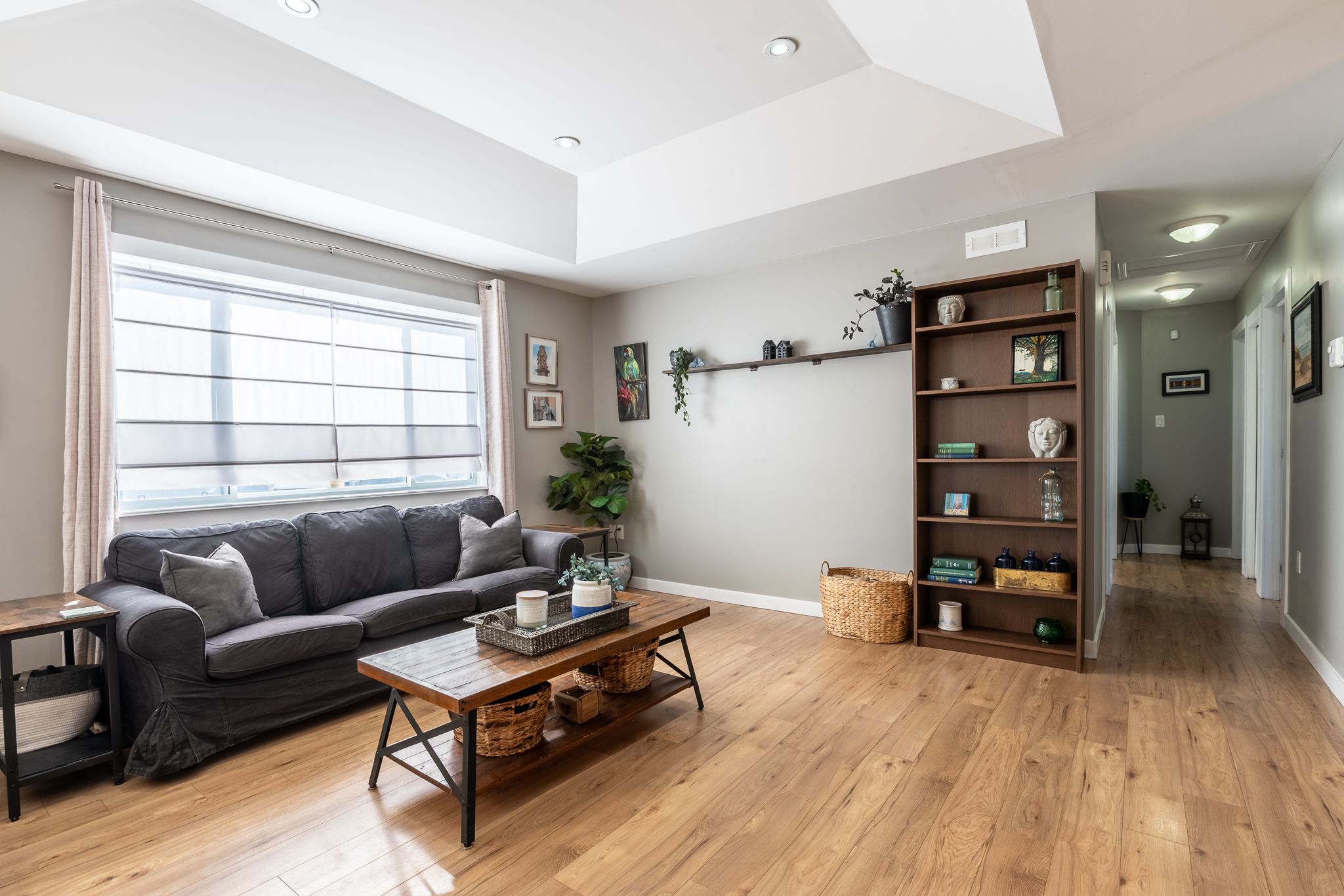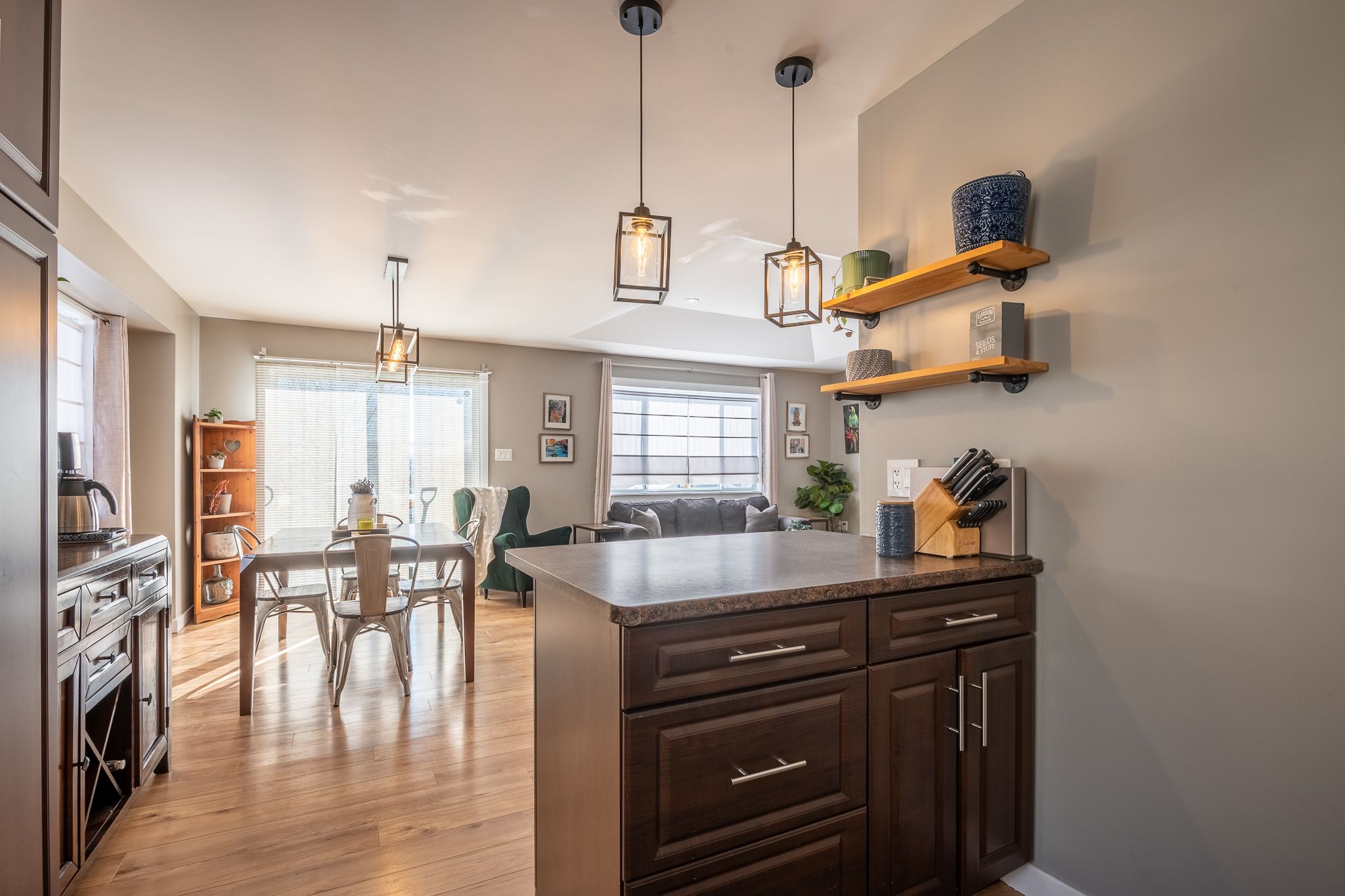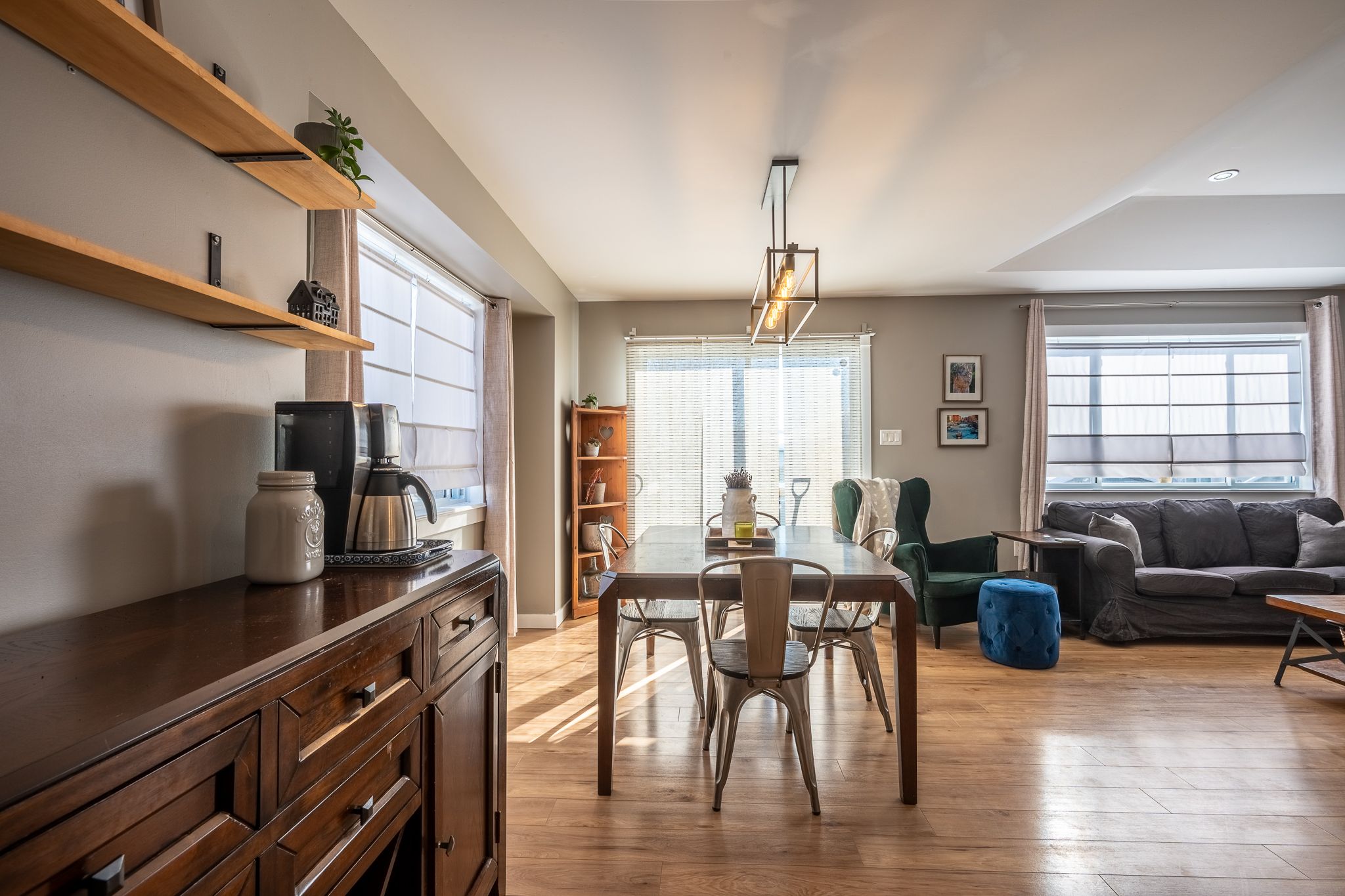 Welcome to this bright and welcoming home, ideally situated close to schools, parks, shopping, and more. You will appreciate the lovely curb appeal with gardens, and once inside, you will find a spacious and functional foyer with access to the attached garage. The upper level offers an open-concept layout that is perfect for both everyday living and entertaining, and is complete with elegant light fixtures. The living room flows seamlessly into the dining and kitchen areas, where you will find additional prep space and seating at the peninsula, ample cabinetry, and a sliding door leading outside to the 12'x14' composite deck with access to the fenced yard. This is the ideal spot to host summer barbecues or have your morning coffee with the sunrise. The main level includes a primary bedroom, which you enter through french doors, two additional bedrooms and a full bathroom with a convenient linen closet. The lower level features two more gathering spaces offering plenty of flexibility for a home office space, play area or gym. A fourth bedroom and a second full bathroom adorn this level. If you are looking for additional space for your outdoor equipment or a work kit, there is a bonus storage room approximately 6'x10' with shelves. Once outside, you will enjoy the fenced backyard, complete with a shed for quick and easy storage of your garden tools. Perfectly located in the desirable limestone trail subdivision, this home is a fantastic opportunity for anyone looking for a great balance of space, comfort, and convenience.