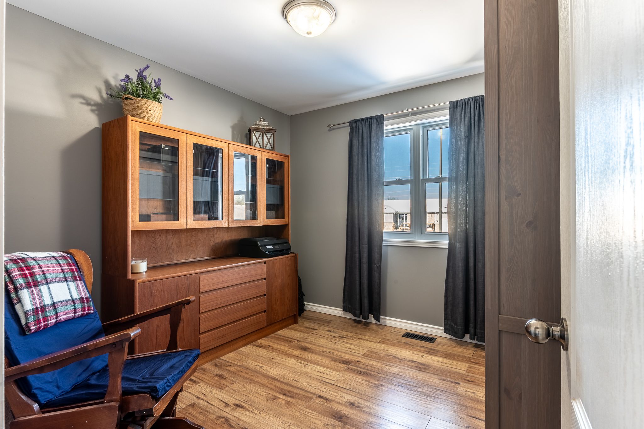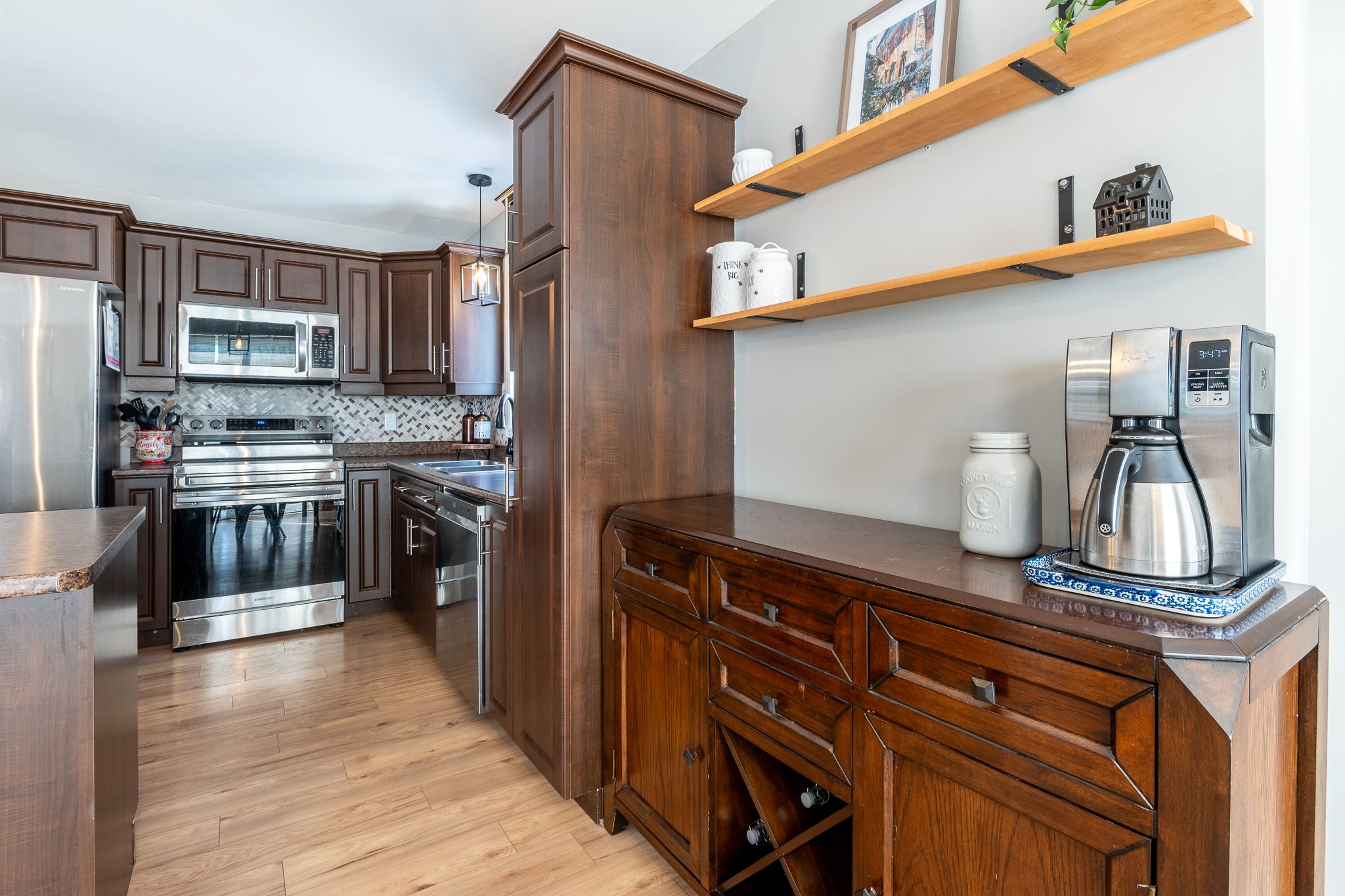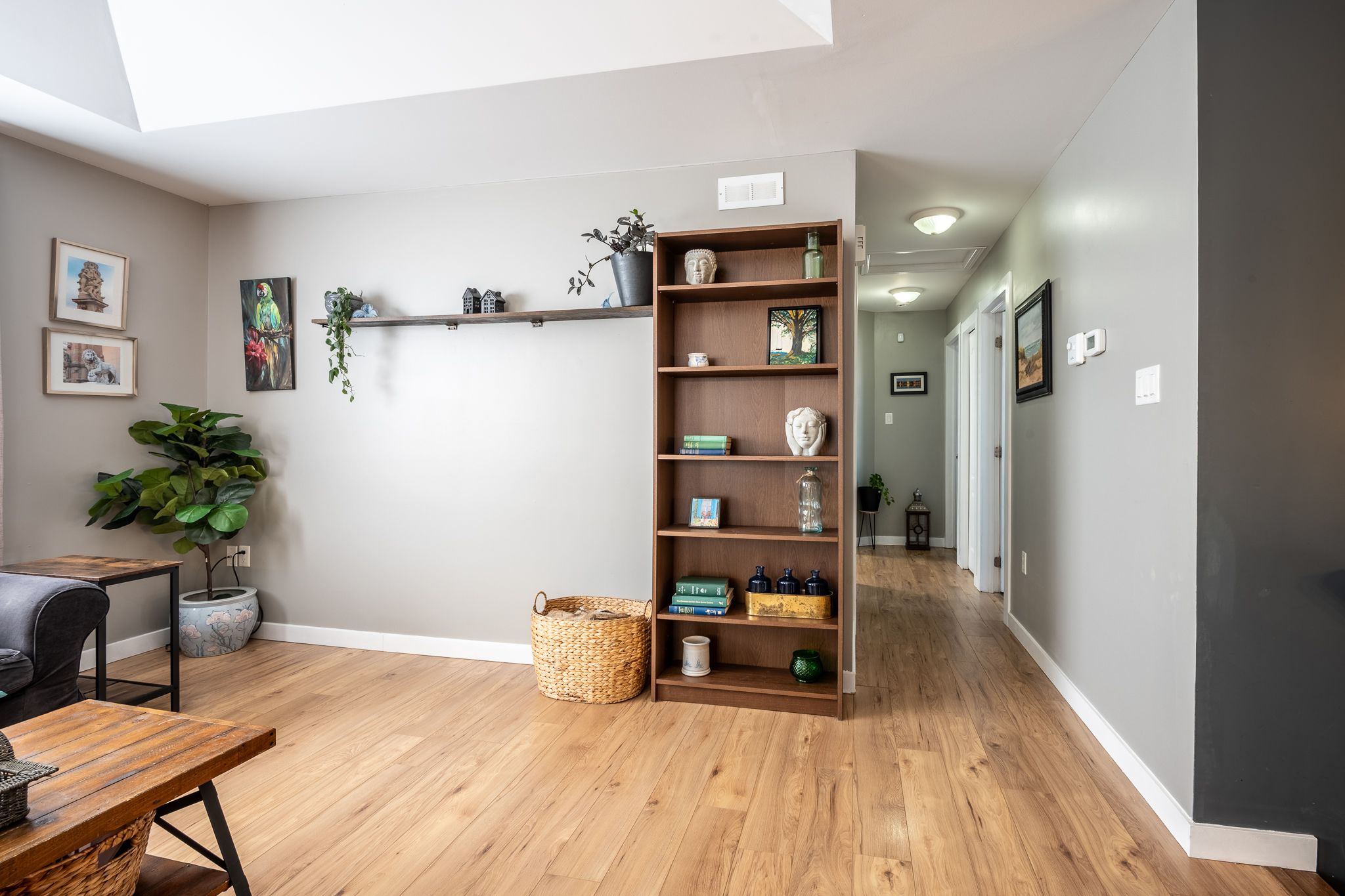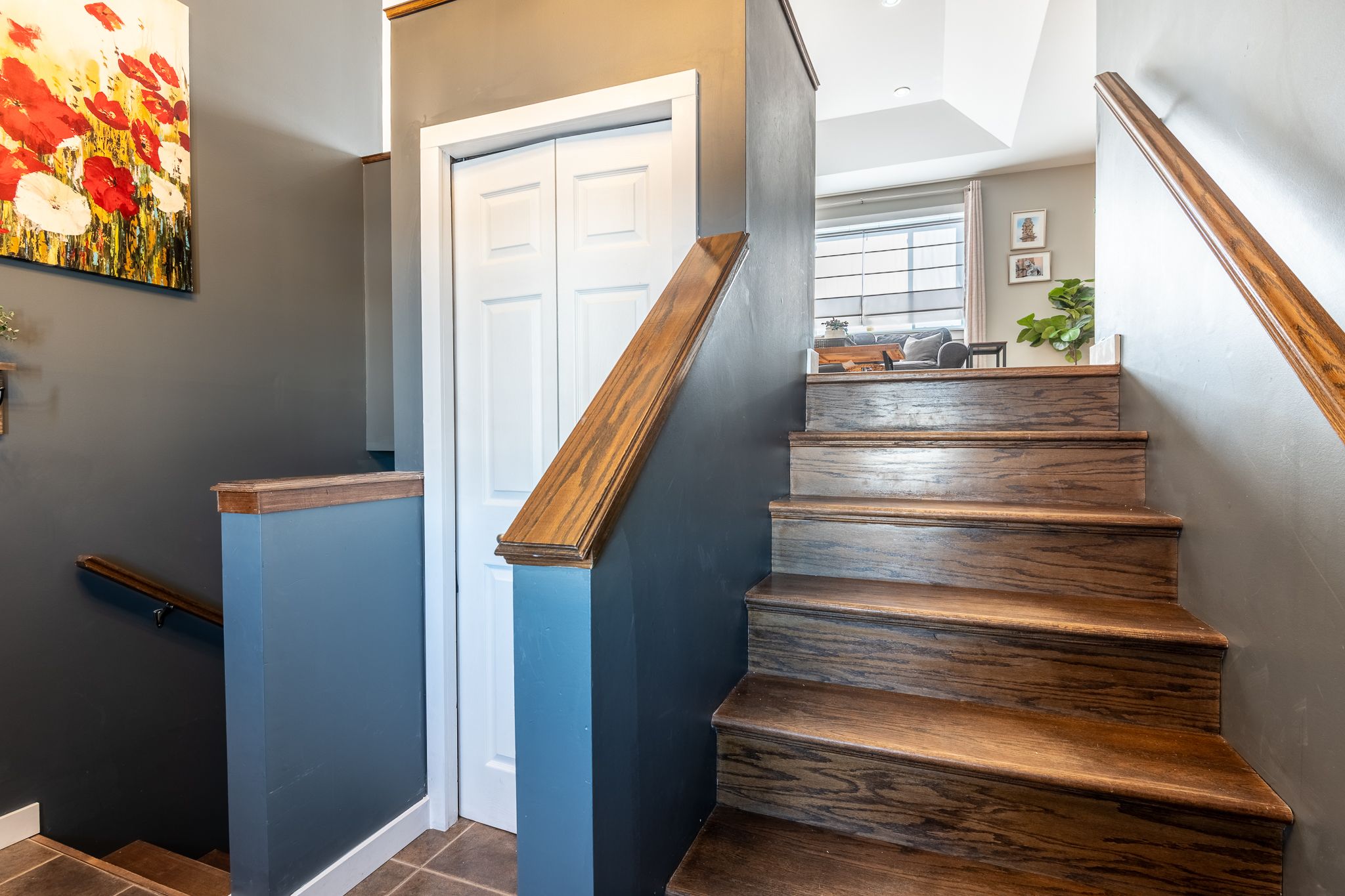 Welcome to this bright and welcoming home, ideally situated close to schools, parks, shopping, and more. You will appreciate the lovely curb appeal with gardens, and once inside, you will find a spacious and functional foyer with access to the attached garage. The upper level offers an open-concept layout that is perfect for both everyday living and entertaining, and is complete with elegant light fixtures. The living room flows seamlessly into the dining and kitchen areas, where you will find additional prep space and seating at the peninsula, ample cabinetry, and a sliding door leading outside to the 12'x14' composite deck with access to the fenced yard. This is the ideal spot to host summer barbecues or have your morning coffee with the sunrise. The main level includes a primary bedroom, which you enter through french doors, two additional bedrooms and a full bathroom with a convenient linen closet. The lower level features two more gathering spaces offering plenty of flexibility for a home office space, play area or gym. A fourth bedroom and a second full bathroom adorn this level. If you are looking for additional space for your outdoor equipment or a work kit, there is a bonus storage room approximately 6'x10' with shelves. Once outside, you will enjoy the fenced backyard, complete with a shed for quick and easy storage of your garden tools. Perfectly located in the desirable limestone trail subdivision, this home is a fantastic opportunity for anyone looking for a great balance of space, comfort, and convenience.