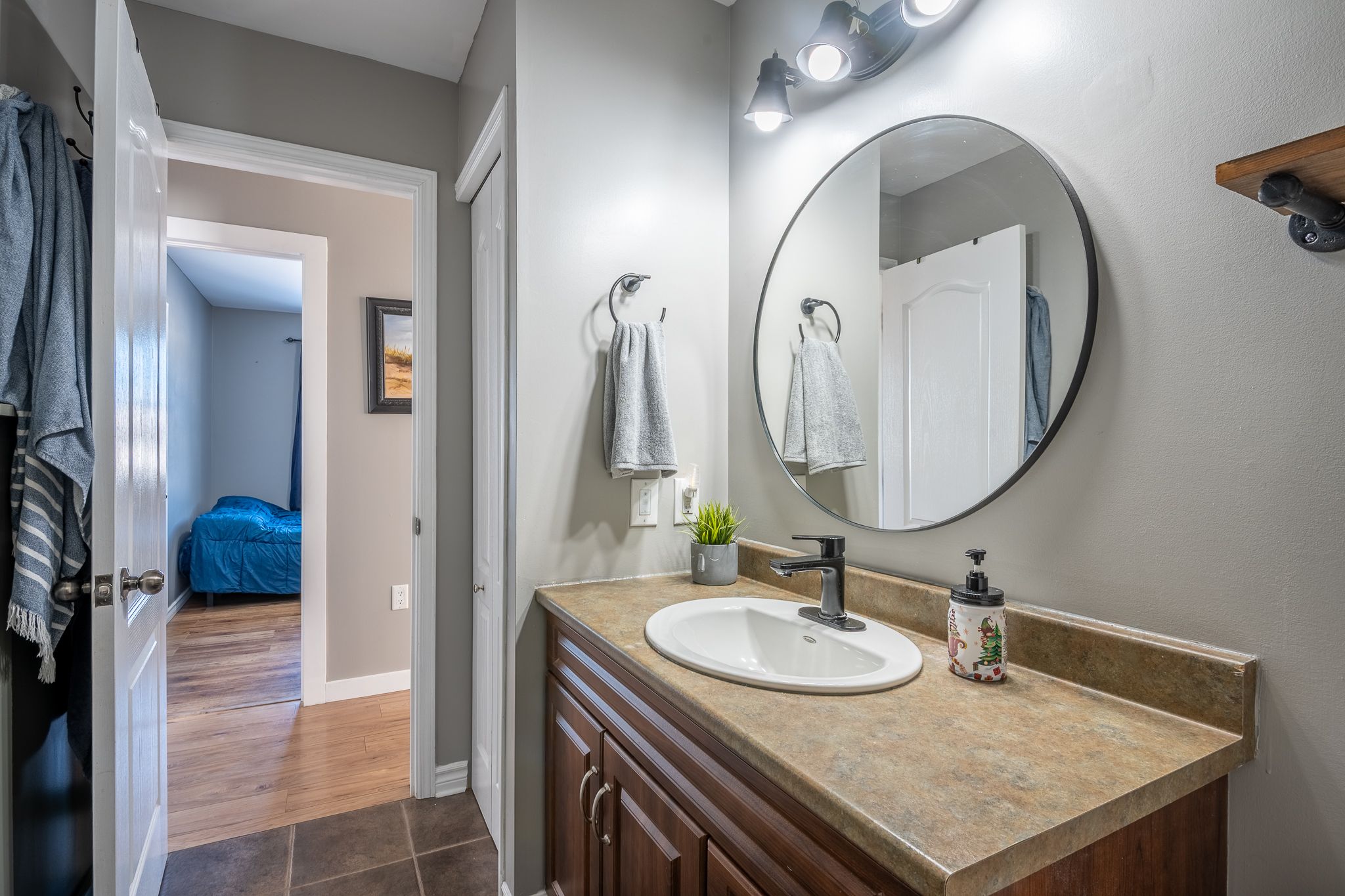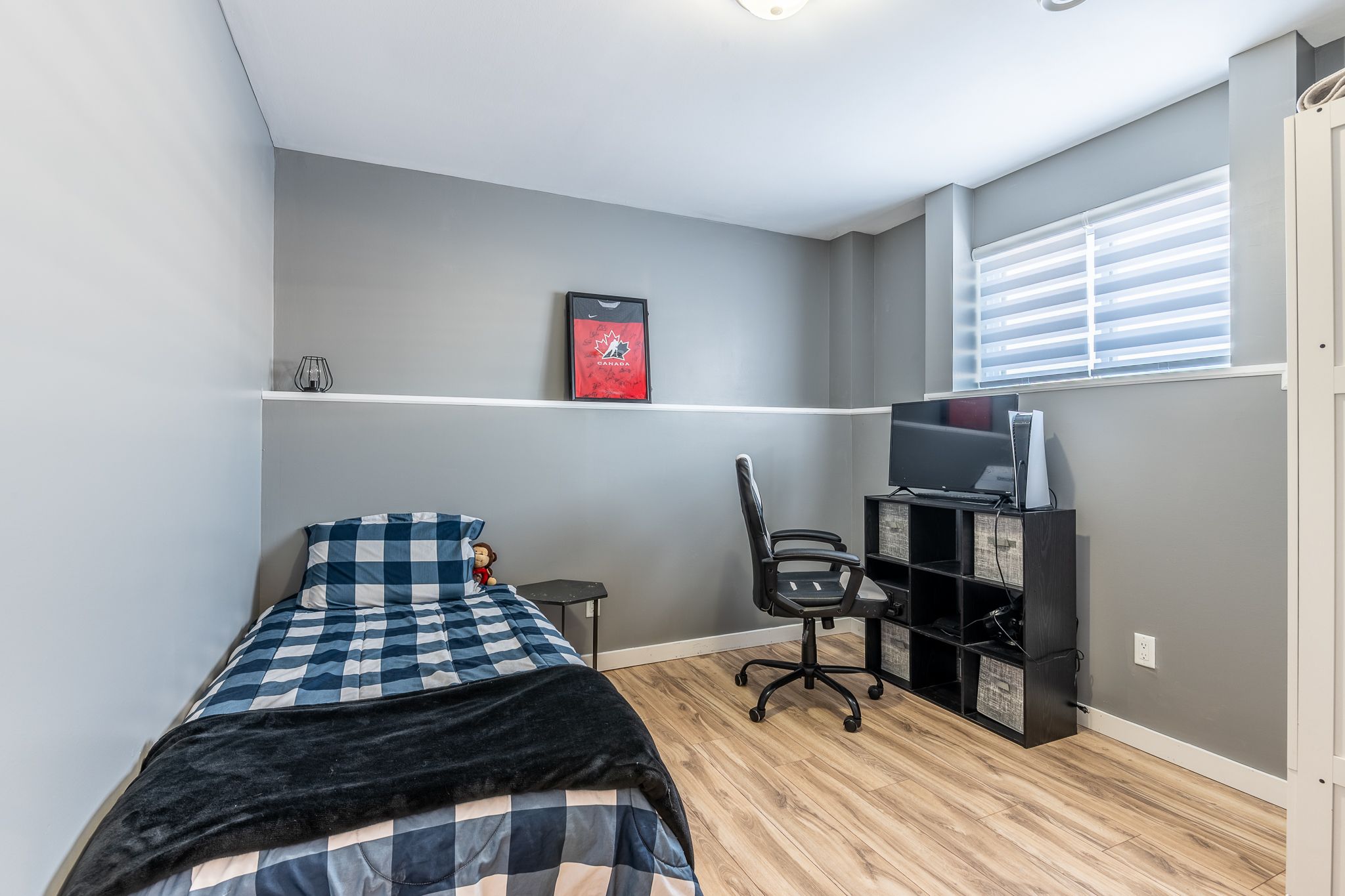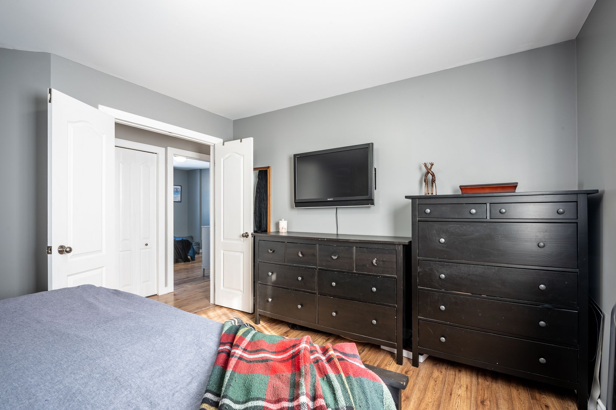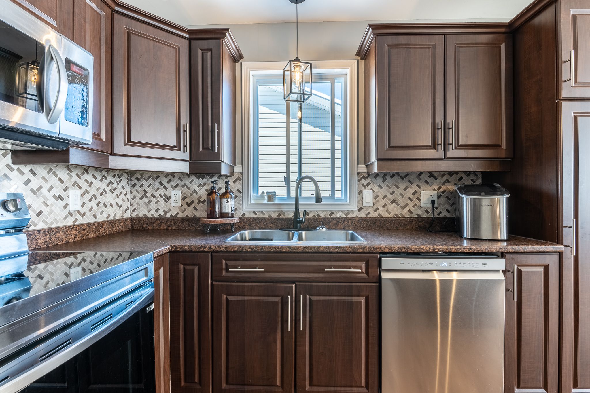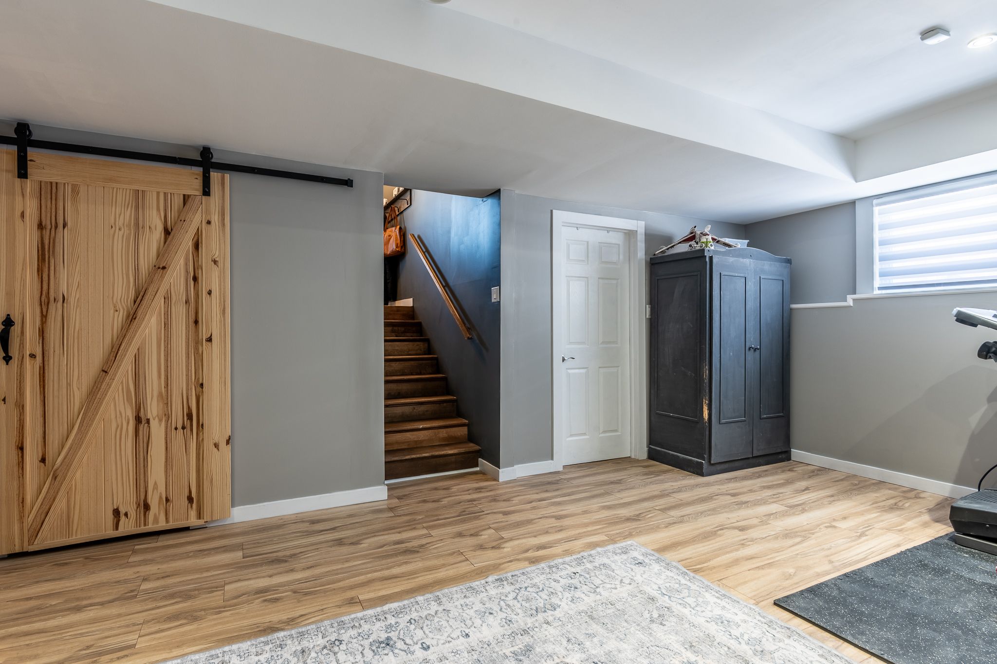 Welcome to this bright and welcoming home, ideally situated close to schools, parks, shopping, and more. You will appreciate the lovely curb appeal with gardens, and once inside, you will find a spacious and functional foyer with access to the attached garage. The upper level offers an open-concept layout that is perfect for both everyday living and entertaining, and is complete with elegant light fixtures. The living room flows seamlessly into the dining and kitchen areas, where you will find additional prep space and seating at the peninsula, ample cabinetry, and a sliding door leading outside to the 12'x14' composite deck with access to the fenced yard. This is the ideal spot to host summer barbecues or have your morning coffee with the sunrise. The main level includes a primary bedroom, which you enter through french doors, two additional bedrooms and a full bathroom with a convenient linen closet. The lower level features two more gathering spaces offering plenty of flexibility for a home office space, play area or gym. A fourth bedroom and a second full bathroom adorn this level. If you are looking for additional space for your outdoor equipment or a work kit, there is a bonus storage room approximately 6'x10' with shelves. Once outside, you will enjoy the fenced backyard, complete with a shed for quick and easy storage of your garden tools. Perfectly located in the desirable limestone trail subdivision, this home is a fantastic opportunity for anyone looking for a great balance of space, comfort, and convenience.